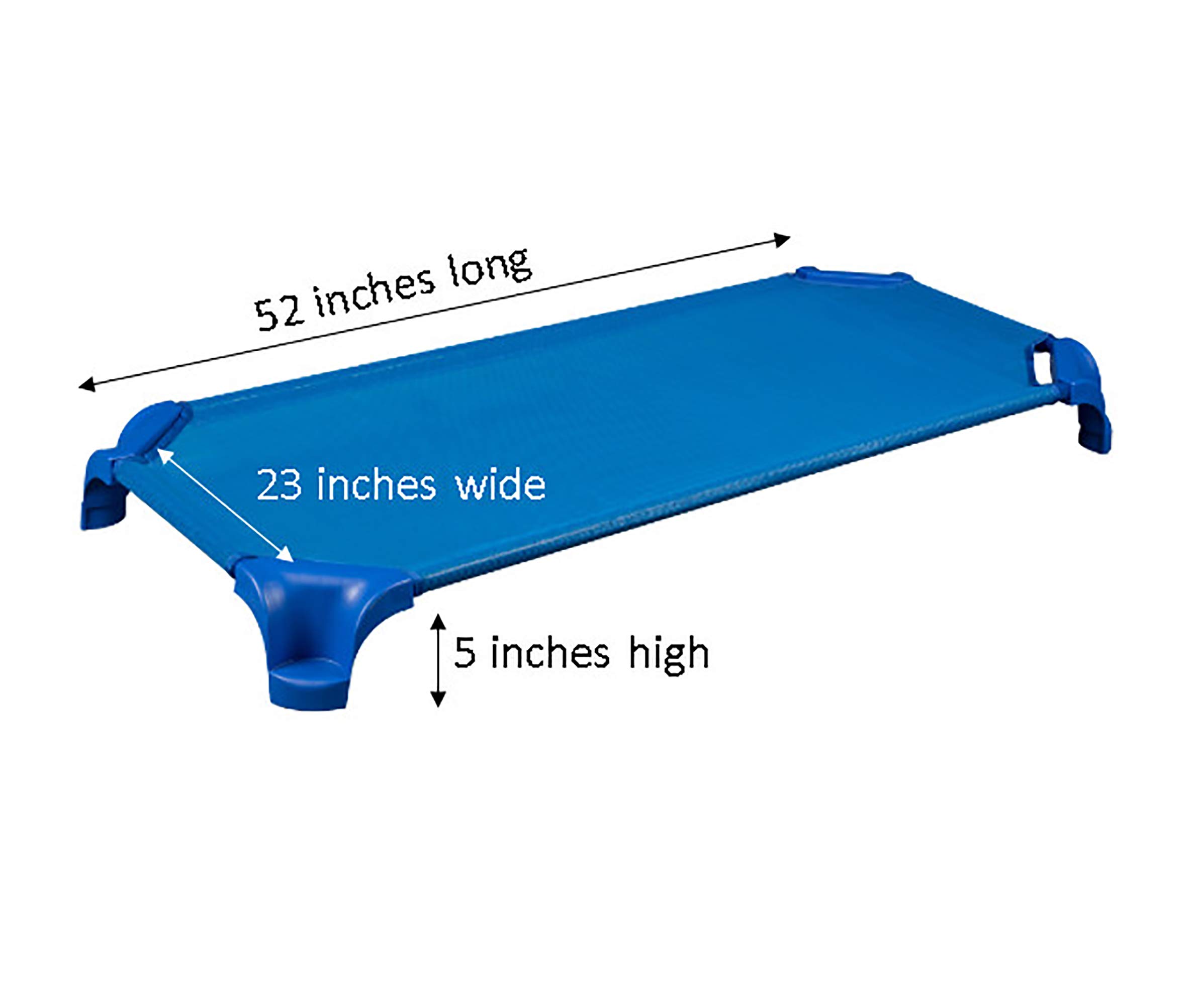 DURABLE: Heavy-duty cots are constructed of 18-gauge steel frame and vinyl-coated non-flammable mesh fabric / Weight Capacity 150 lbs / DIMENSIONS: 52"L x 23"W x 5" H