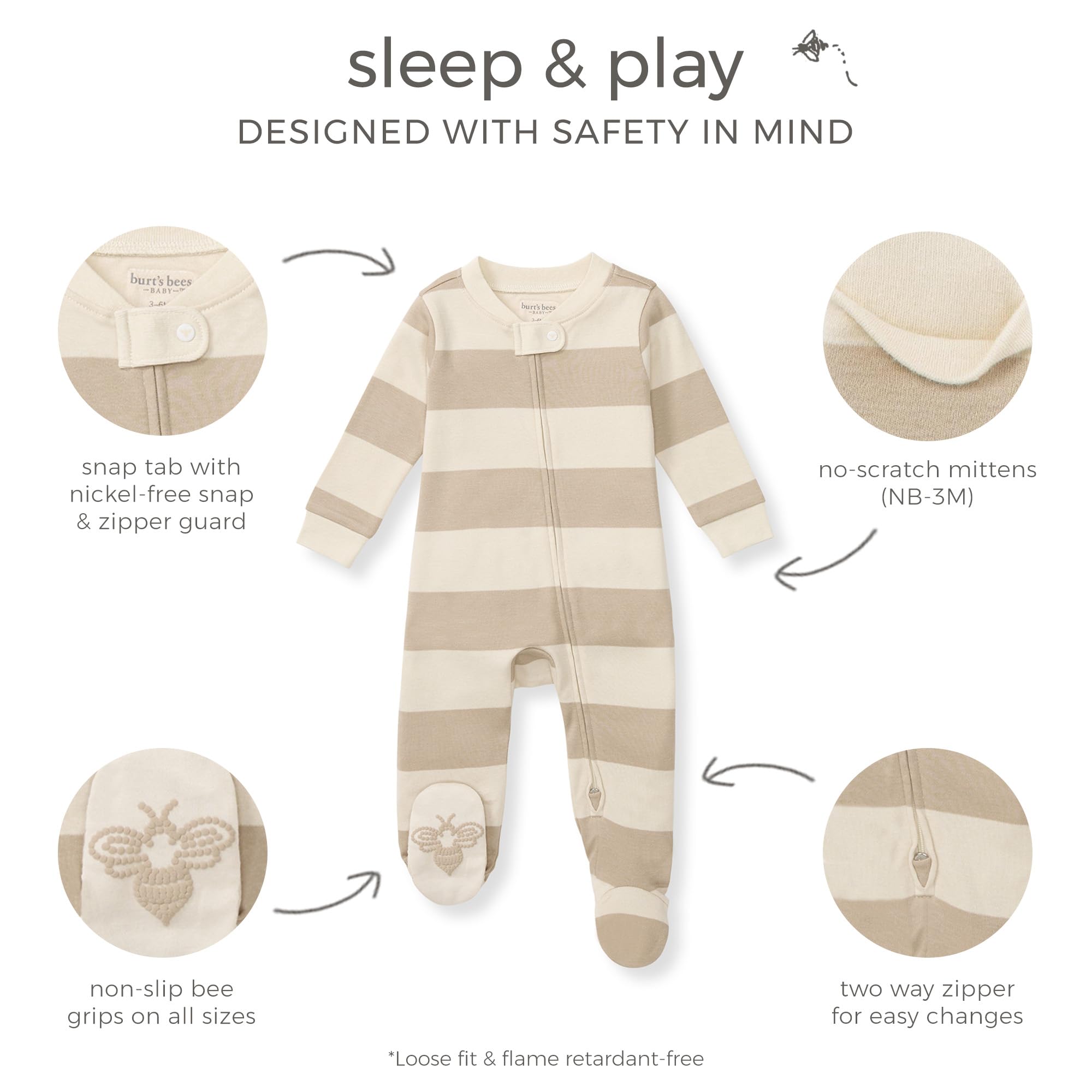 Non-Slip Bee Grips: Each pair of these Baby Girls Sleep PJs features non-slip "bee grip" footies, providing stability for early movers. Seasonal footless options are also available for warmer months.