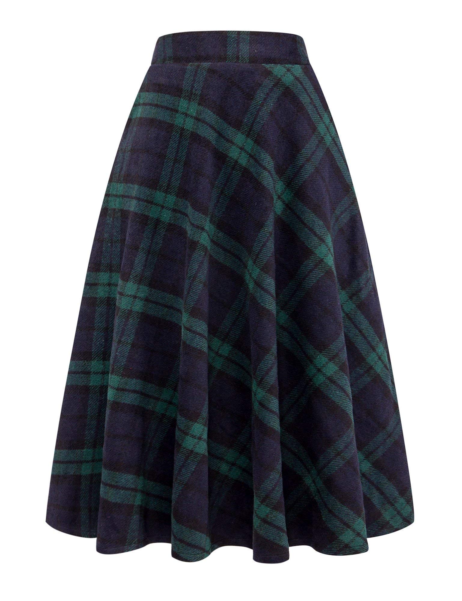 IDEALSANXUN women’s fall/winter wool high waist A-line plaid tartan maxi long skirt.