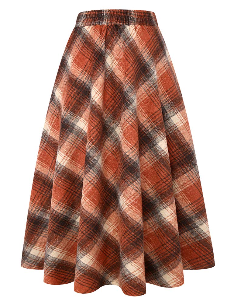 IDEALSANXUN womenβs fall/winter wool high waist A-line plaid tartan maxi long skirt.