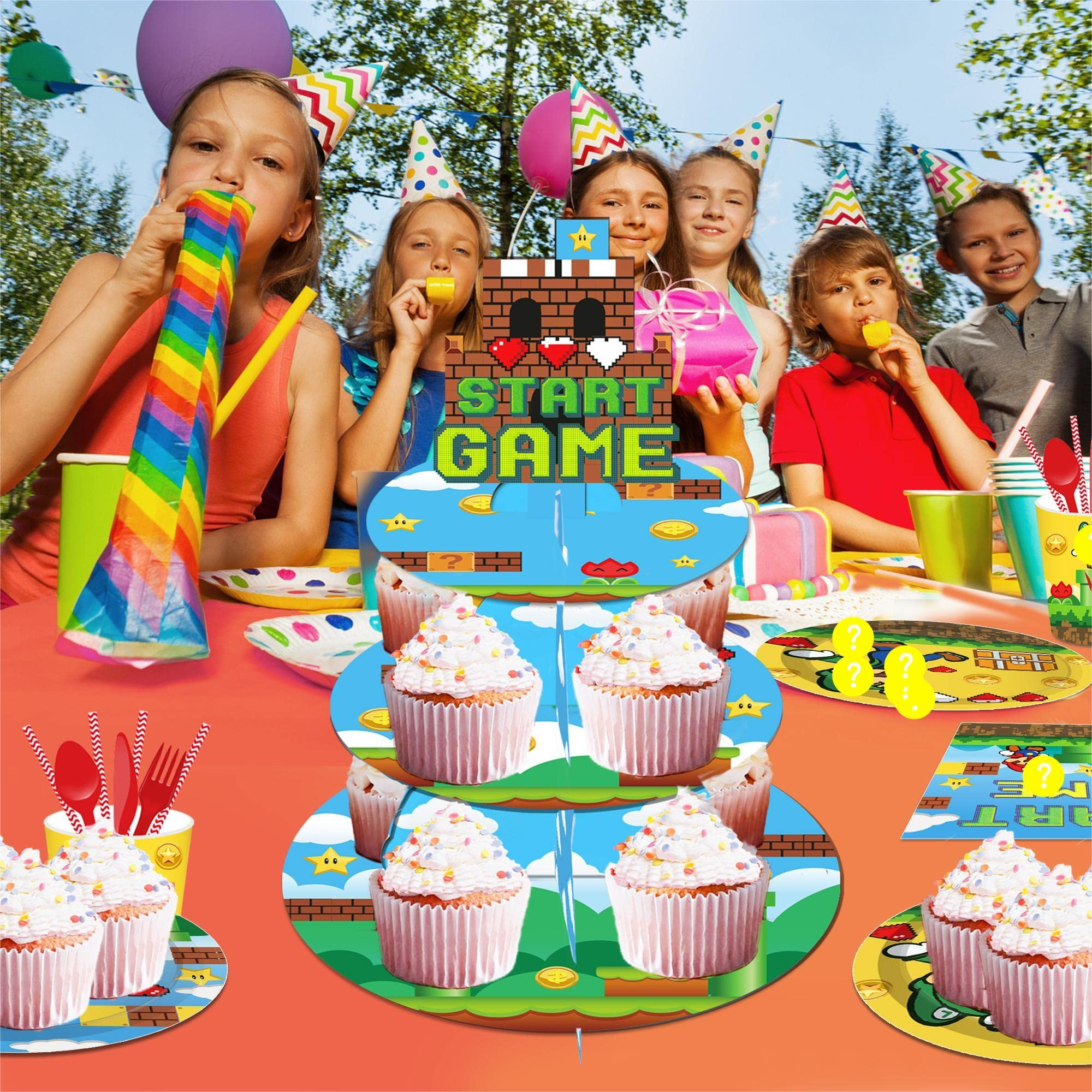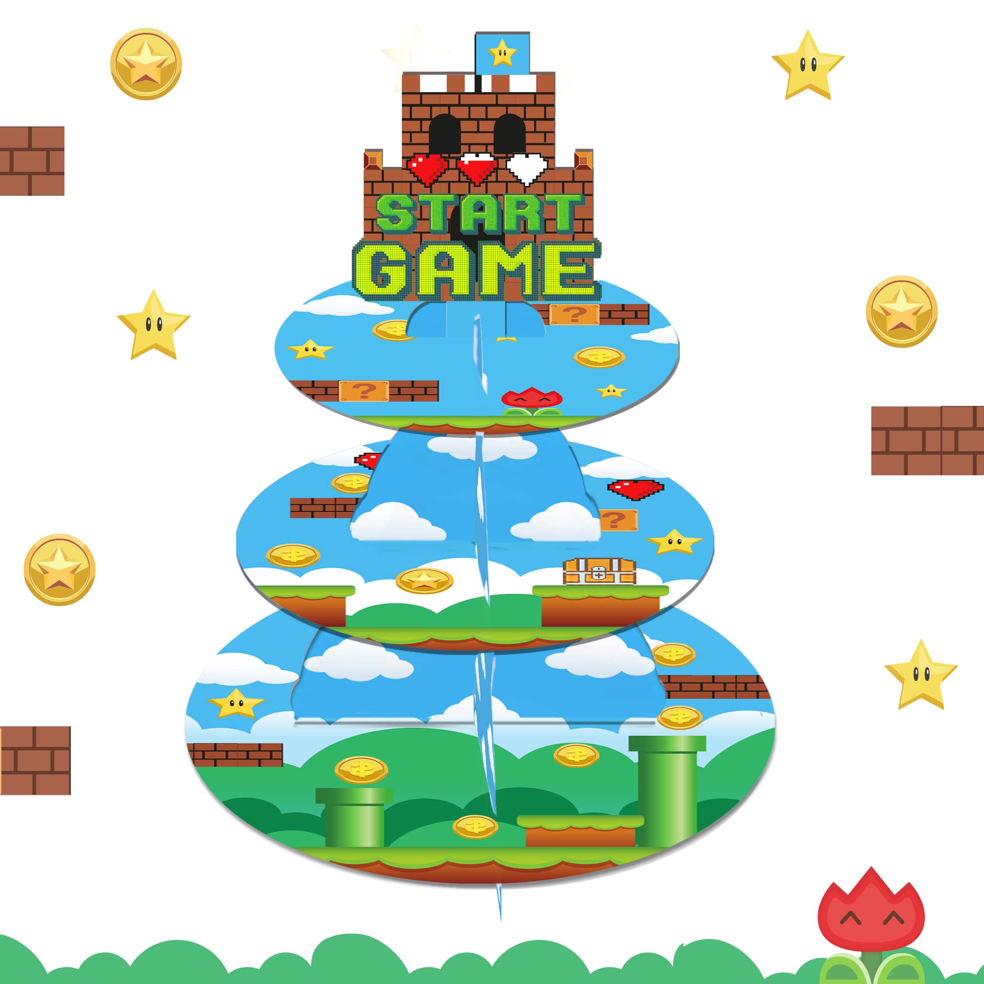 2.Unique design: Perfect for your birthday parties and Super Brothers themed party decorations, this cake stand designed by Video Games themed elements is sure to impress your guests.