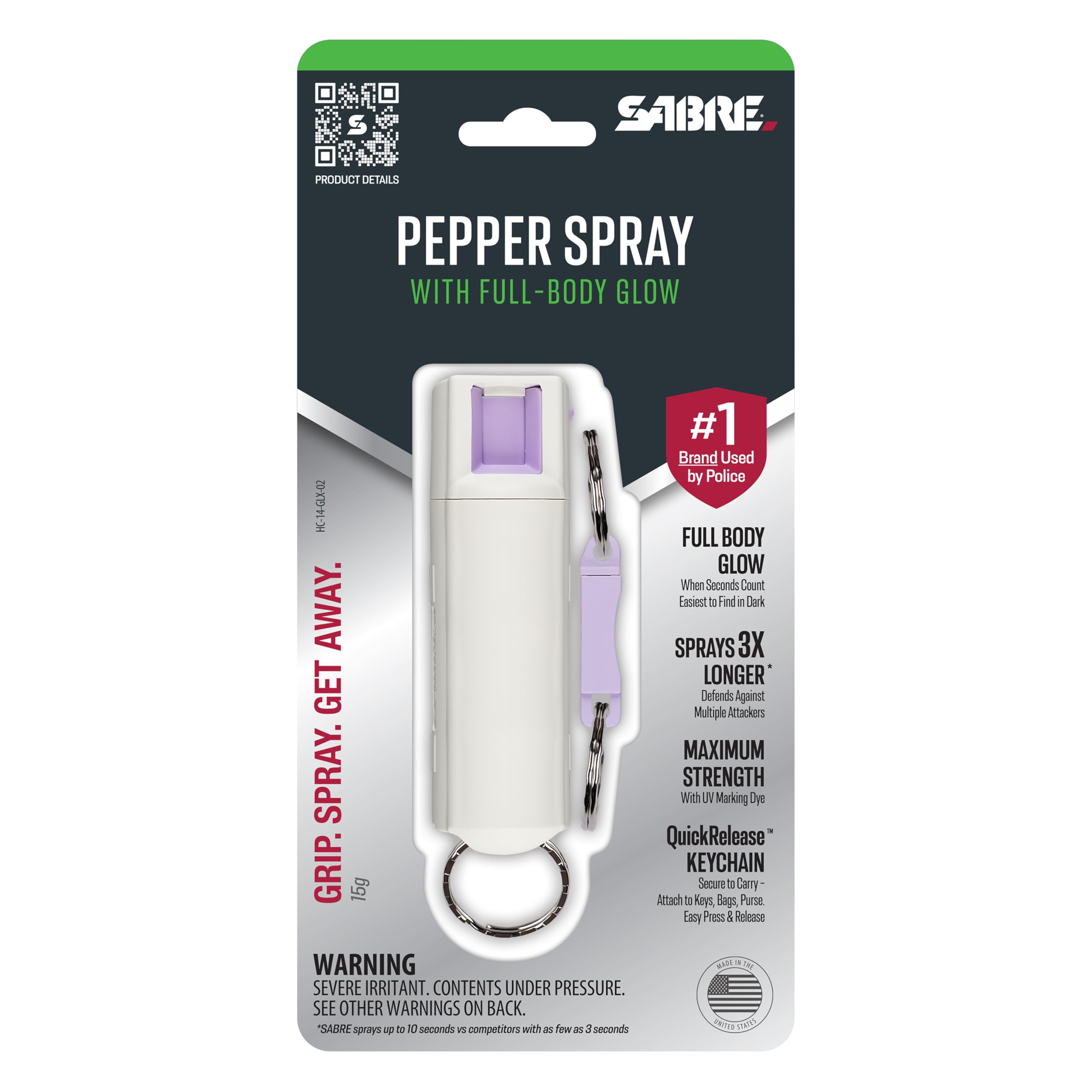 Spend more time enjoying the things you love and less time worrying, with the confidence that comes from being prepared. The SABRE Pepper Spray with Finger Grip and Quick Release Keychain delivers maximum strength self-defense protection in a compact everyday-carry design, backed by the same proven reliability trusted by professionals. SABRE is the #1 pepper spray brand trusted by police and consumers worldwide, including New York PD, Chicago PD, and the U.S. Marshals. Every SABRE pepper spray is proudly made in the USA and HPLC tested to help ensure consistent heat and dependable stopping power because not all sprays are created equal. You get up to 10 seconds of total spray time, up to 3X longer spray time than other brands, giving you more time and confidence to respond to one or multiple threats. Best accuracy reaches up to 12 feet to support effective facial saturation, with a maximum range up to 14 feet, and the focused stream helps reduce wind blowback for dependable outdoor performance. UV marking dye supports authorities after use, and the ergonomic finger grip and Quick Release Keychain provide fast, confident access when seconds count. Backed by 50 years of SABRE innovation and trust, this pepper spray delivers strong distance, dependable control, and protection built for real life.