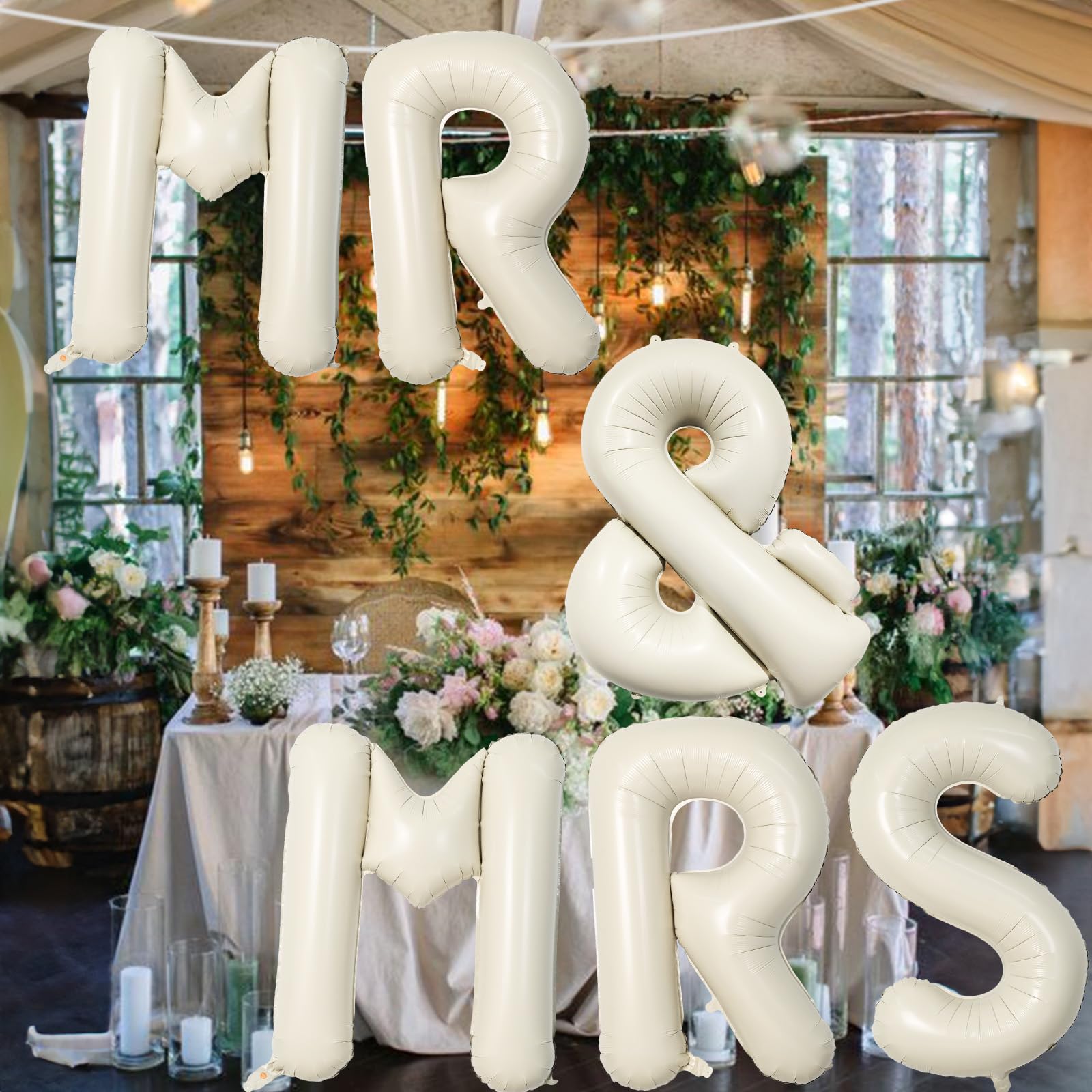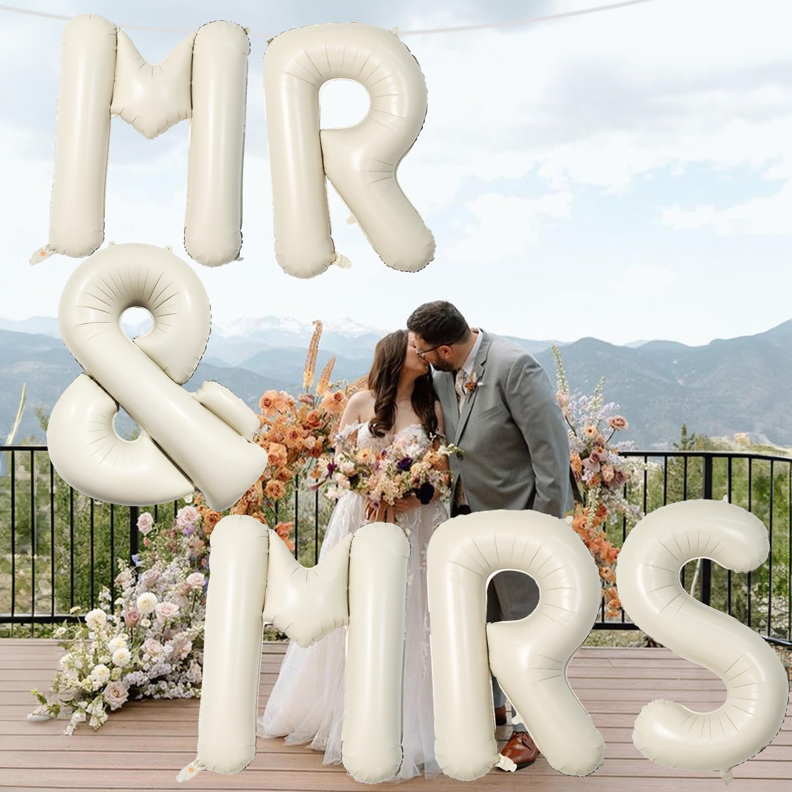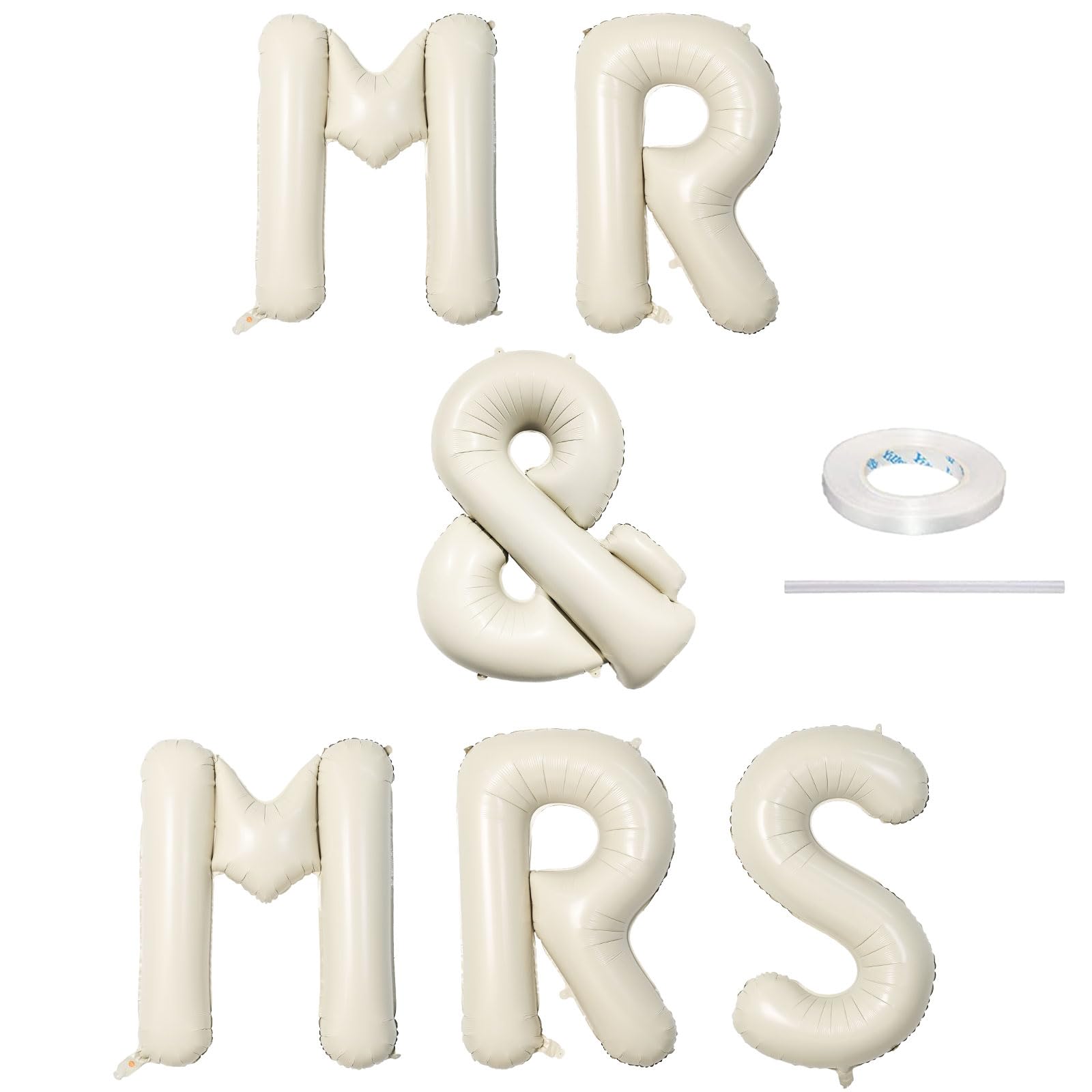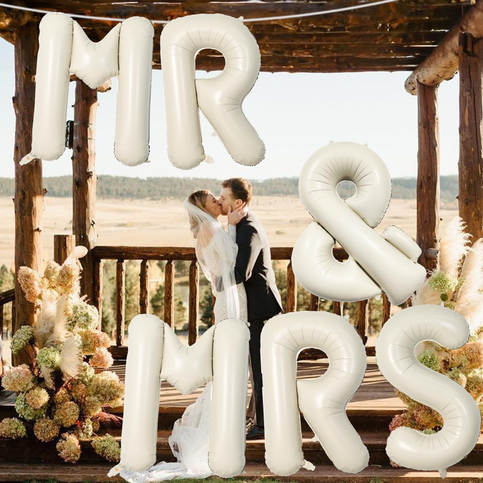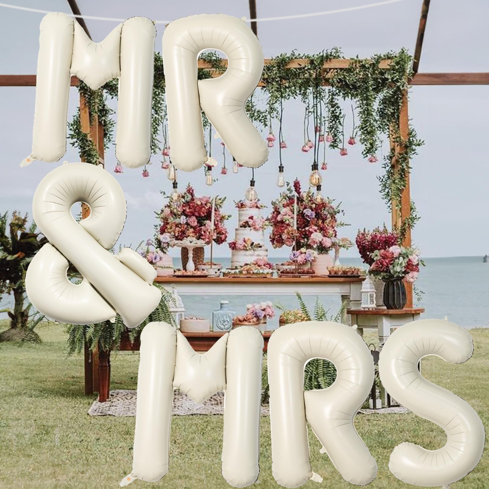 💕 MR & MRS Balloons for Wedding Party Decoration 💕 You will get 6 pieces 40 inch large beige M+ R + & + M + R + S foil letter balloons with 1pc balloon ribbon, perfect for wedding party, bridal shower, bridal shower, marriage and engagement party decorations.