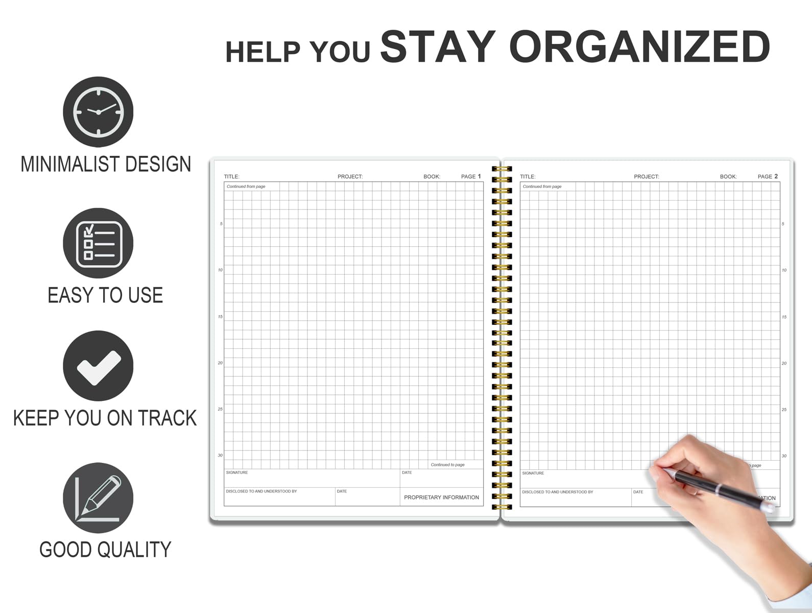 LARGE CAPACITY - Contains 120 pages, providing ample space for all your important notes. Whether you are an engineer, student, researcher, or inventor, our high-quality engineering notebook is the perfect choice for recording and organizing critical information.