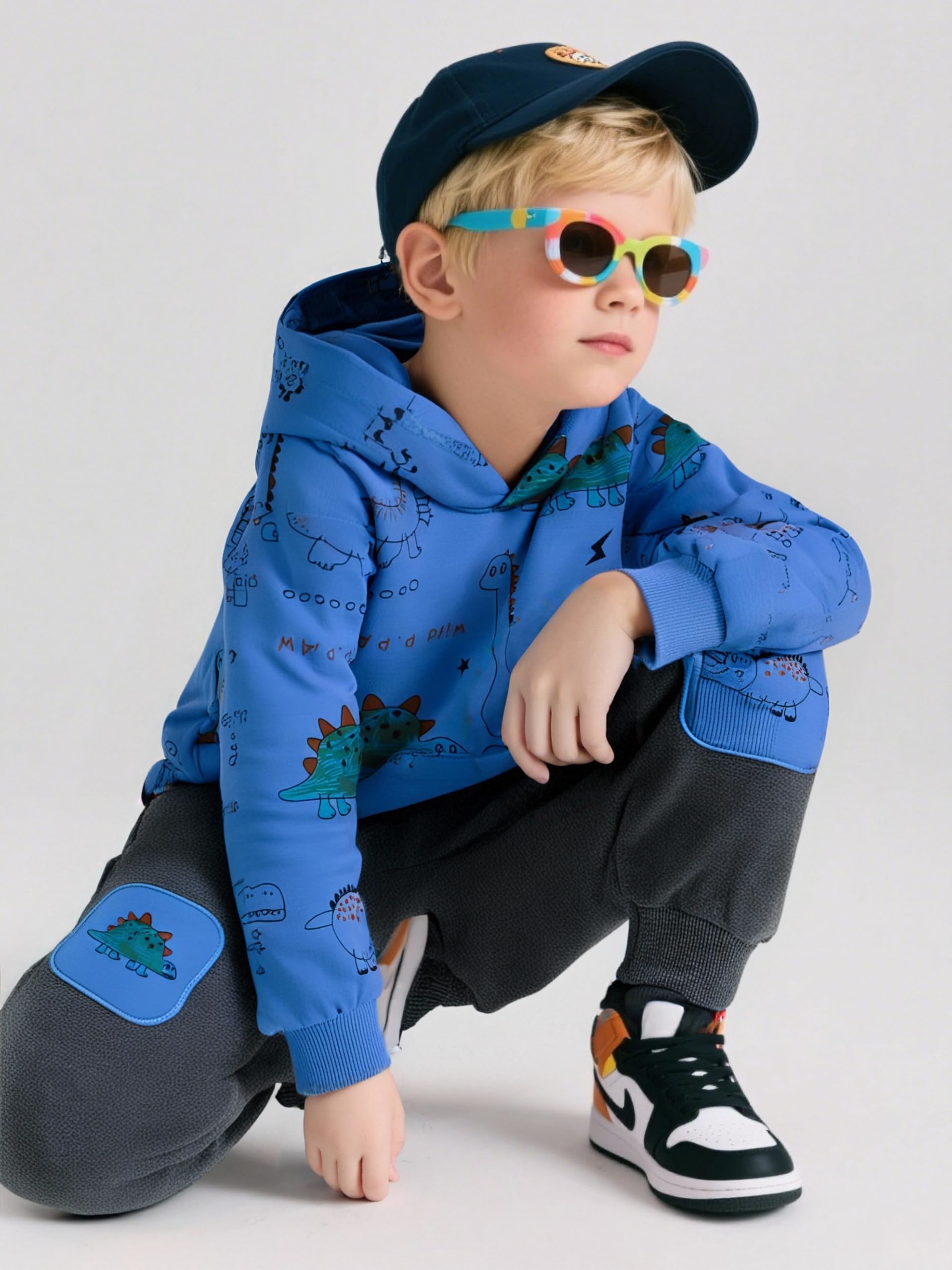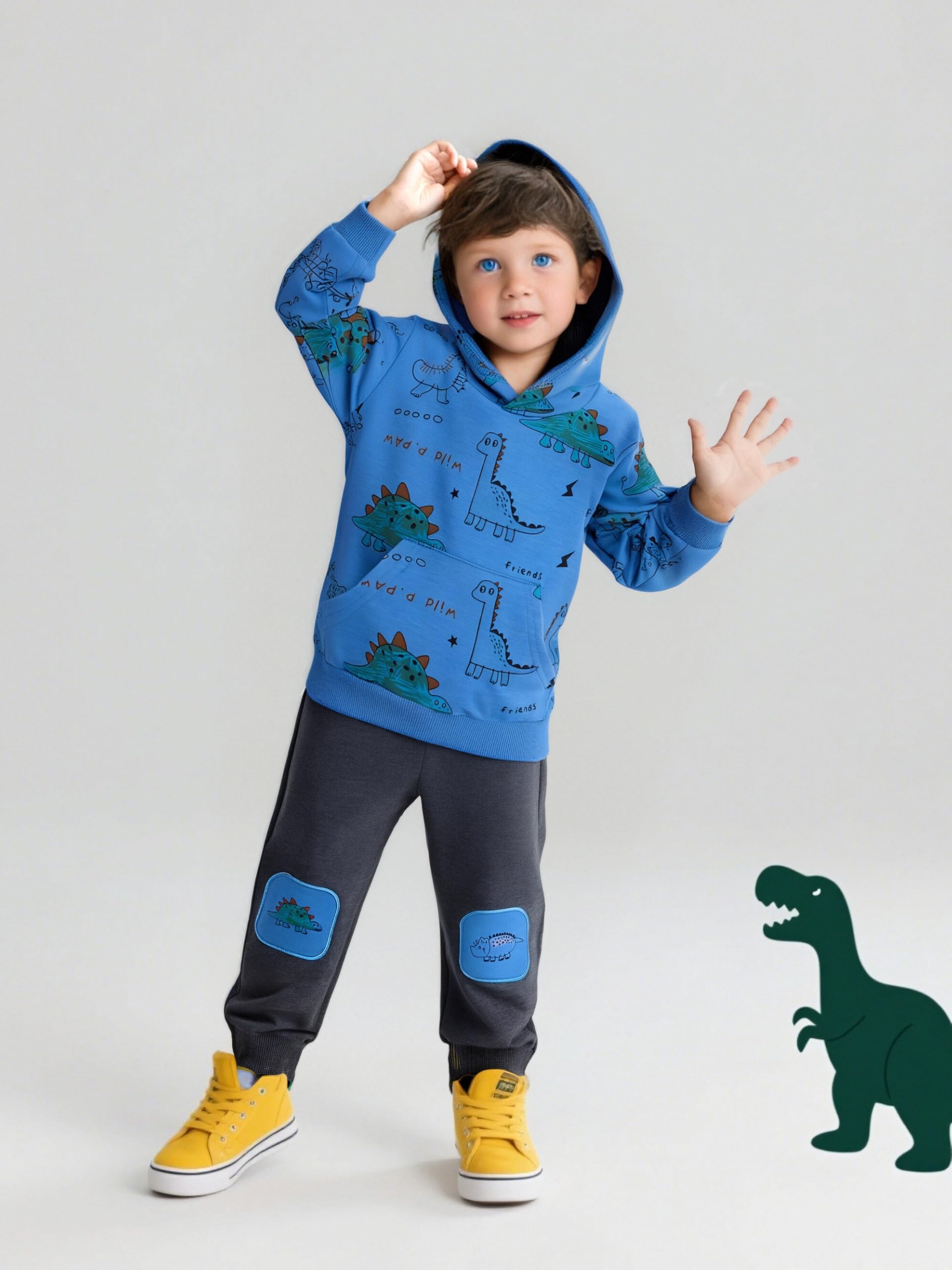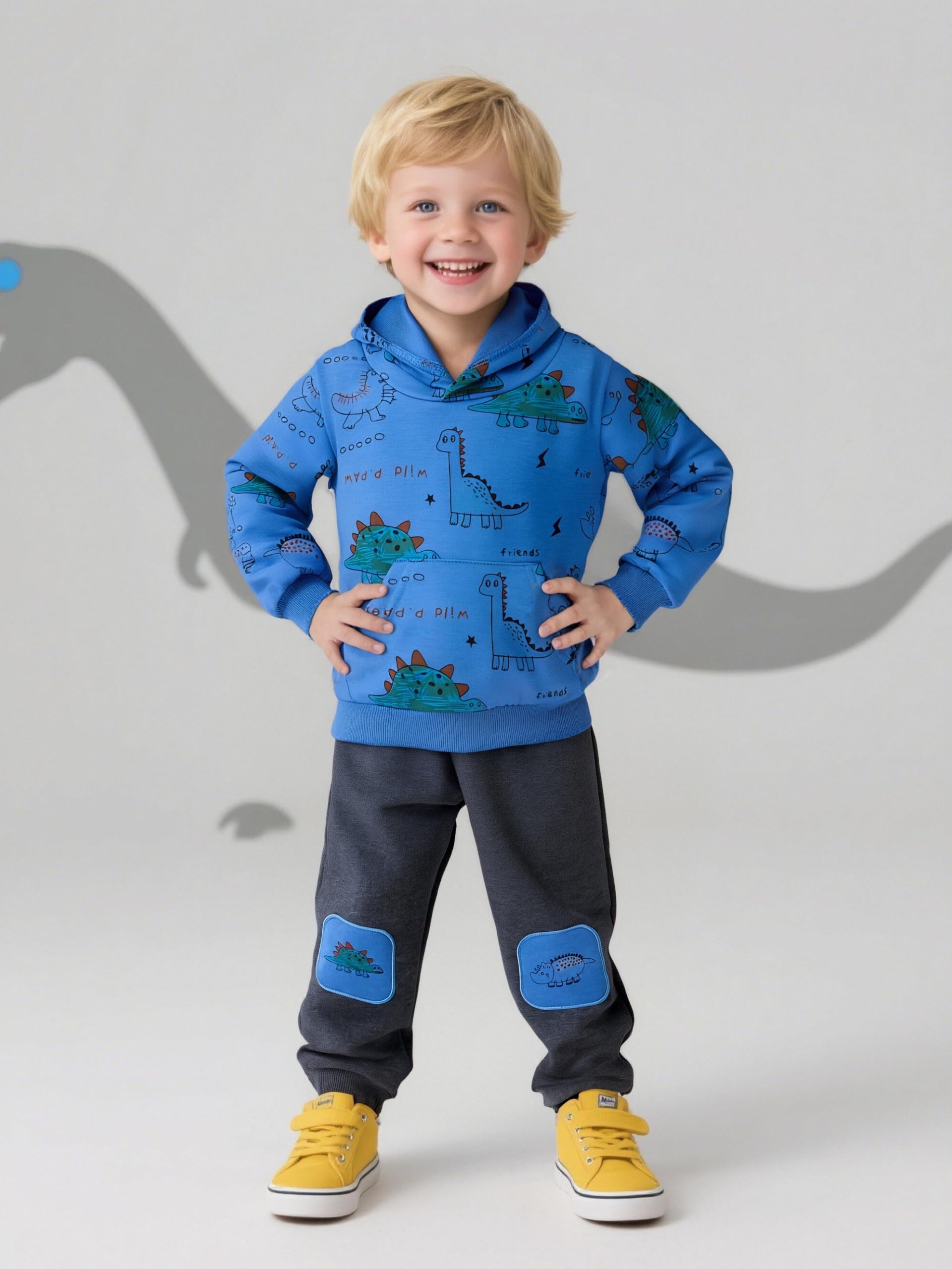 Description Adorable dinosaur hoodie and jeans sets for baby boys 2t-6t! Our cotton blend clothing set features cute prints for fall winter seasons. Perfect outfit for daycare, park visits, and family outings. Key Features: Dinosaur hoodie with cozy fleece lining + patch jeans with reinforced knees. Long sleeve top protects from chill while elastic waist pants allow easy movement. Machine washable fabric stays soft after repeated washes. Size Guide: 2T (28-32" height), 3T (32-36"), 4T (36-40"), 5-6T (40-44"). Color Options: Blue (navy dino print), Yellow (sunshine dino), Apricot (peach dino). Why Moms Love It: ▶️ Time-saving coordinated sets ▶️ Durable for active toddlers ▶️ Growth-friendly roomy cuts ▶️ Party-ready cute designs. Care: Machine wash cold/Tumble dry low. Imported.