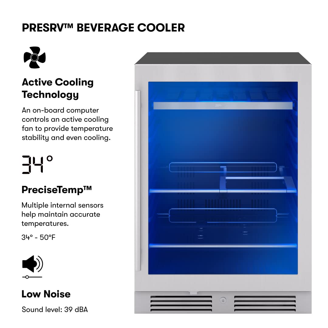 Optional Glass Shelf/ Slide-out Gray Glass Shelves (2)/ Temperature Range: 34° - 50° F/ Vibration Dampening System. PreciseTemp