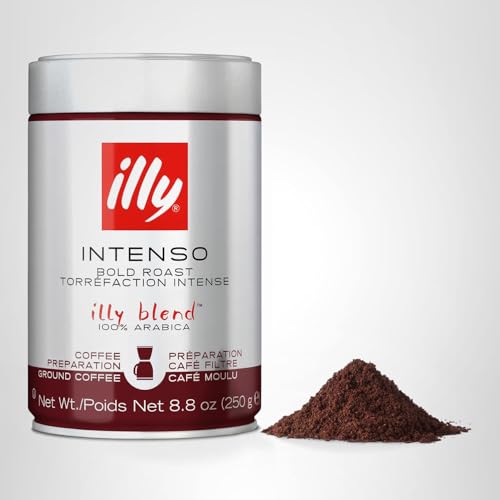 ILLY DISTINCTIVE TASTE - Intenso, dark roast flavored ground coffee is a bold roast and has a pleasantly robust finish with warm notes of cocoa and dried fruit.