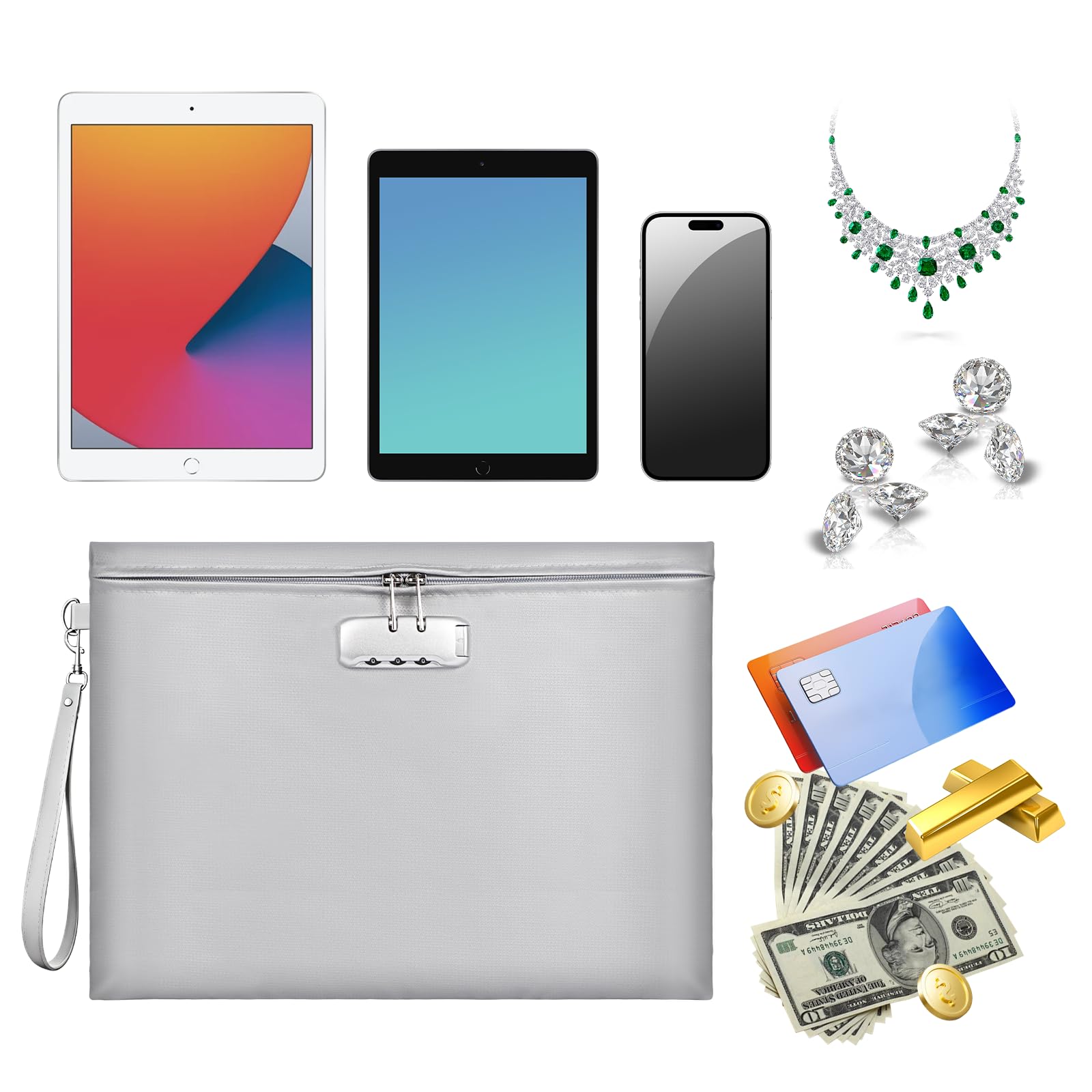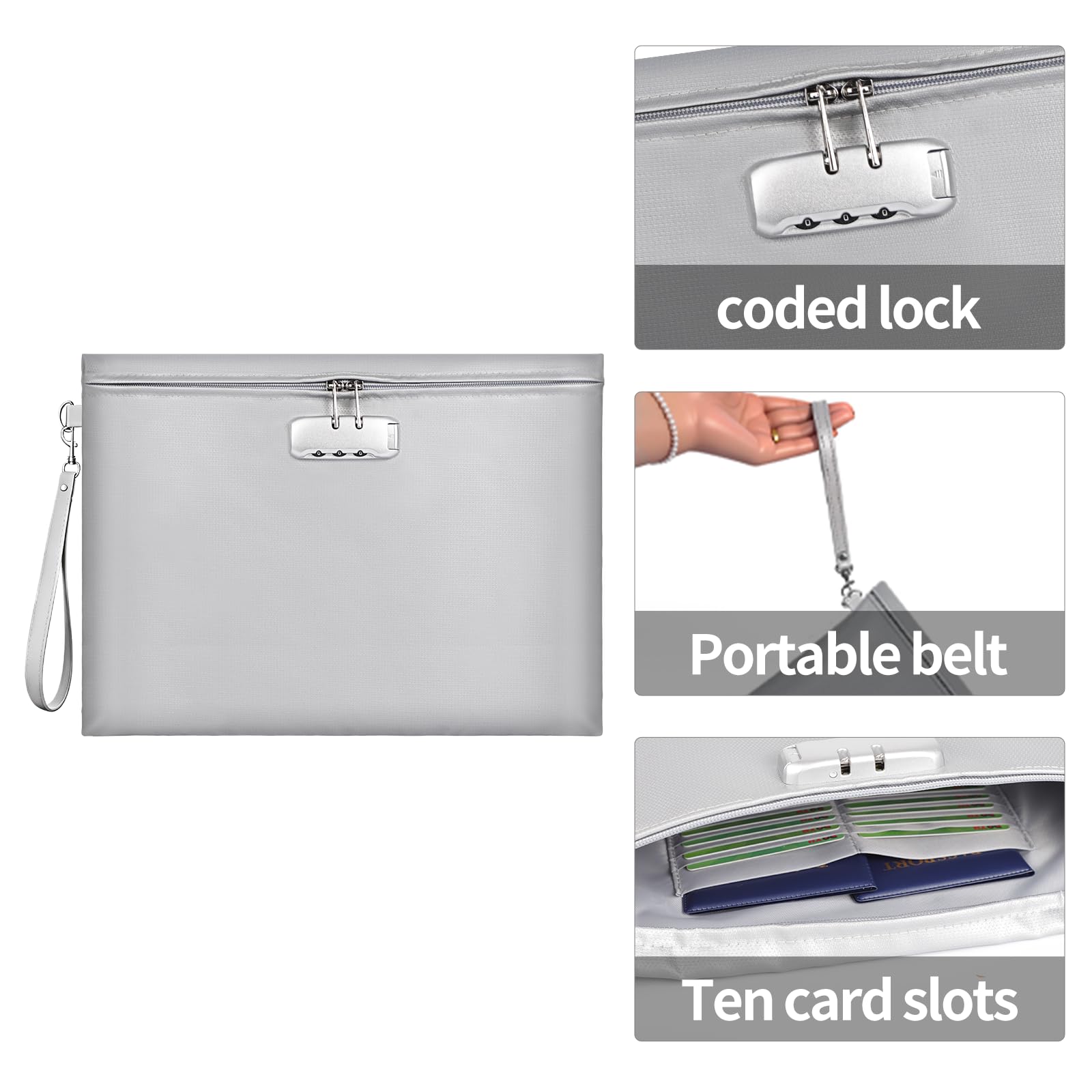 [Multifunctional Document Bag] This A4 letter size fireproof file bag can store A4 size documents, contracts, iPads, mobile phones, passports, cash, pens, credit cards, etc. You can not only put fireproof document storage in offices, fireproof safes, and lockers, but you can also use cash pouch for business trips and travel. Of course, as a gift to friends and colleagues is also a good choice.
