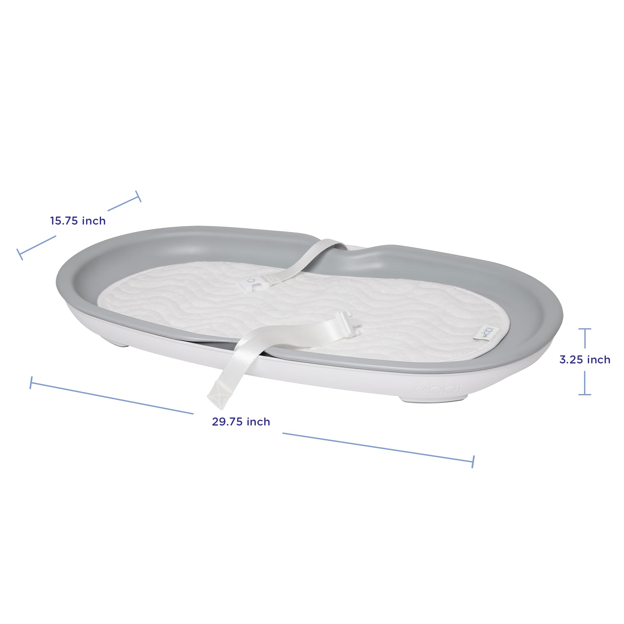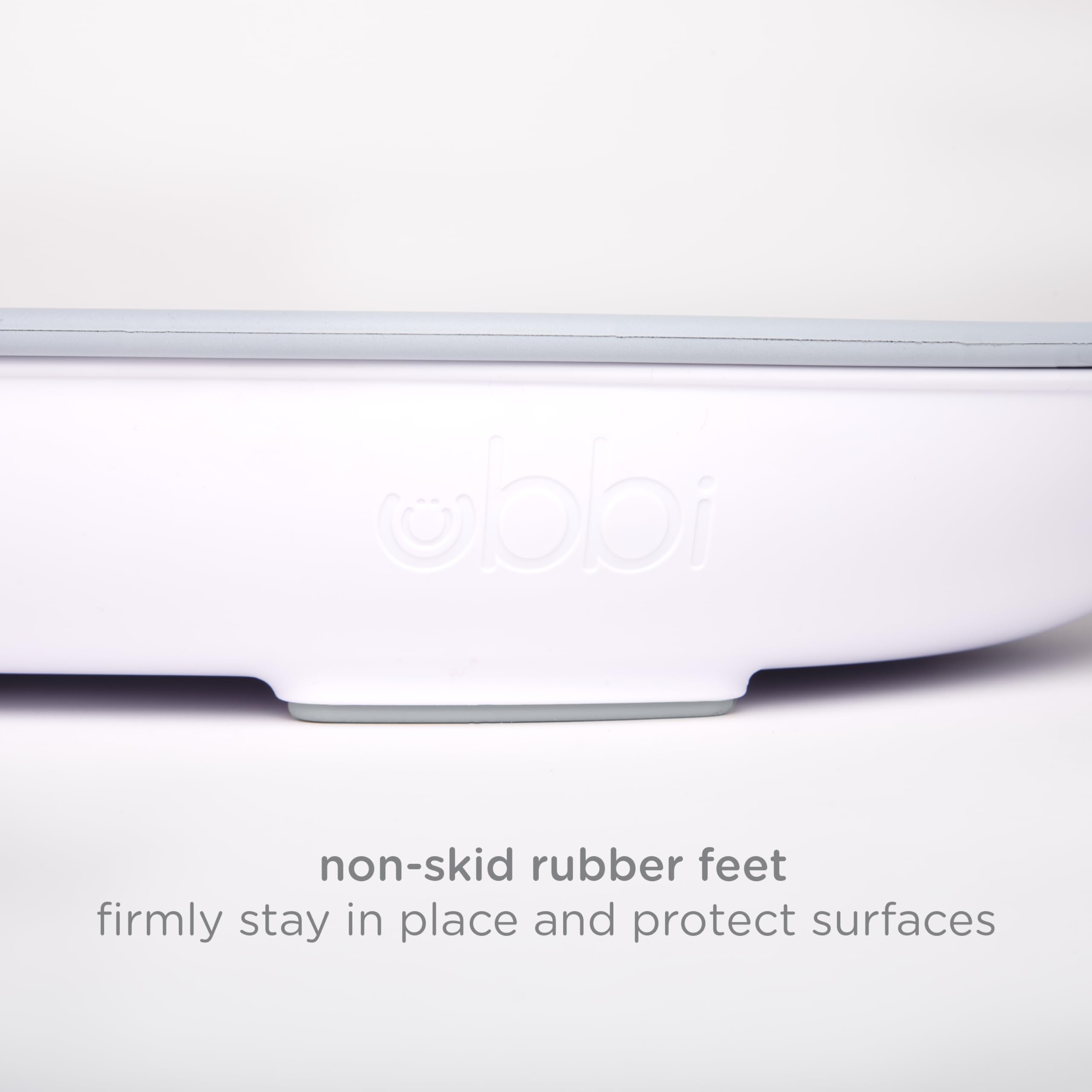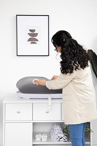 The Ubbi Foam Diaper Changing Pad is the modern solution for convenient and comfortable diaper changes wherever you are. Crafted with an easy-to-clean design, the diaper changing pad foam repels liquids and is easy to wipe down. Its soft and contoured form provides a cozy and comfortable spot for your baby, while the secure safety strap keeps your little one in place during diaper changes, offering peace of mind for parents. Equipped with non-skid rubber feet, the pad stays firmly in place, protecting surfaces and preventing slips or slides. The sturdy BPA-free base ensures stability, keeping the soft foam pad securely in place during daily use. With its modern aesthetic, featuring a trendy basket-like design in chic gray or taupe colors, this baby changing pad enhances any newborn nursery decor. This infant changing pad is lightweight and compact - the perfect size to fit on top of your dresser, changing table, or any surface. Experience the convenience of Ubbi’s Diaper Changing Pad, designed for easy maintenance and daily use. Say goodbye to worries and hello to stress-free diaper changes with our innovative design. Dimensions: 15.38"L x 29.5"W x 2.63"H