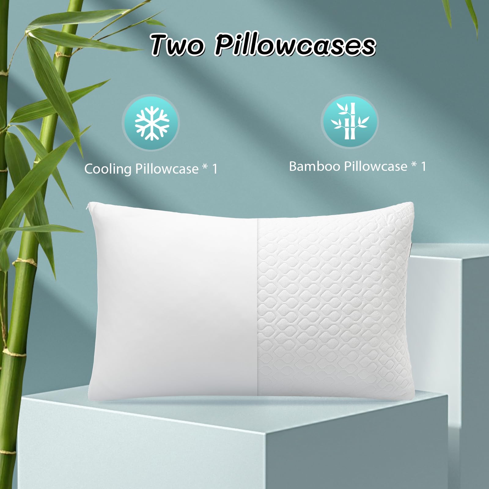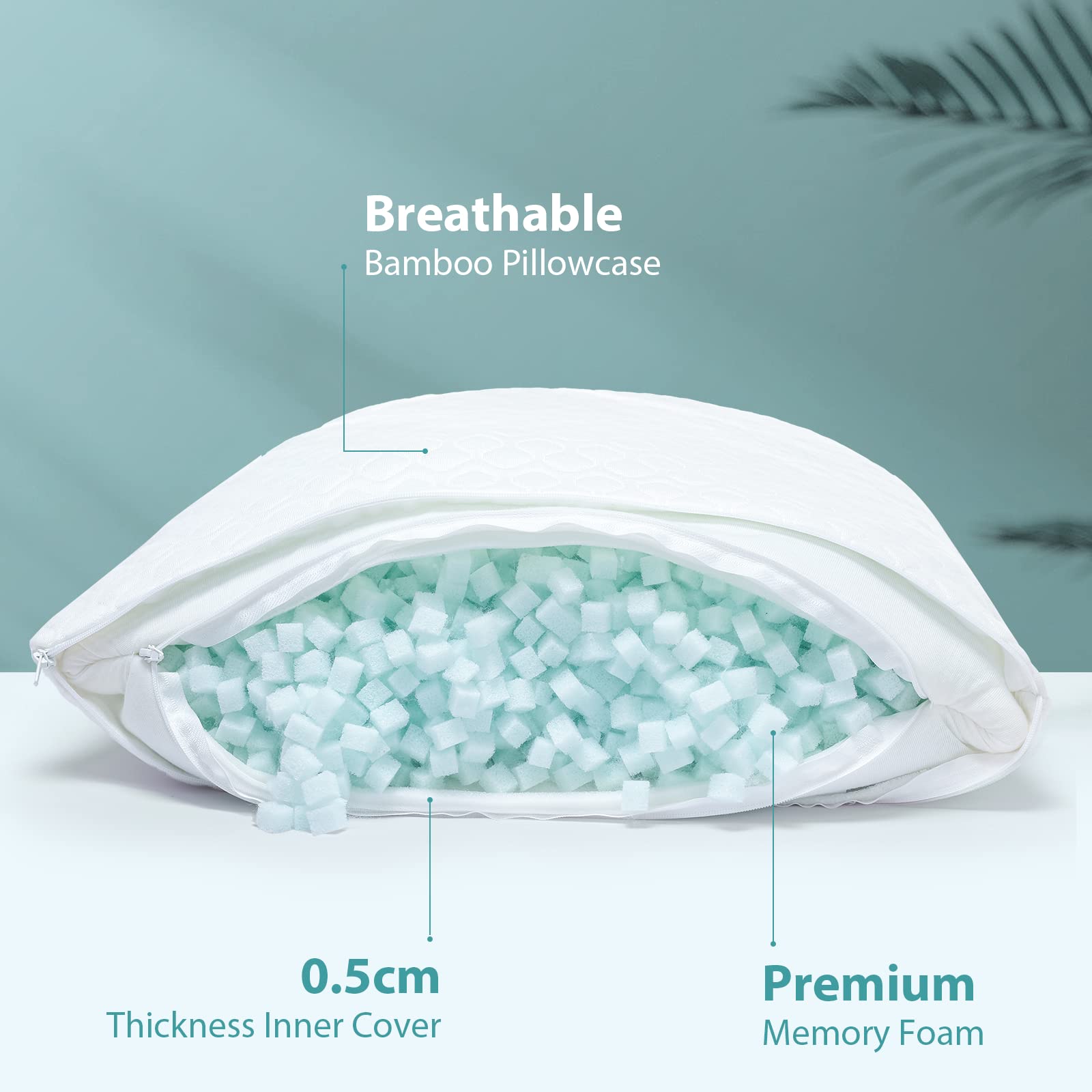 🌜【Memory Foam Pillows Set of 2】: Unlike other pillows, our shredded memory foam pillows use 100% Freshly Manufactured Shredded Memory Foam instead of repurposed filling. With OEKO-TEX STANDARD 100 Certified, there is no harmful substance and strong odor, you could sleep in pleasure all night.