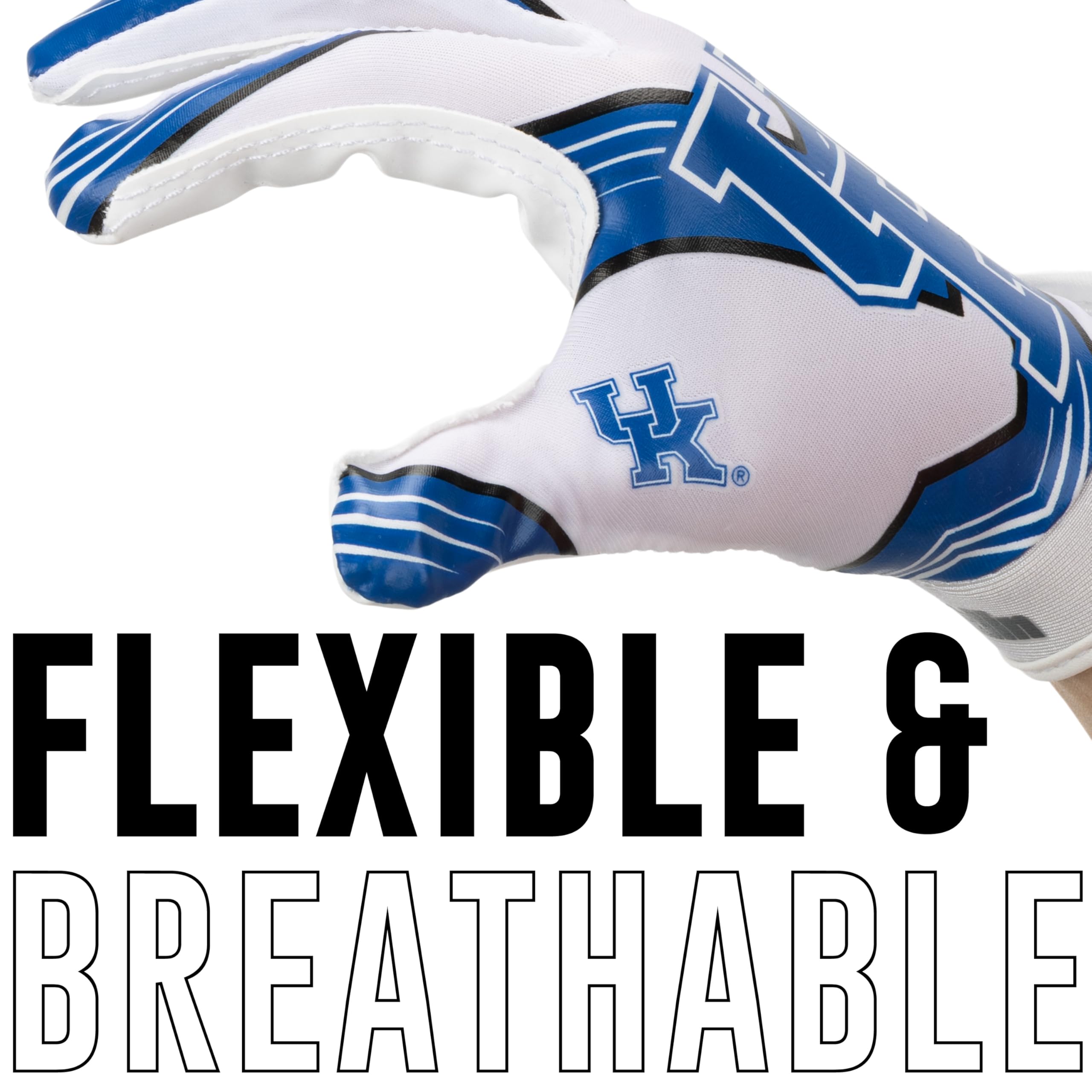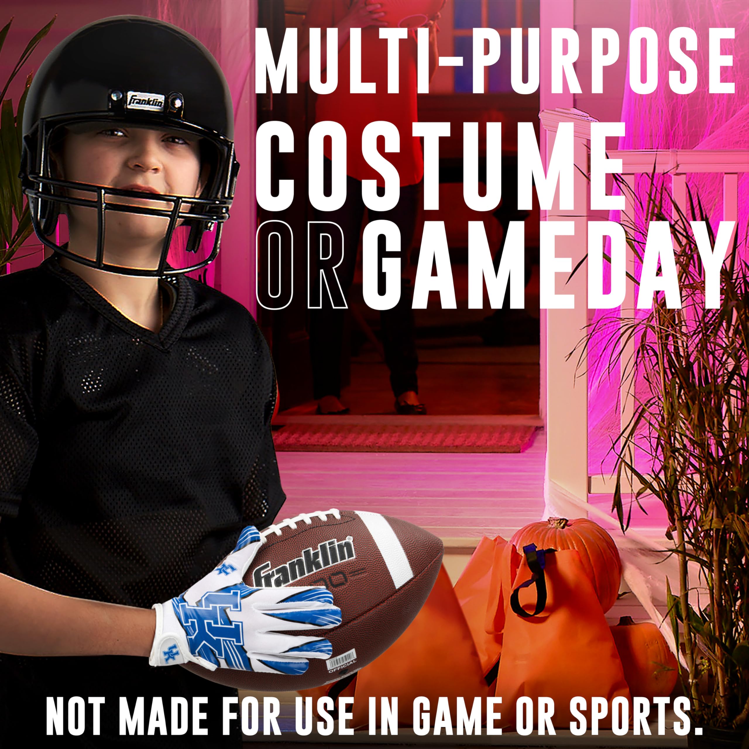 Franklin Sports NCAA Kids Football Receiver Gloves are the perfect accessory for any young football fan who wants to look and play like their favorite college football players! These super-tacky, silicone-palm football receiver gloves are designed for premium fit, feel and performance on and off the field. The flexible fabric hand back and high-grip palm help youth receivers increase their grip on the ball to reel in tough catches. Plus, the breathable material ensures that their hands can stay dry and cool throughout the game for maximum comfort. These kids football gloves are designed with official NCAA college team colors and logos so kids can rep their favorite teams on and off the field. Perfect for tailgate outfits and Halloween costumes, these football gloves are a great accessory for gameday tailgates and parties. Available in small/extra small and medium/large sizing, these kids receiver gloves are perfect for kids ages 7-12. So if you know a young college football fan who is looking to elevate their game and show some team pride, grab them a pair of Franklin Sports' NCAA Kids Football Receiver Gloves today!