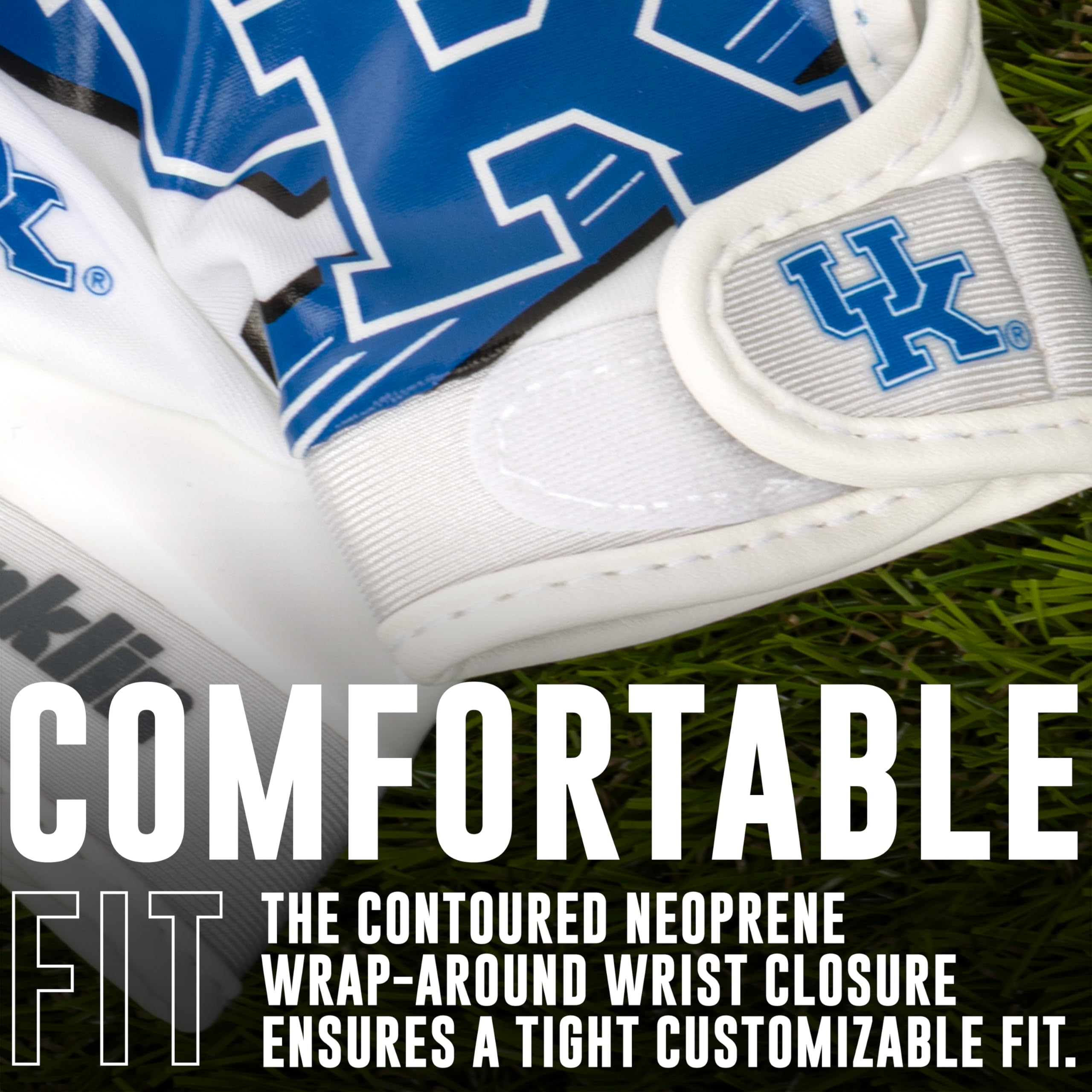 CATCH EVERY FOOTBALL: The one-piece tacky silicone palm with extended thumb and forefinger coverage make these gloves super sticky to make snatching footballs out of the air a breeze