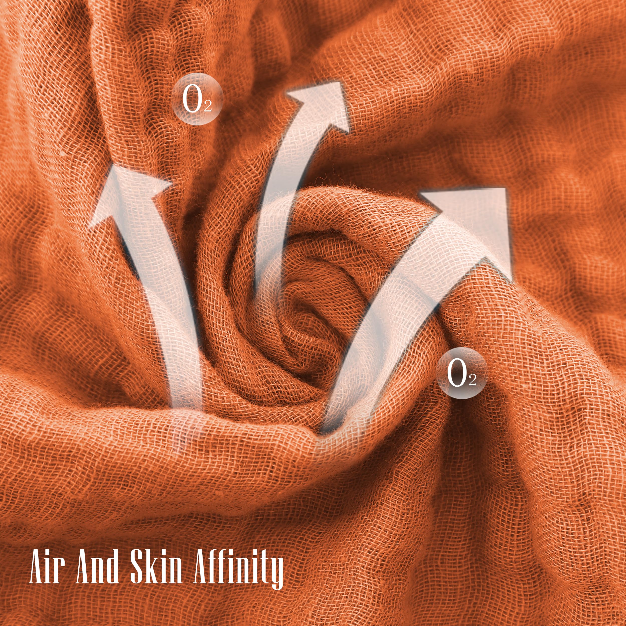 【MULTI-LAYER BREATHABLE STRUCTURE】 The fluffy structure of the cotton muslin fabric provides absorbs water and does not penetrate quickly effect.