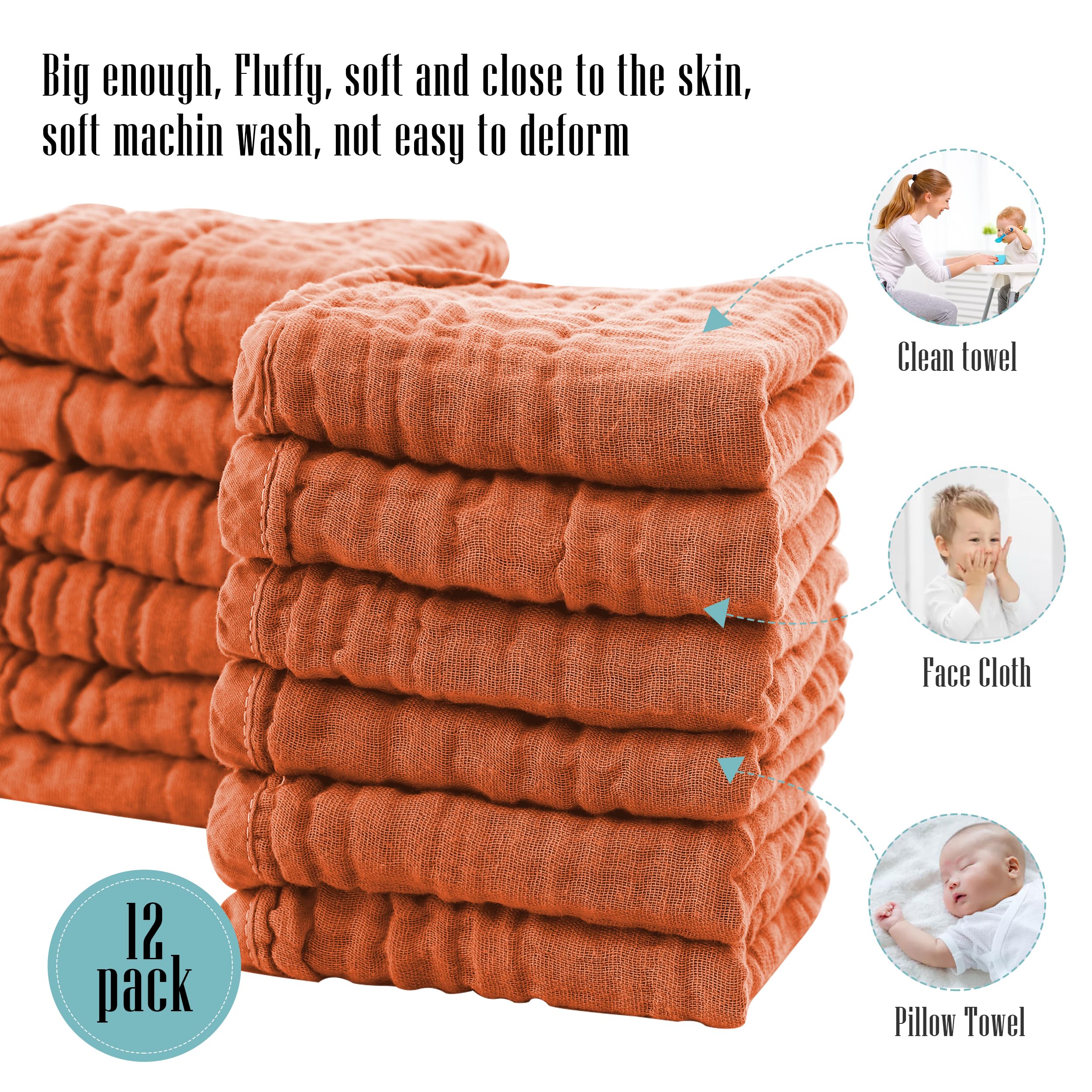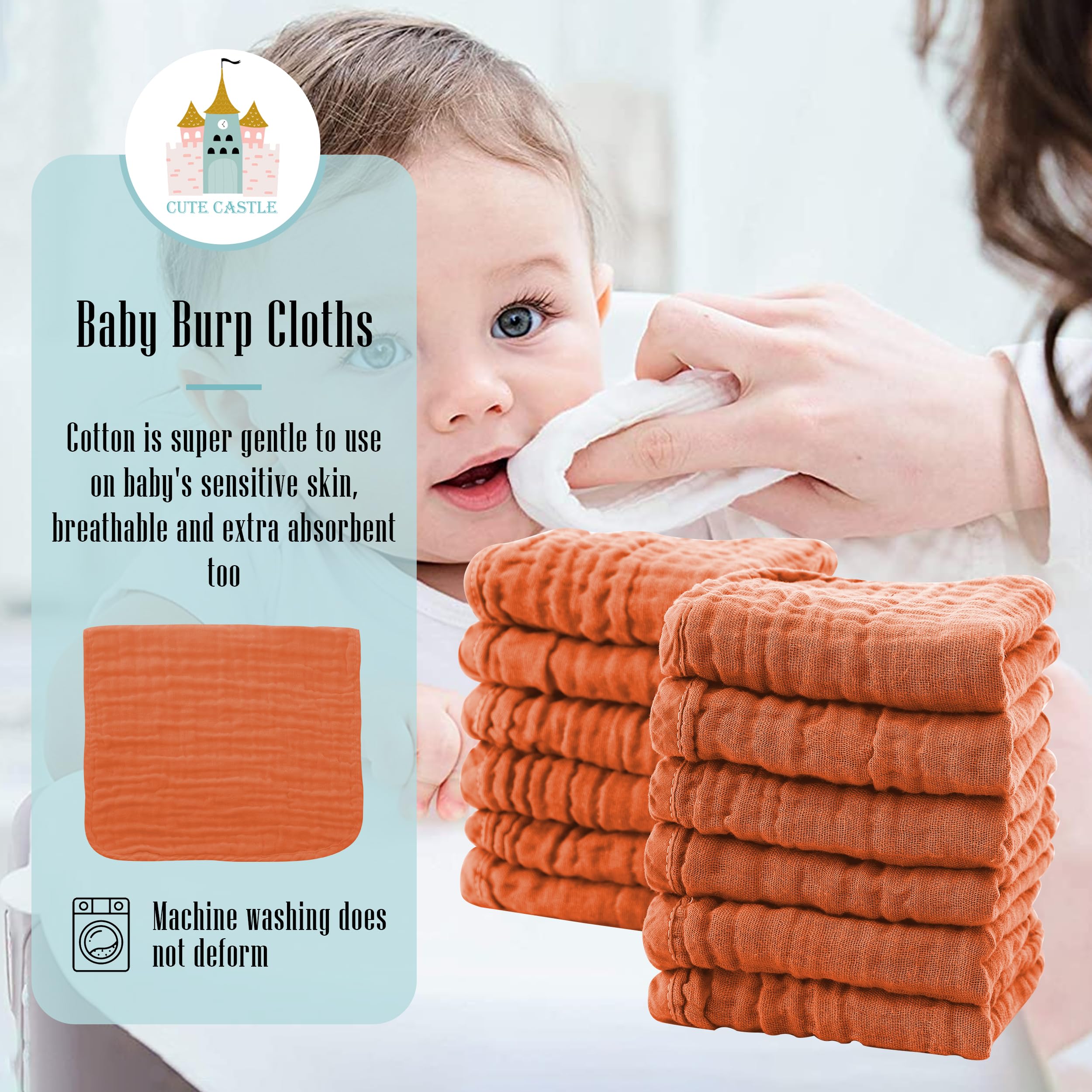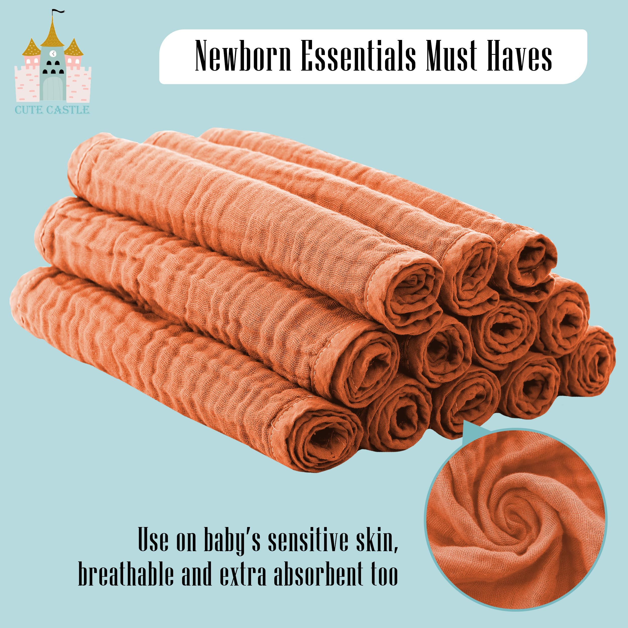 【PACKAGE CONTENT】 Baby Essentials Must-Have - 12 pieces muslin burp cloths, 20 x 10 inches.