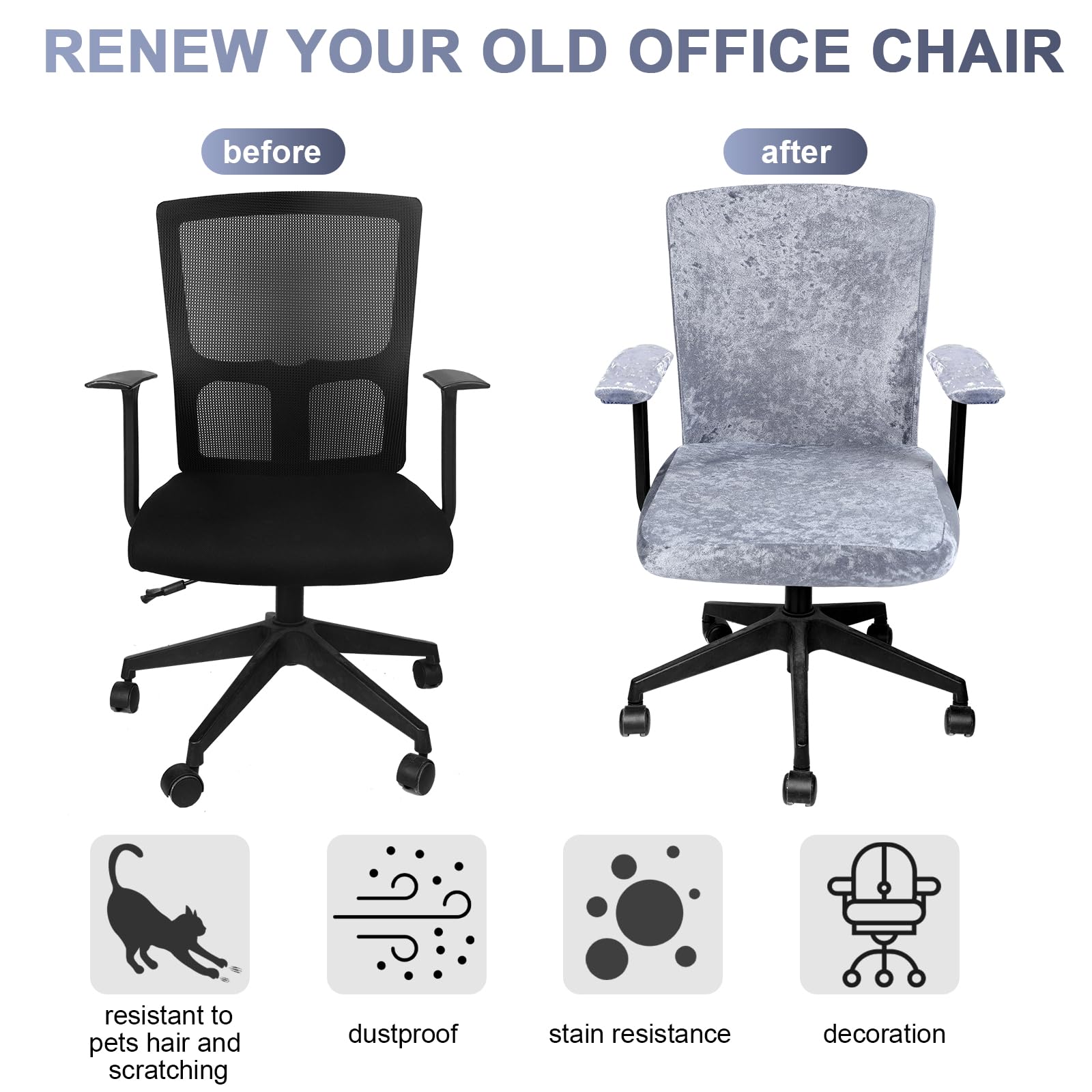 Practical to Apply: these office chair covers are thoughtful and helpful tools to refurbish your old chair, which can not only decorate your chair, but also preserve your chair from scratches, dust, oil, pet hair