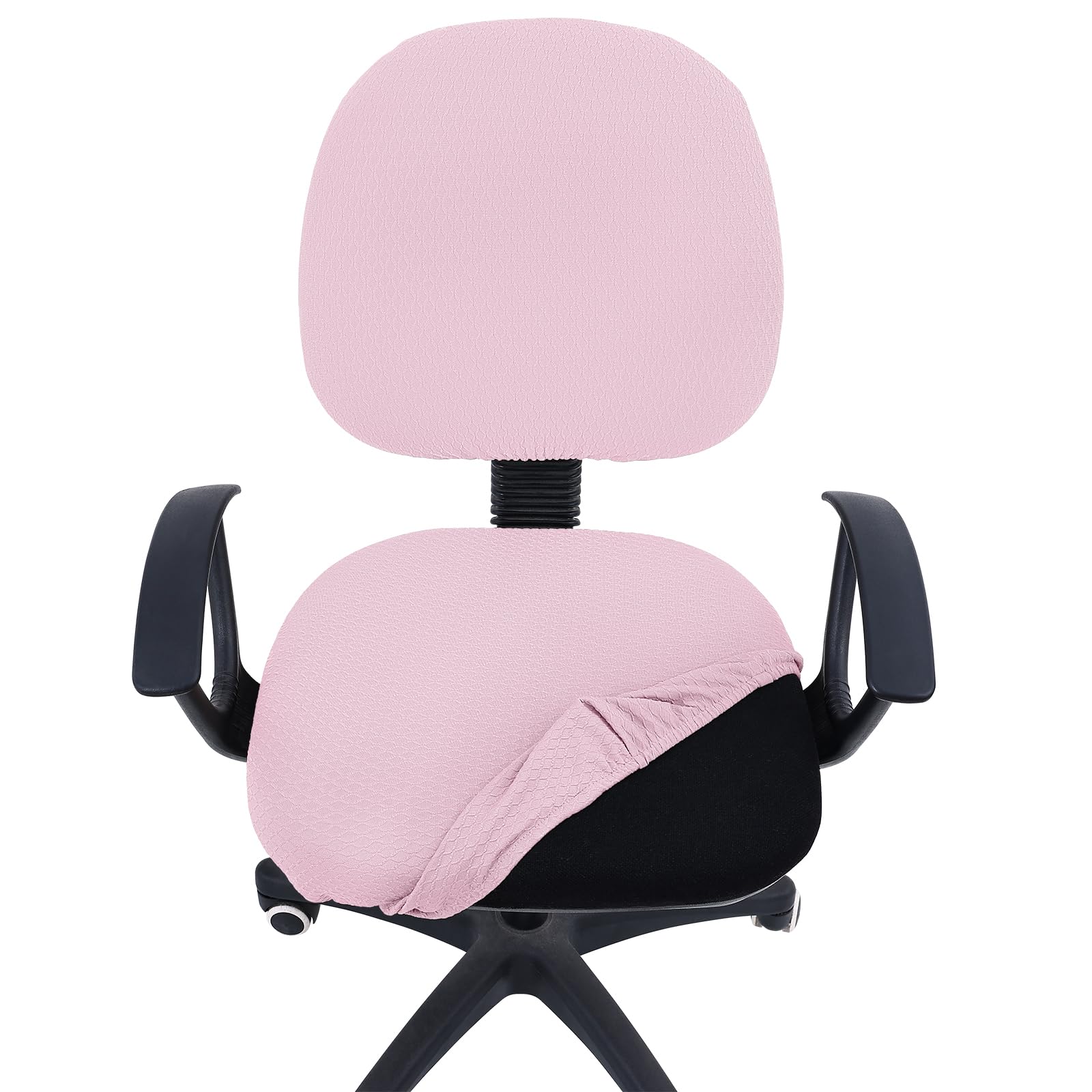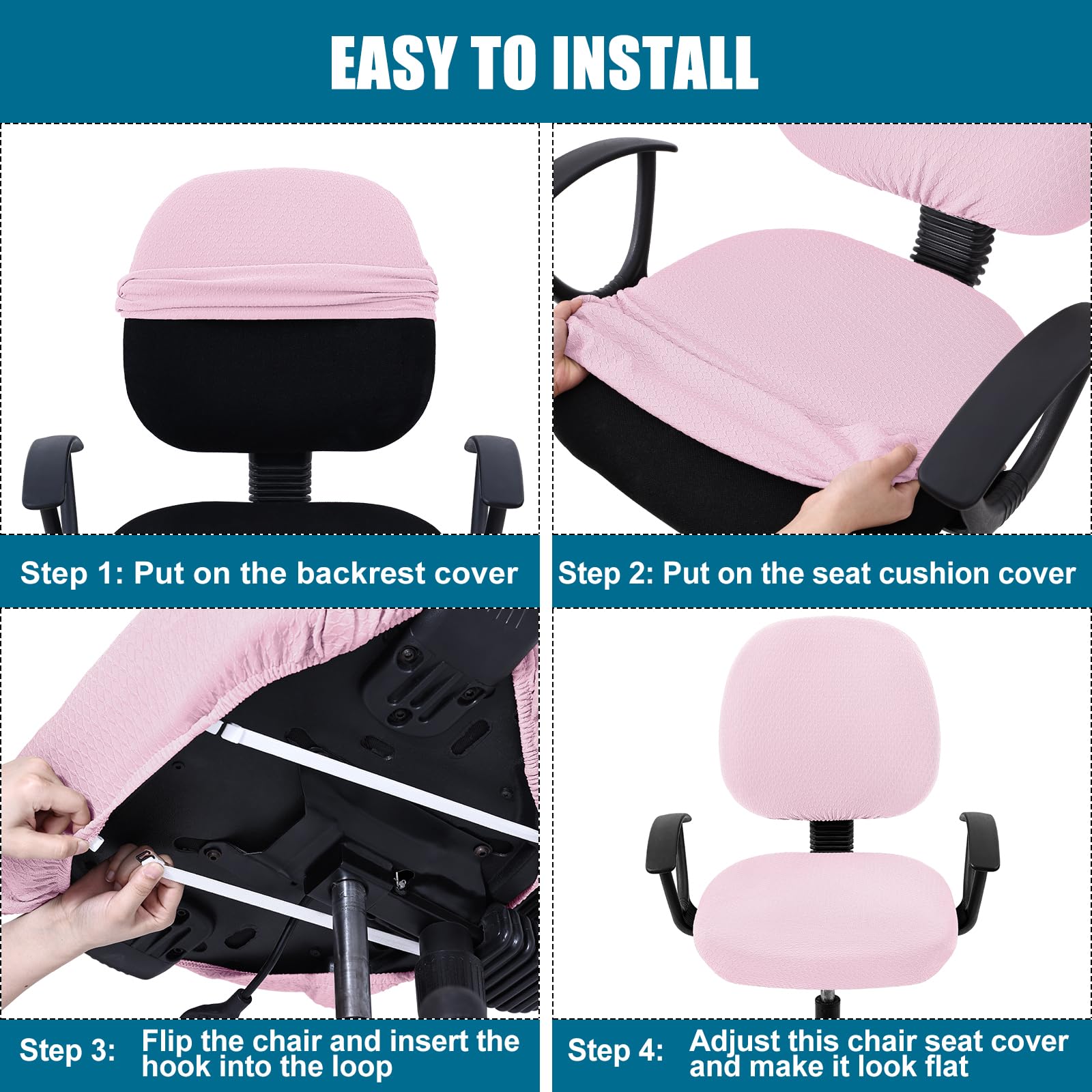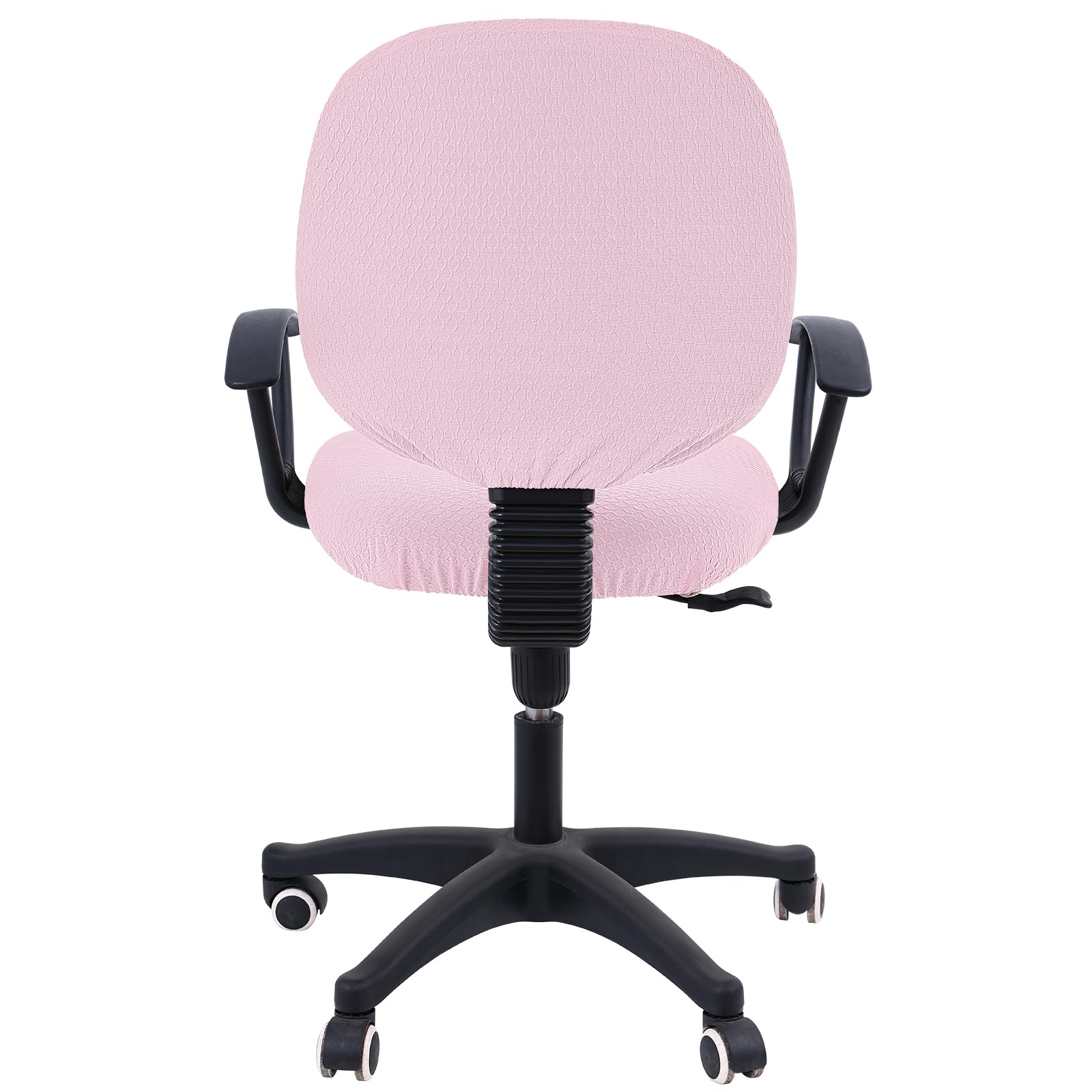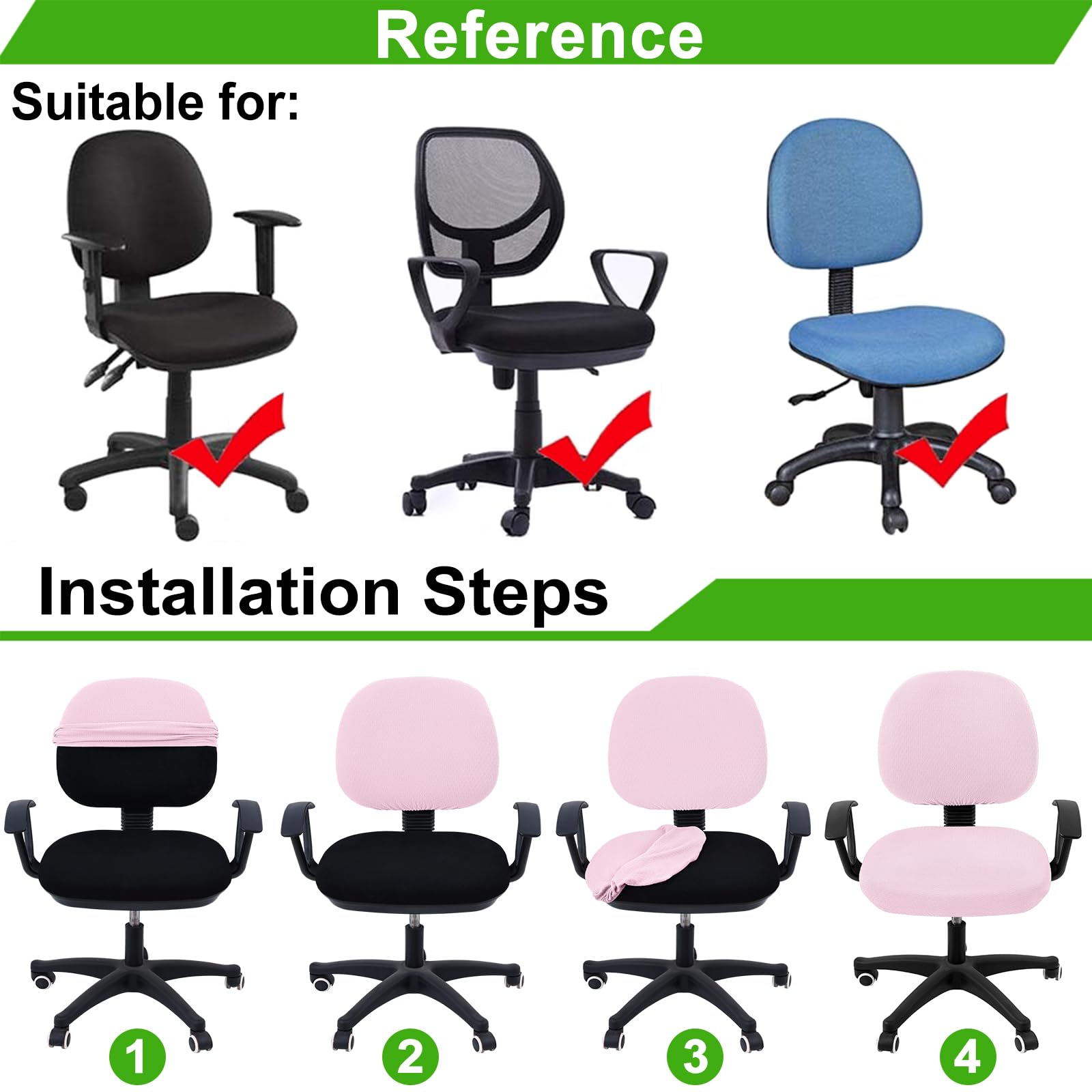 Material: Made of 92% polyester and 8% spandex, stretches to fit most office chairs easily. Equipped with elastic band, easy to fit and anti-slip, wrinkle resistance and reusable.
