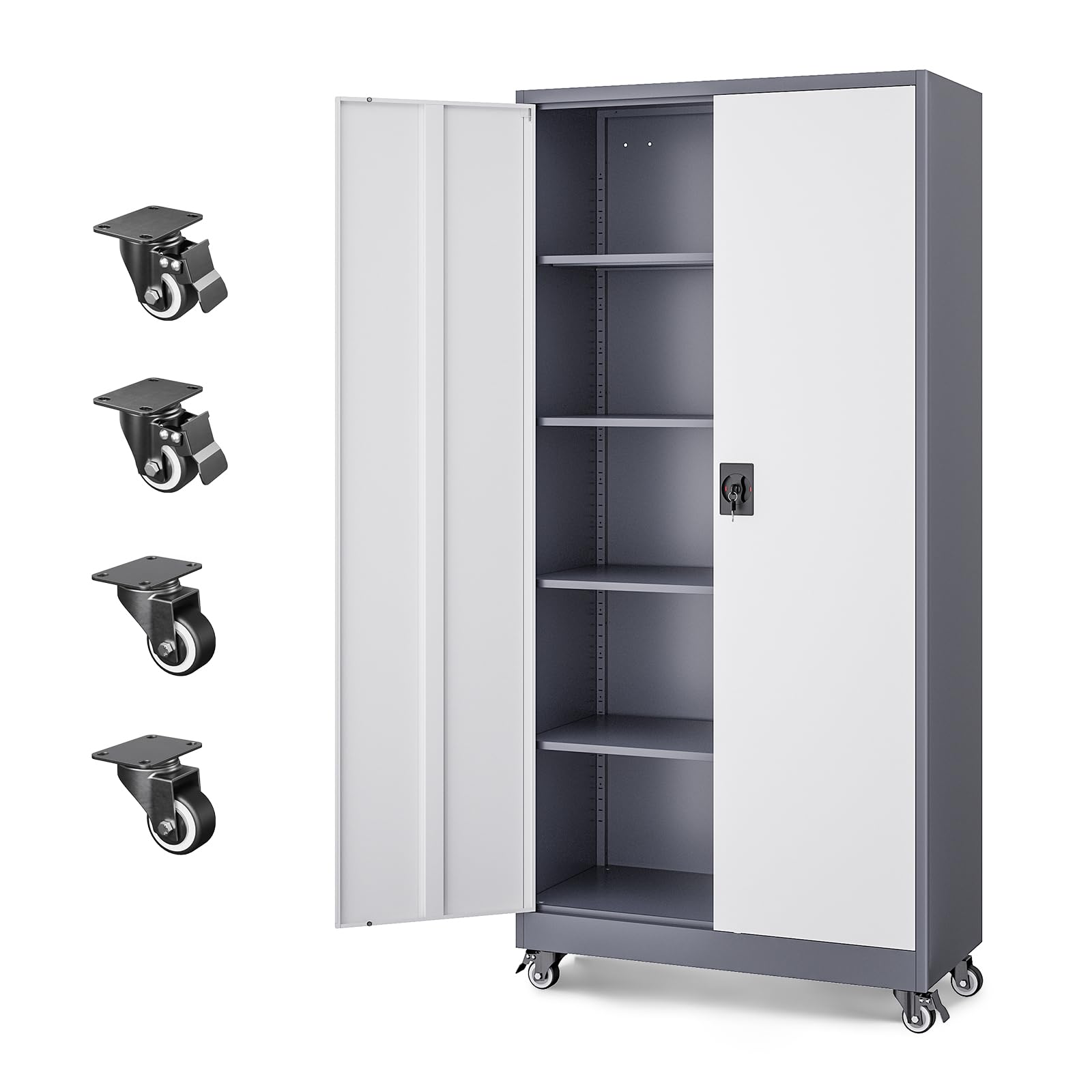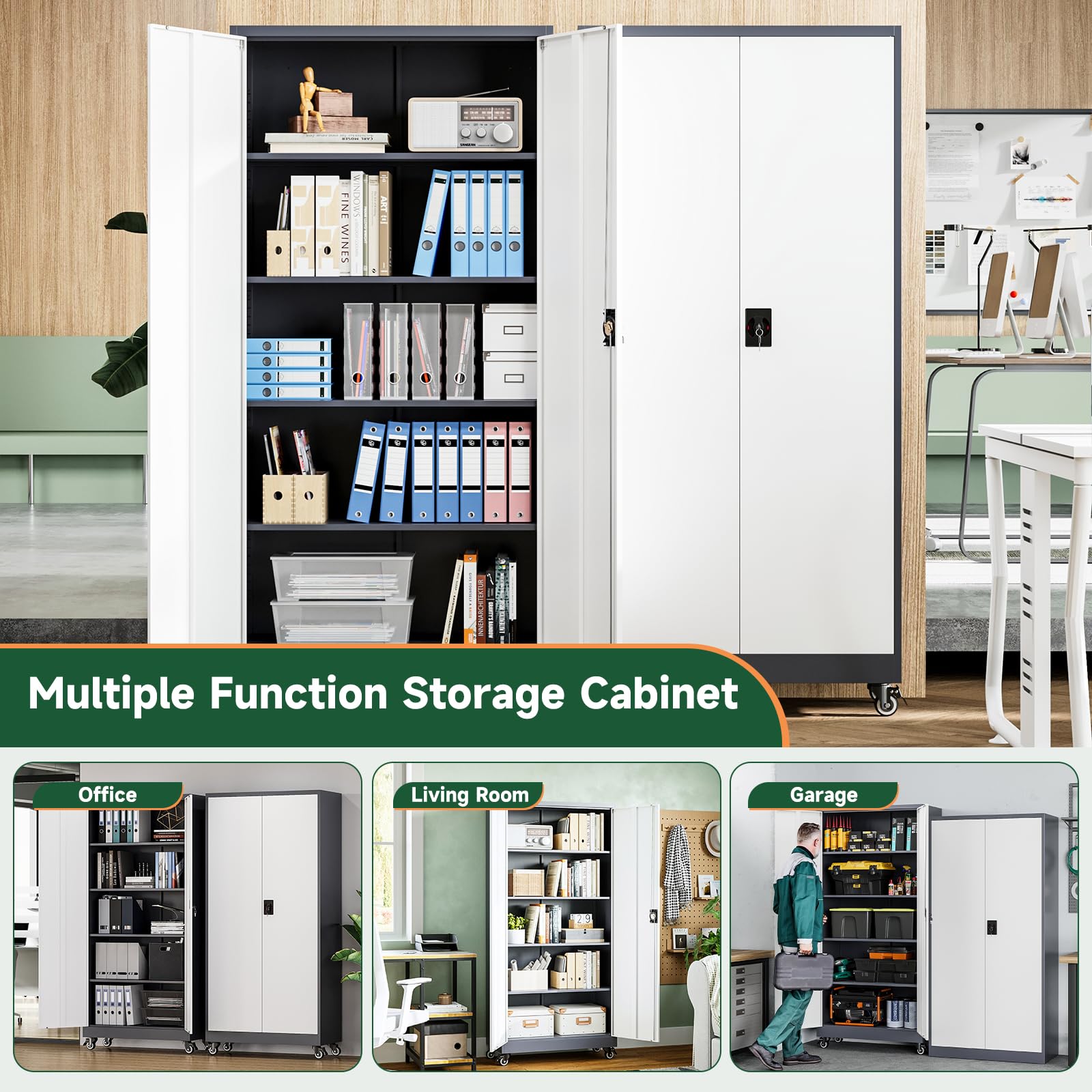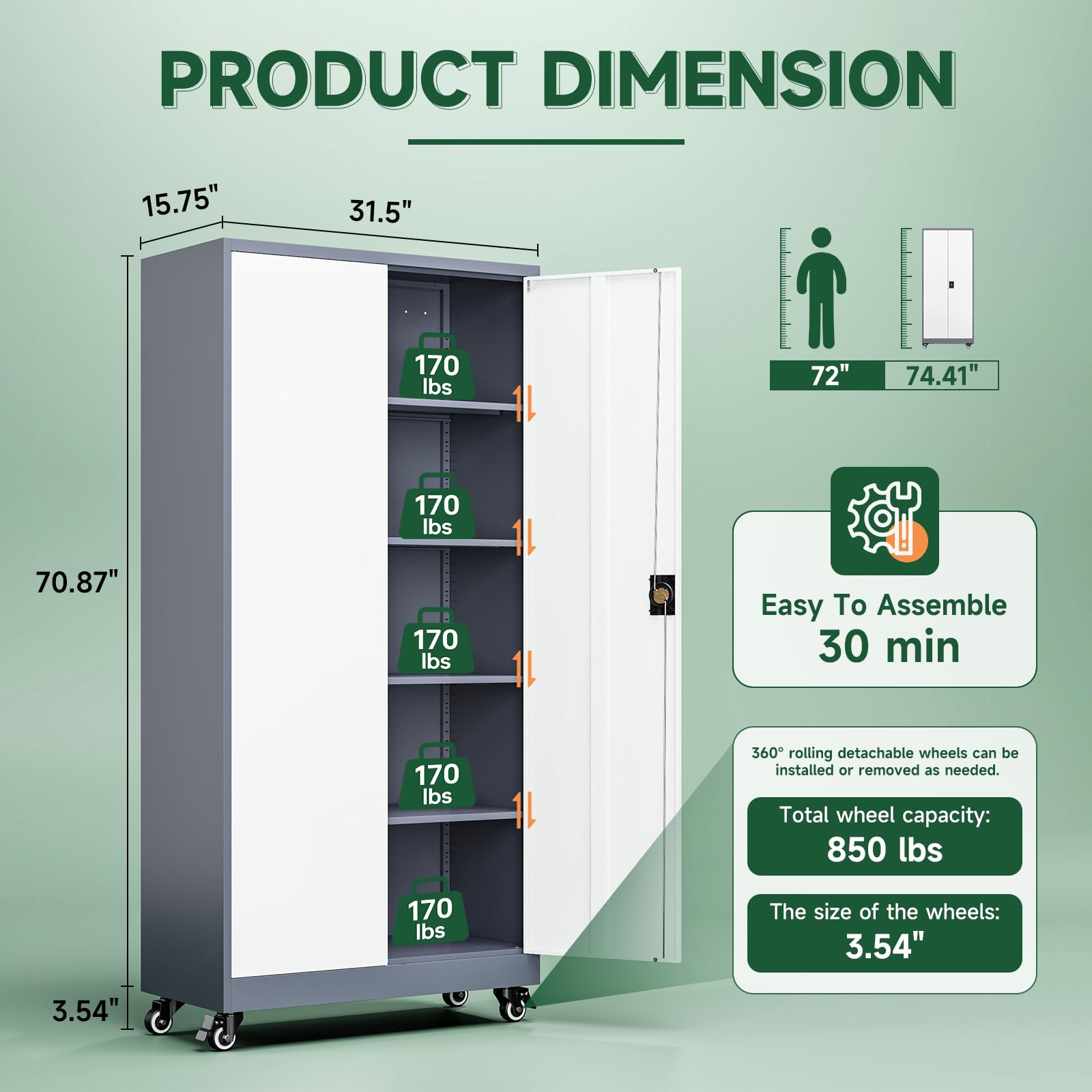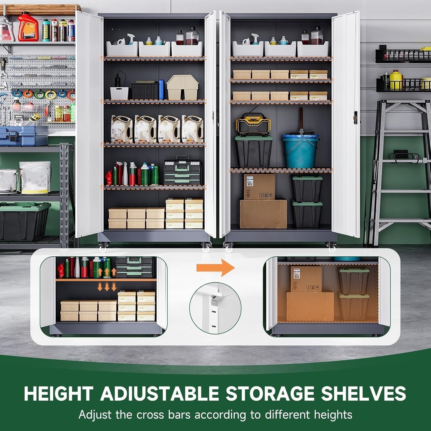 『Large Storage Space』: Steel garage storage cabinets H69.29 * W31.49 * D15.75 inch , features 4 adjustable shelves, can hold up to 180 lbs;Perfect for use in homes, offices, garages, schools, shops, warehouses or other commercial spaces.