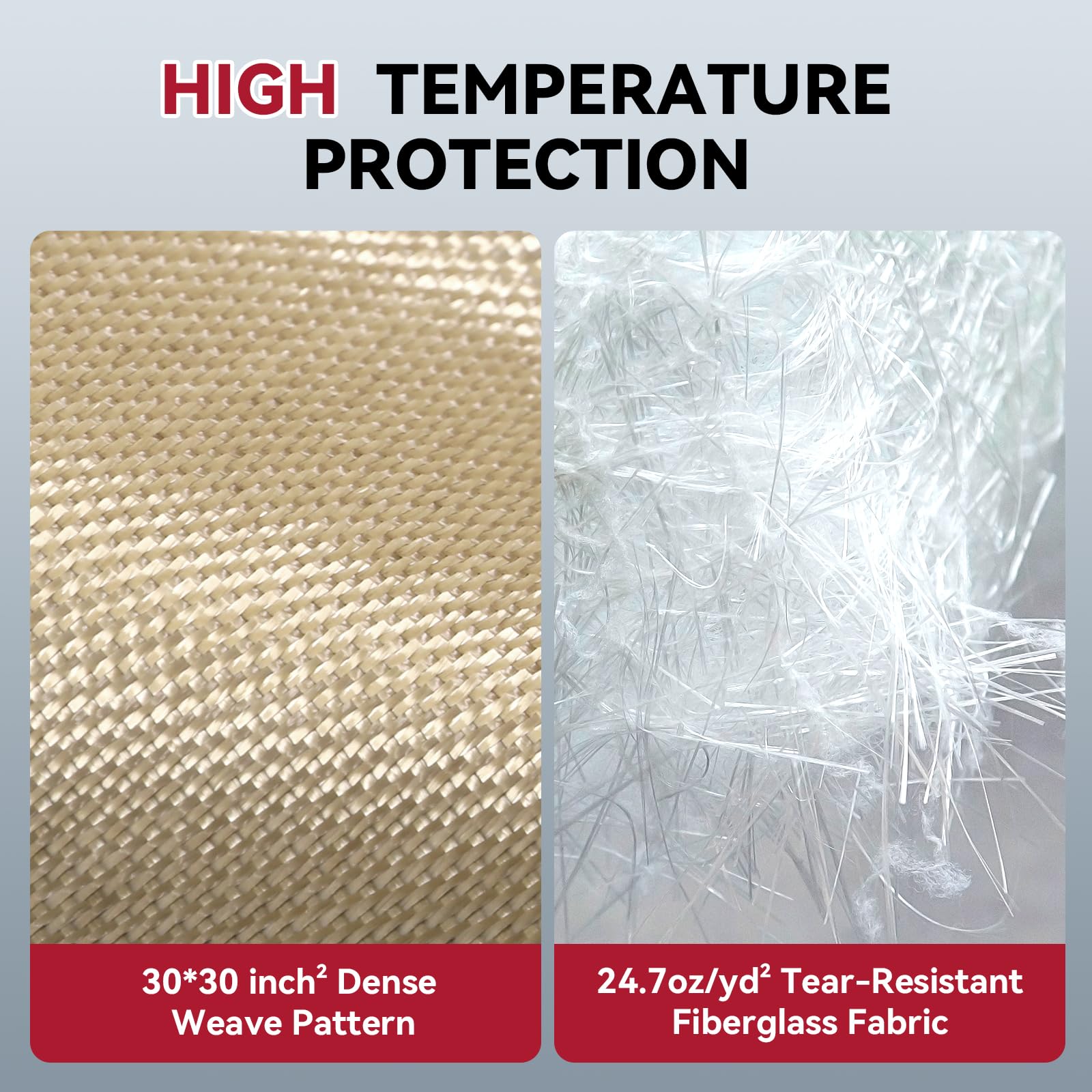 Fiberglass Welding Blanket: The ARCCAPTAIN welding blanket is made of 24.7 oz/yd² fiberglass fabric, which has excellent heat and fire resistance. The 30*30 inch² blanket features a tightly woven pattern with good tear resistance and durability, allowing for long-term repeated use.
