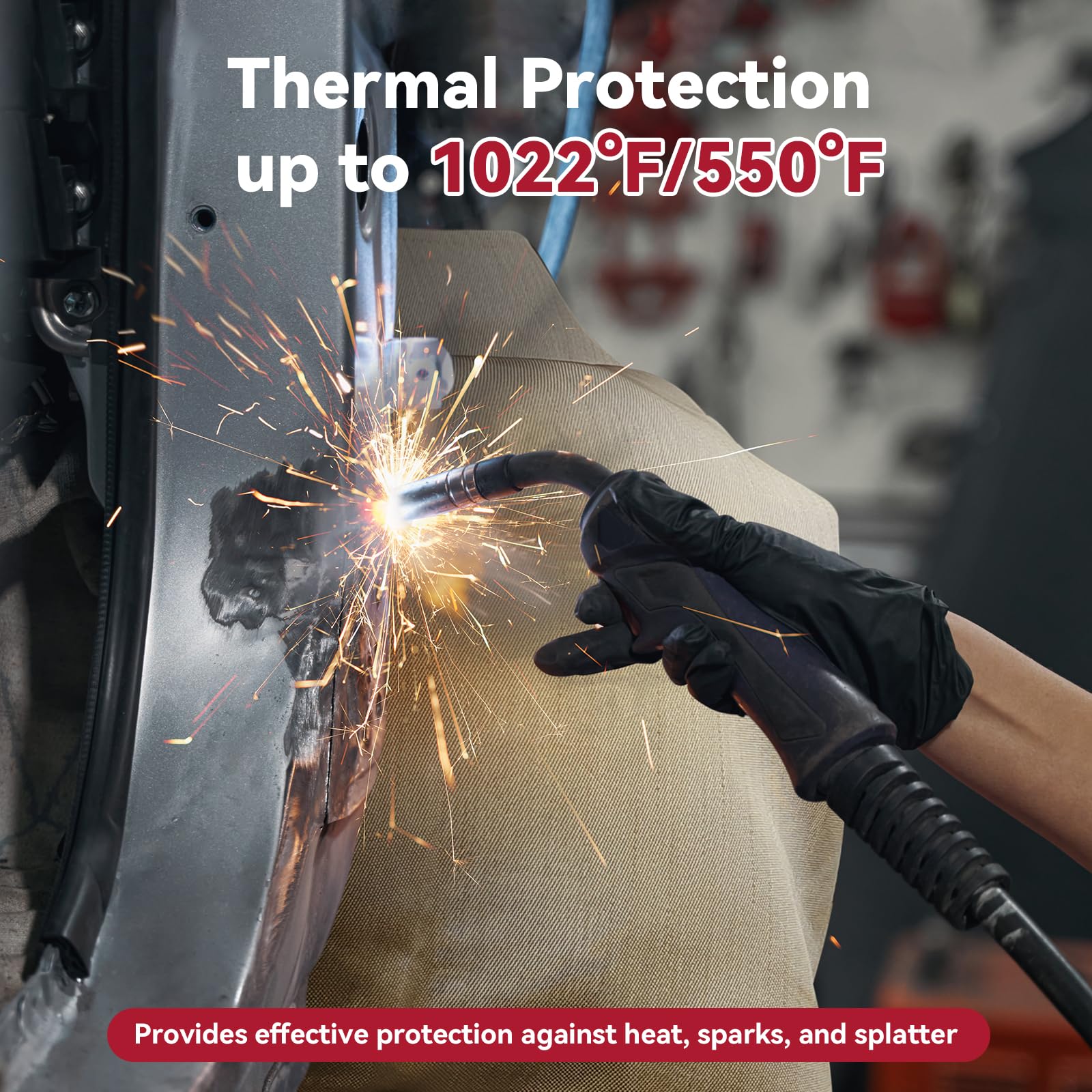 Flame Retardant Blanket: Made of flame-retardant fabric, it withstands working temperatures up to 1,022℉ (550℃). The welding blanket helps form a protective barrier against damage caused by spatter, sparks, or slag that occurs when melting metal, while also preventing accidental fires or damage to nearby objects.