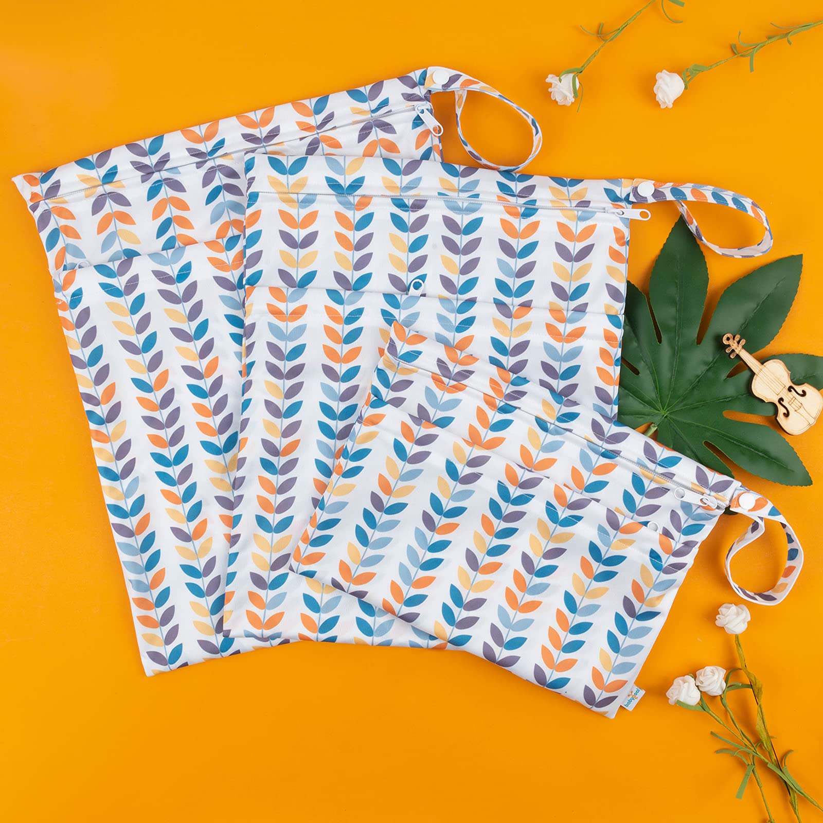 Double-Pocket Design with Snap Handle: Each wet bag contains two pockets, which comes with two zip closures to ensure that nothing will drop out of the bag and better to keep the clean and dirty items separately. With the snap handle design, you can unbutton the haddle and easily hang the bag on the stroller or door knobs, towel rod ect. anywhere you want.