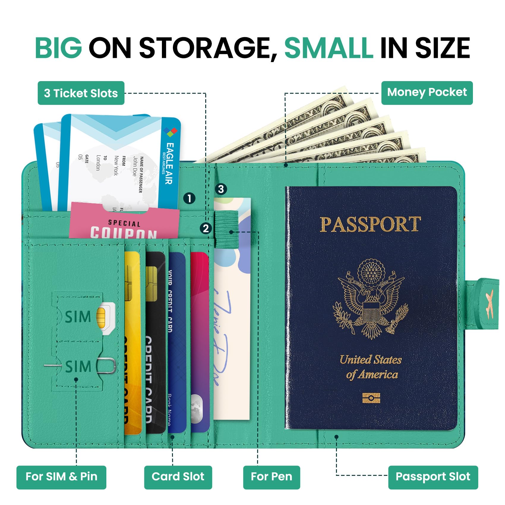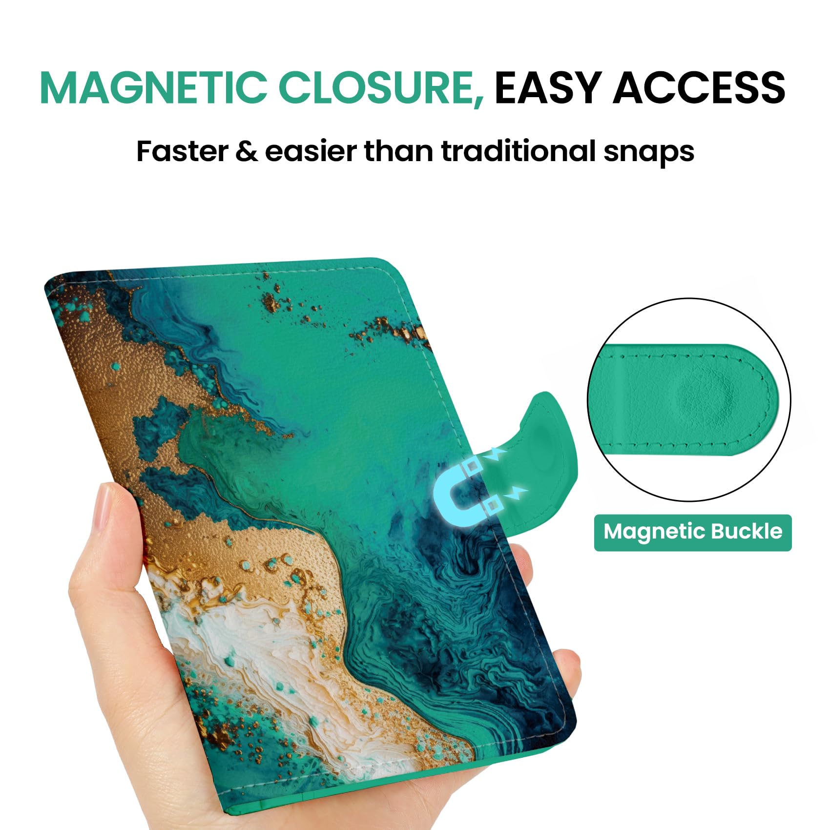 Instant Access & Magnetic Closure: Access your travel essentials in a snap. Our passport holder features a smooth magnetic closure for quick entry and secure storage - no more fumbling with zippers or snaps. Designed for effortless travel.