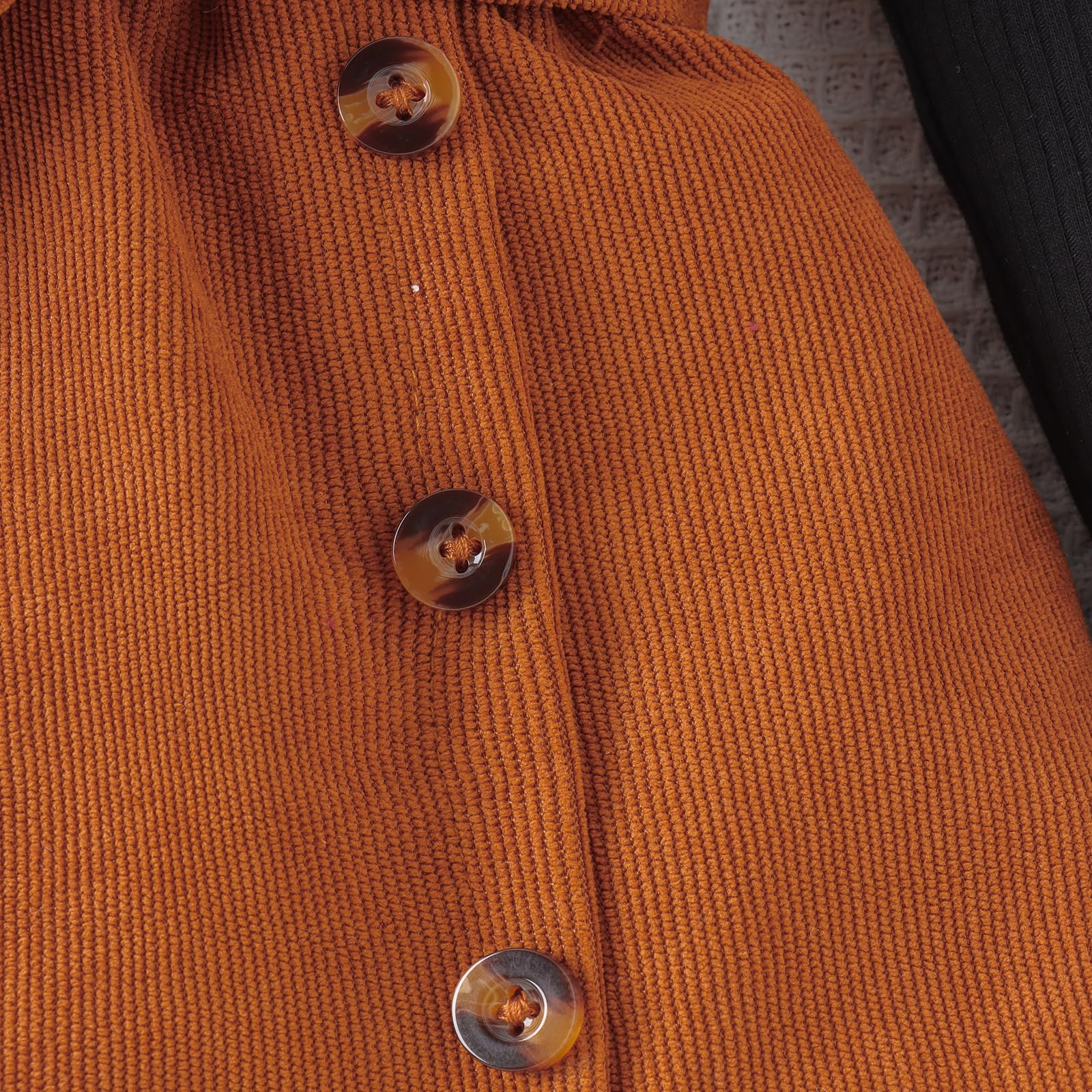 Design: Kids Little girl fall winter skirt set, turtleneck knitted cotton long sleeve solid color top, button mini skirt with elastic waist , winter fashion warm toddler girls clothes outfits