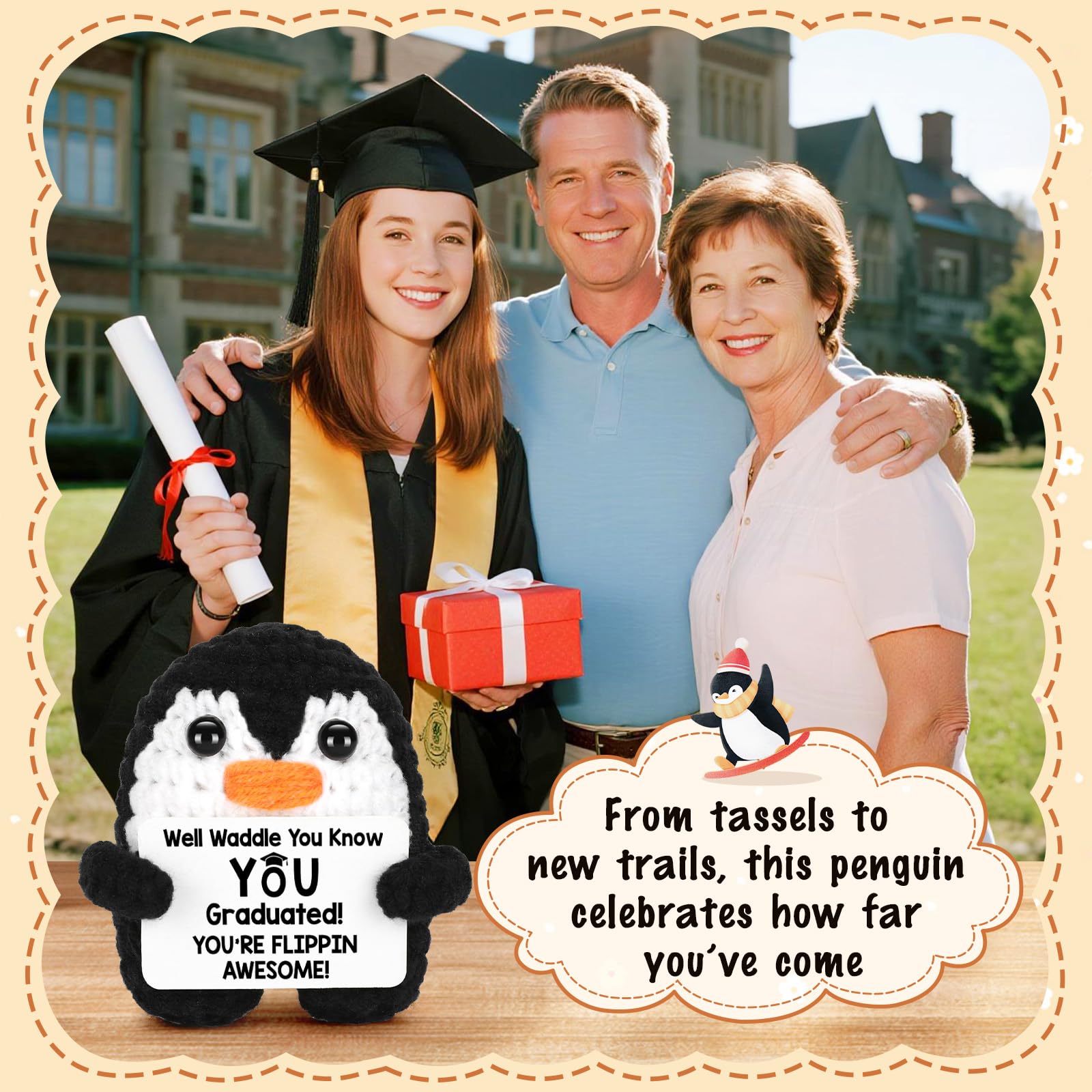 Handmade Graduation Awesome Penguin: Each mini collectible penguin is carefully crocheted by hand, offering a soft and comforting touch. Perfect as a graduation, promotion, or milestone gift, it offers daily encouragement and inspiration. A heartfelt keepsake they’ll proudly display and treasure in every new chapter of life