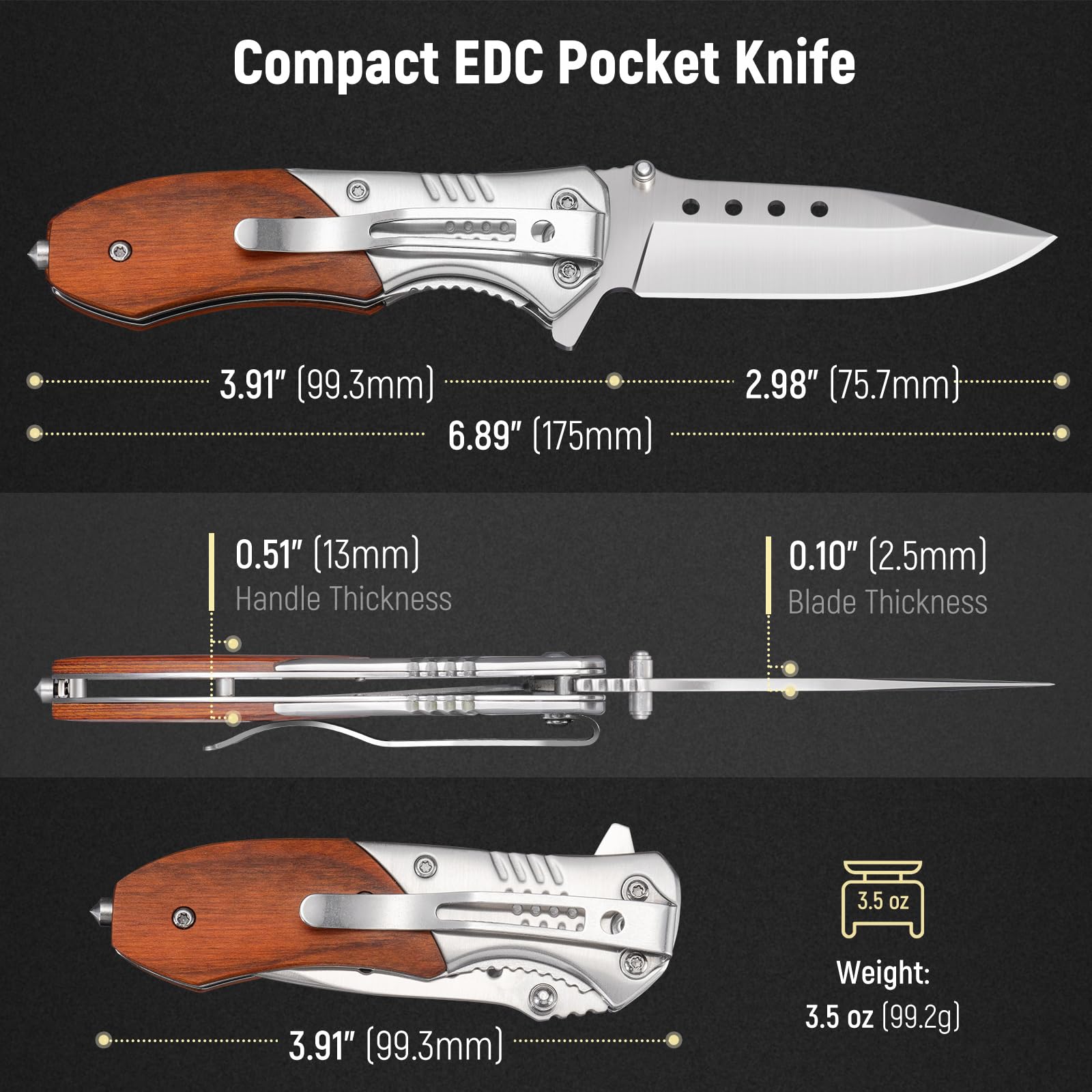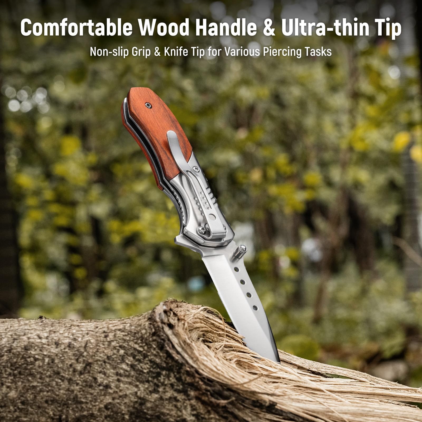 Ultra Sharp and Sturdy: Made with razor sharp silver 3Cr13 stainless steel blade, this wood handle pocket knife for men keeps the ideal balance of hardness, durability, ensuring effective operation without sharpening