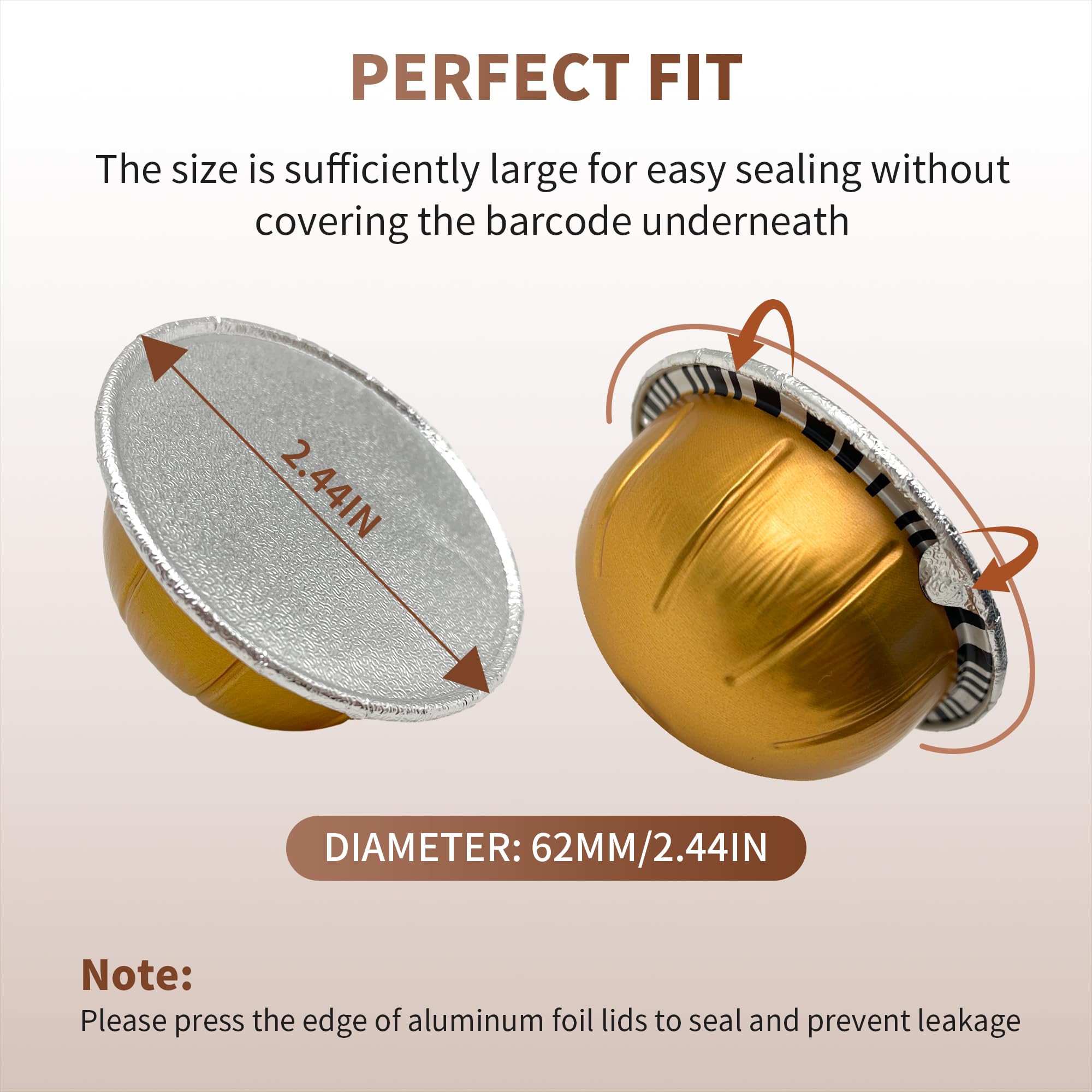 Reusable Pods for Nespresso Capsules VertuoLine, 100pcs Refillable Aluminum Covers Foil Seals Lids (Pods Not Included), Compatible for Nespresso VertuoPlus Espresso Machine