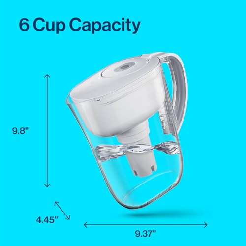 Drink healthier, great-tasting tap water with the BPA-free, small 6-cup Brita Metro Water Filter Pitcher. This filter water pitcher cuts the taste and odor of chlorine, plus it reduces copper, cadmium and mercury impurities, to deliver great-tasting drinking water. By switching to this Brita filter, you can replace 1,800 single-use plastic water bottles a year to stay hydrated, save money and reduce plastic waste. This filtered water pitcher features an easy-fill locking lid that helps prevent unwanted spills and allows for effortless pouring and refilling. An electronic SmartLight filter indicator on this water purifier pitcher lets you know when it is time to change the Brita filter. This water purifier pitcher comes with one Standard water filter, but it's compatible with both Elite and Standard water filters. Replace your Elite filter after 120 gallons or about every six months, or replace your Standard filter after 40 gallons or about every two months. Get great taste, less waste and more savings from Brita.