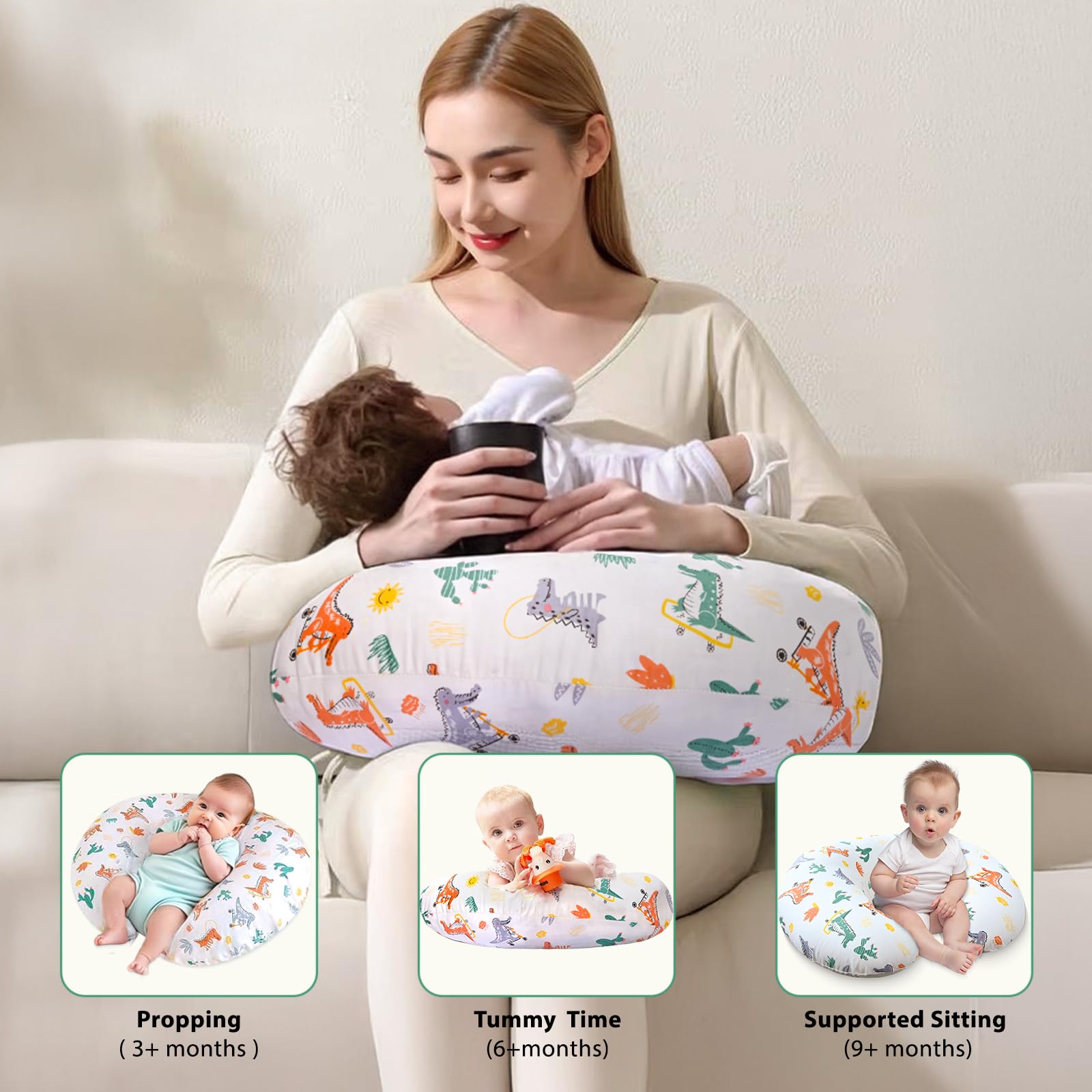 Multifunctional Feeding Pillow- Nursing pillow provides support for baby at feeding (0+ months), propping (3+ months), tummy time (6+ months) and sitting (9+ months)