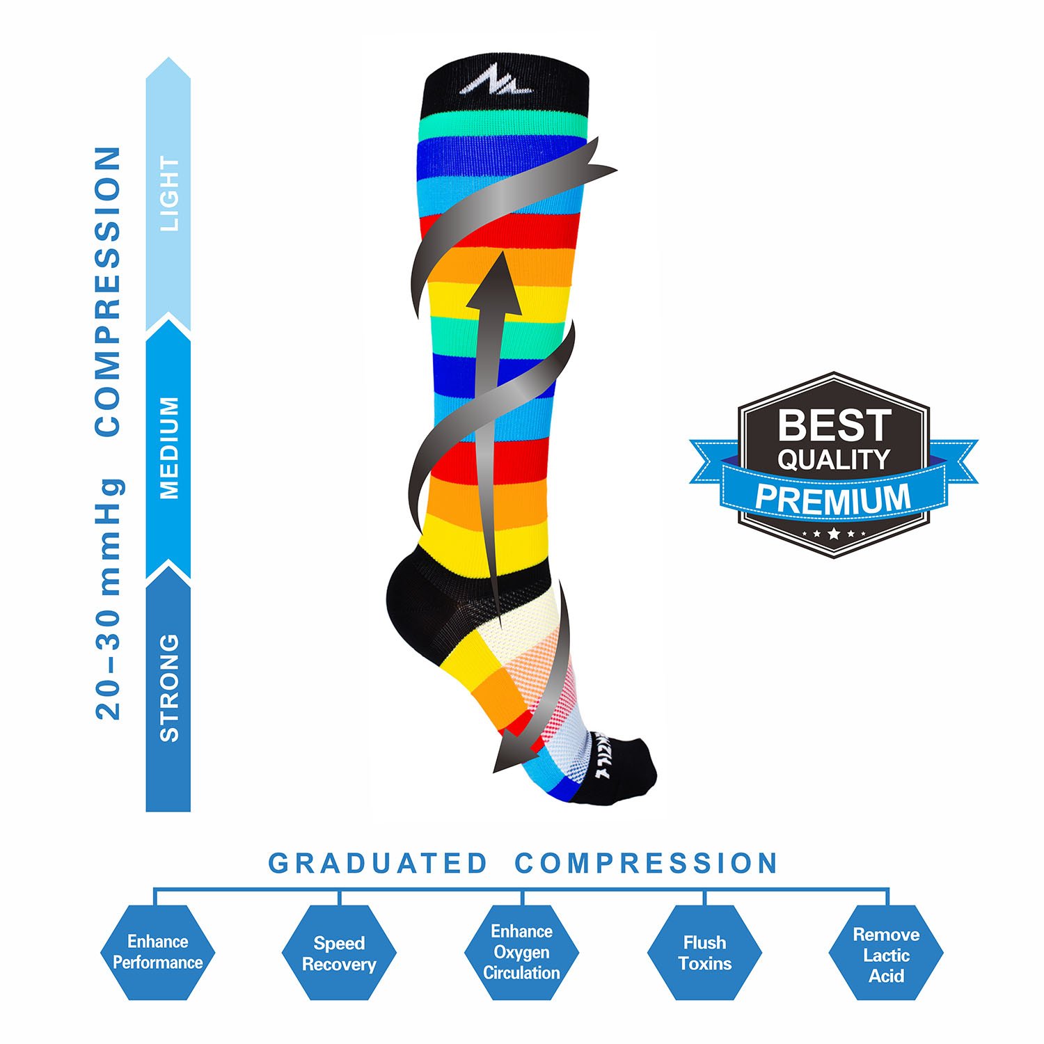 【IDEAL COMPRESSION SOCKS FOR ALL OCCASIONS】Our compression socks cater to a diverse range of needs from running nursing and traveling to sports like volleyball and basketball They also provide support for medical professionals pregnant women and individuals seeking comfort during travel or maternity With high-performance features our socks offer support and relief for both men and women across various occasions