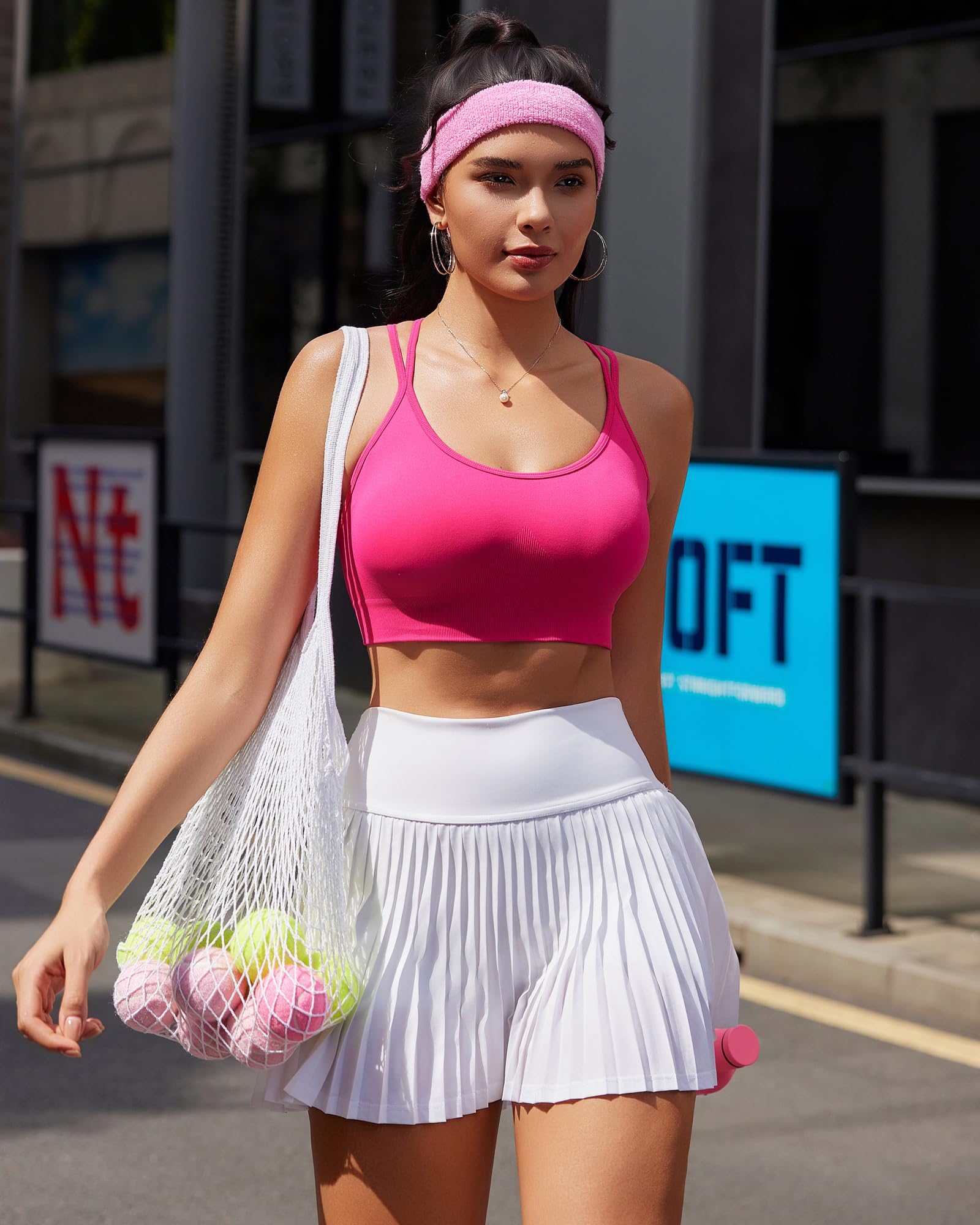 【YOUR EVERYDAY BRA】Unleash your inner goddess in the Crisscross Back Sports Bra! Whether it's for yoga, hiking, or a quick stretch, the scoop neckline and spaghetti straps ensure you stay supported all day long. This strappy sports bra, originally designed for yoga, doubles as a stylish bralette that you can wear under any outfit. Pair it with biker shorts or yoga leggings for a breathable fitness look that will elevate your workout routine.