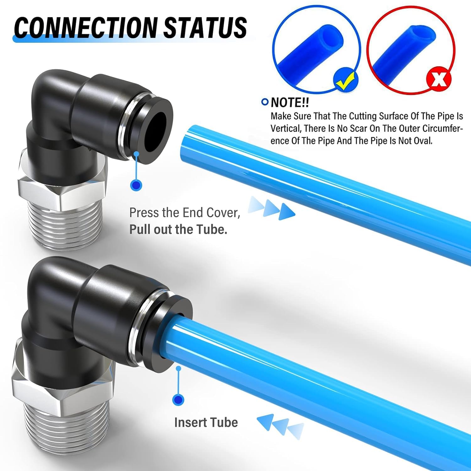 ★Product Specification: Size: 1/4" Tube OD x 1/16" NPT Thread Material:Copper and Plastic Shape: Elbow Shape Pressure Range: 0 ~ 145Psi Operating Temperature Range: 32~140°F Medium: Water, Air,Oil Etc. ★Package Included: 2×Elbow Shape Tube Fittings Push Lock ★Product Feature: 1. Corrosion Resistance, High Density, Not Easy to Burst. 2. The product is Sturdy and Durable and Has a Long Service Life. 3. Easy Assembly, Easy and Simple. 4. It Can be Used for The Connection of pipes and The Use of Different Pneumatic Components, and Has a Wide Range of Uses. ★Attention! 1.Do Not Use for Fittings for Drinking Water Pipes. 2.Avoid Contact with Fire Sources. 3.Working Pressure Must Not Exceed 145psi. 4.Do Not Use Fittings under Extra External Load (Bend, Twist or Pull), Otherwise It will Cause Damage or Leakage. 5.Avoid Mixing with Incompatible Materials (Strong Oxidants, Acids, Bases, Etc.).