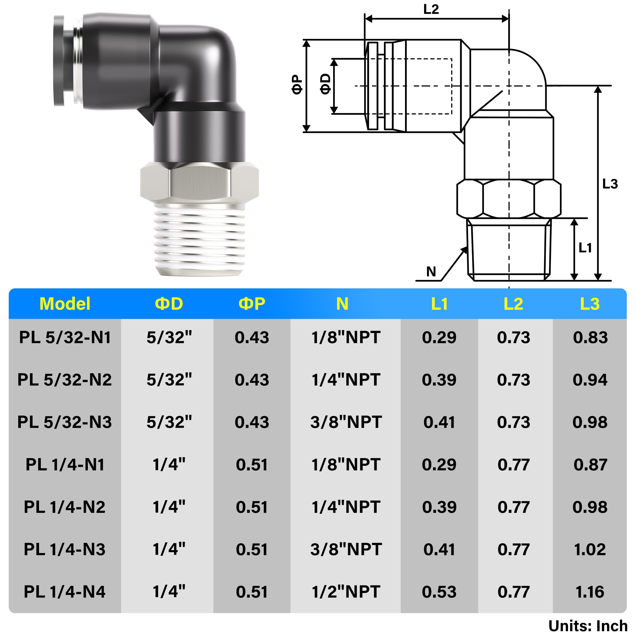 【Size】1/4" Tube OD x 1/16" NPT Thread,Notice - NPT Thread Size is a Nominal Pipe Size, and it Does Not represent the actual diameter