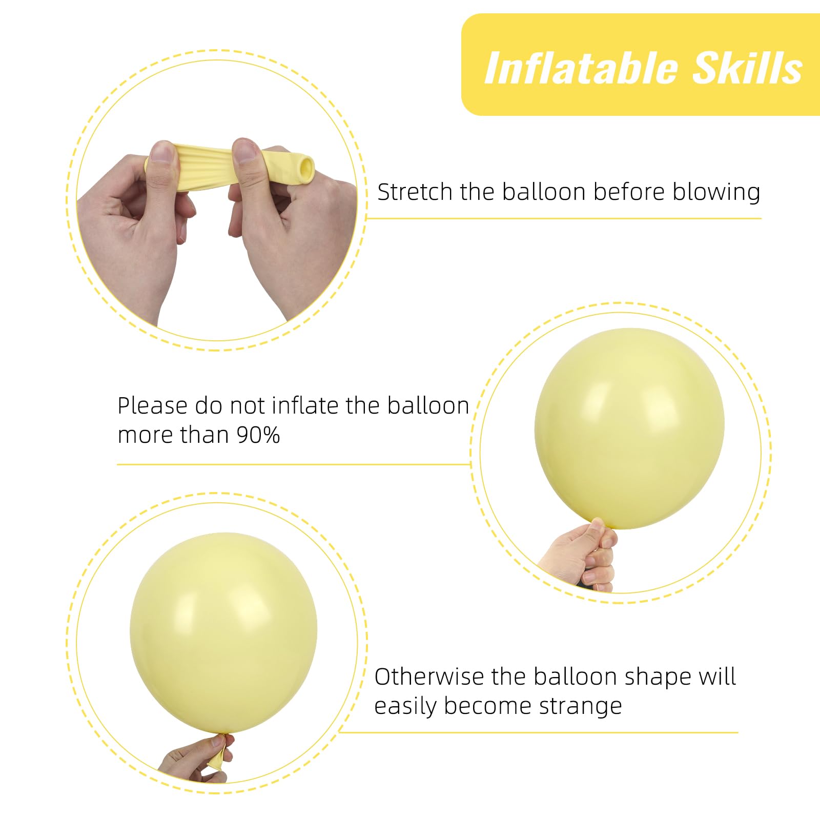 PREMIUM QUALITY: The pastel yellow balloons are made of premium natural latex, which are sustained. Please do not rub against overheated and sharp objects to avoid sudden popping.