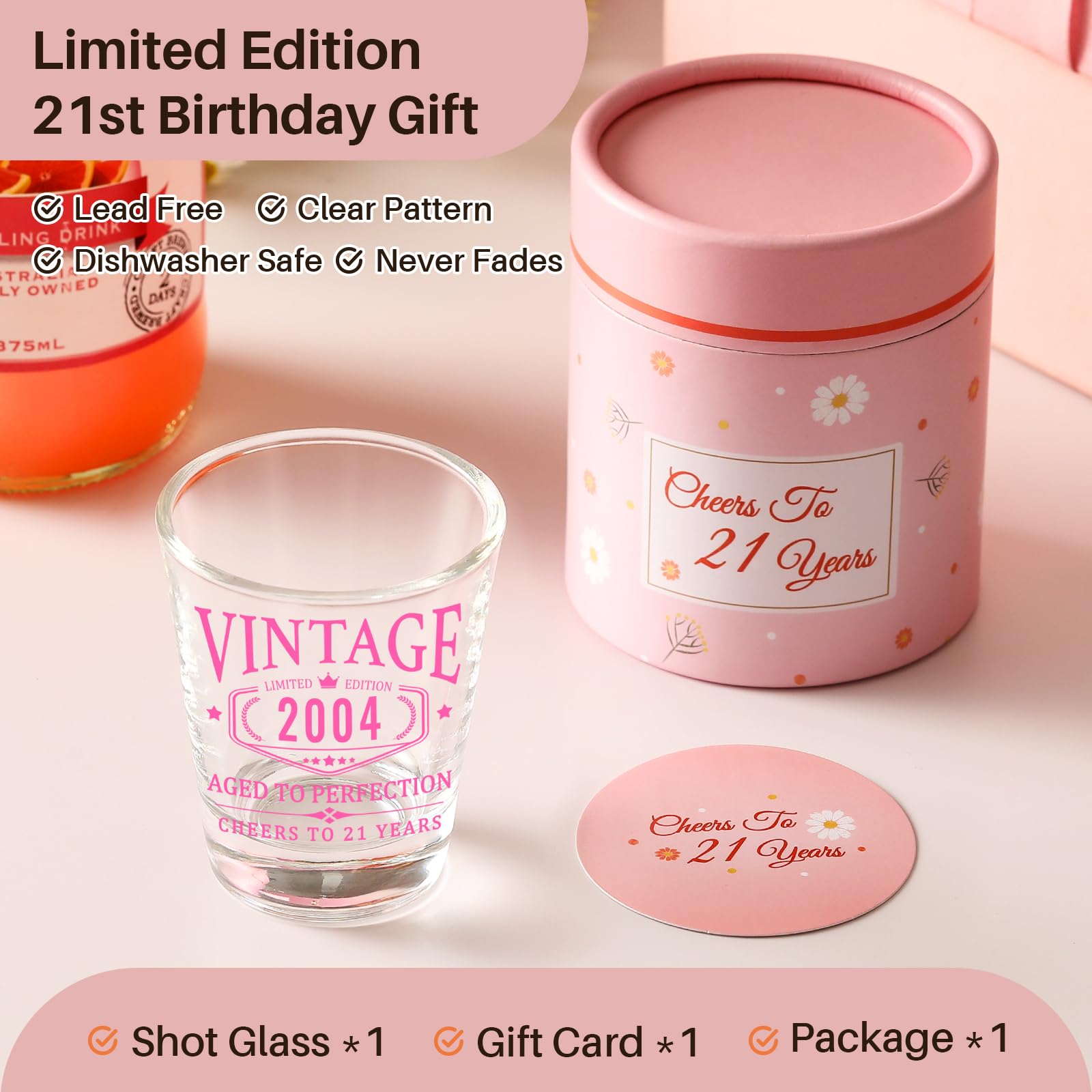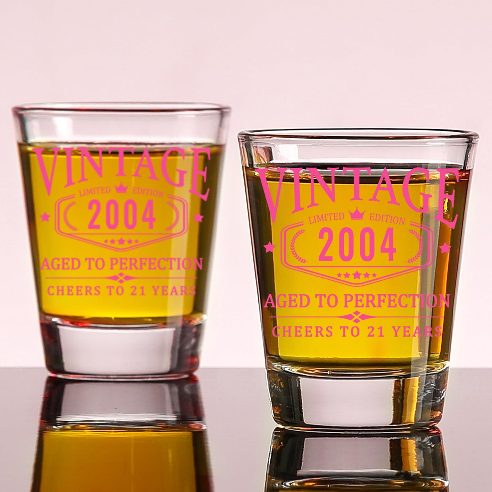 Unique Limited Edition Logo - The milestone shot glass cup, the unique '2004' sign represents the 21st birthday or 21st anniversary day. Great gift ideas for your friends, girfriend, classmate, sister, daughter or any other female who is 21 or turning 21 years old.