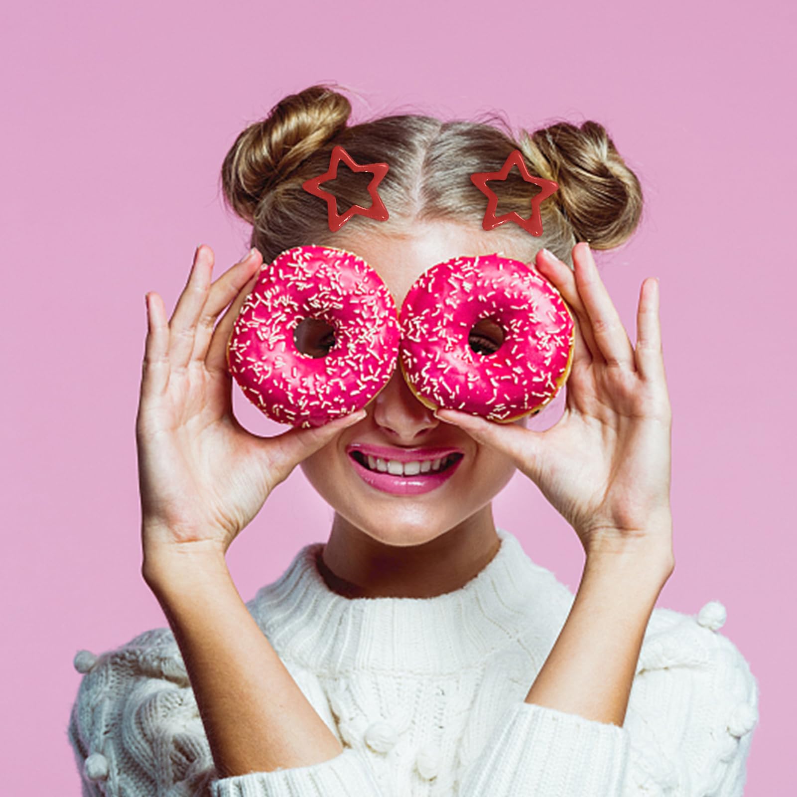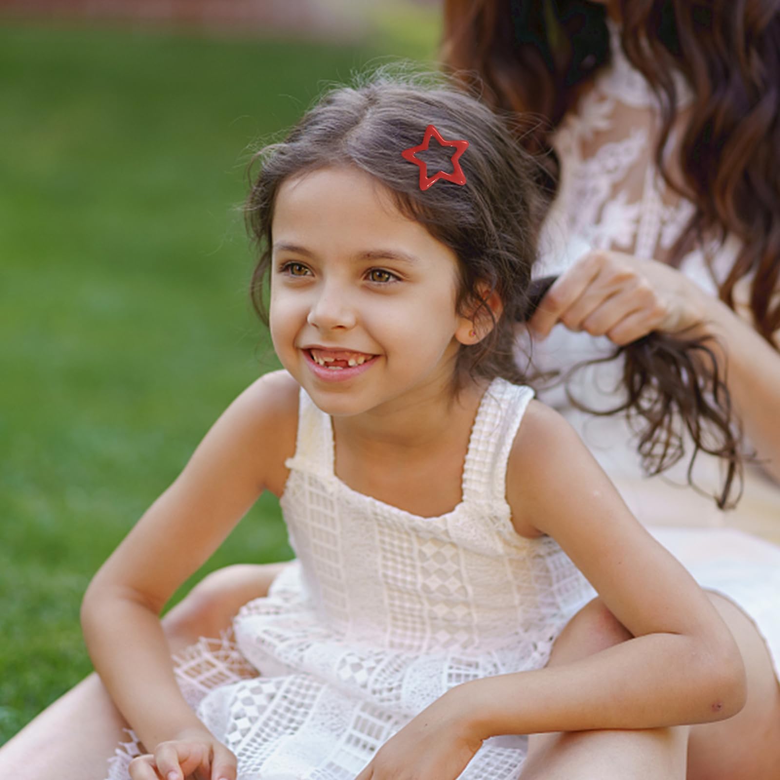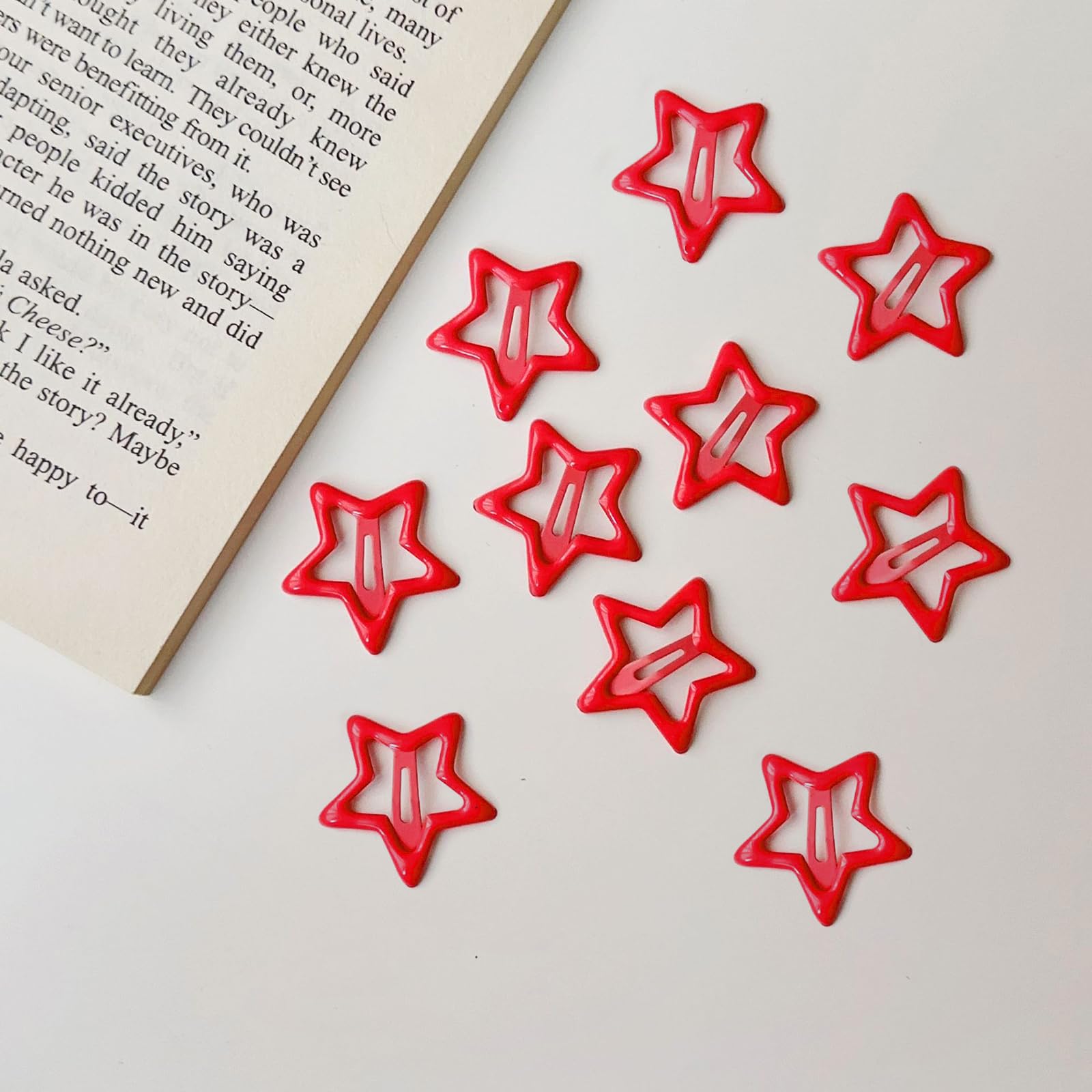 Star Hair ClipsοΌThese red star hair clips are the pentagram Snap clips. The star small hair clips have a special coating on them to protect them from fading.The details are polished, so you don't have to worry about hurting your scalp and hair.Very great bangs hair clips, side hair clips, or for ponytails, braided hair, can be worn in a variety of ways.