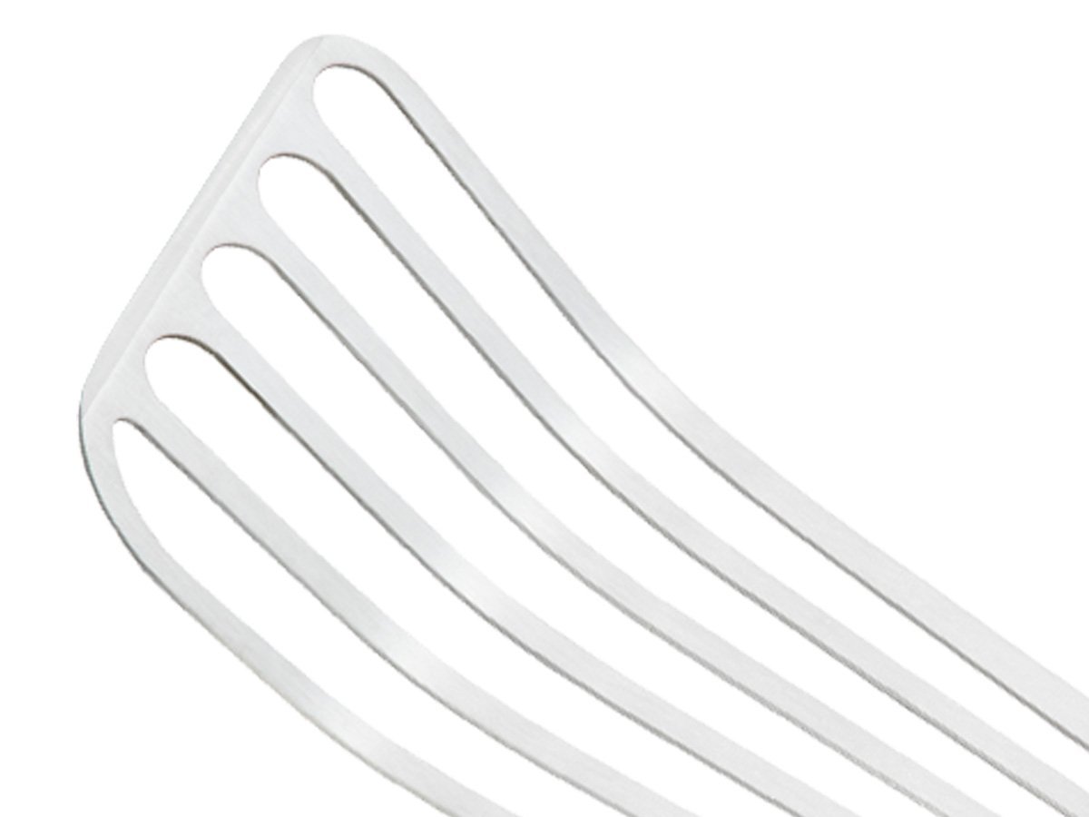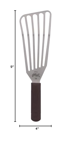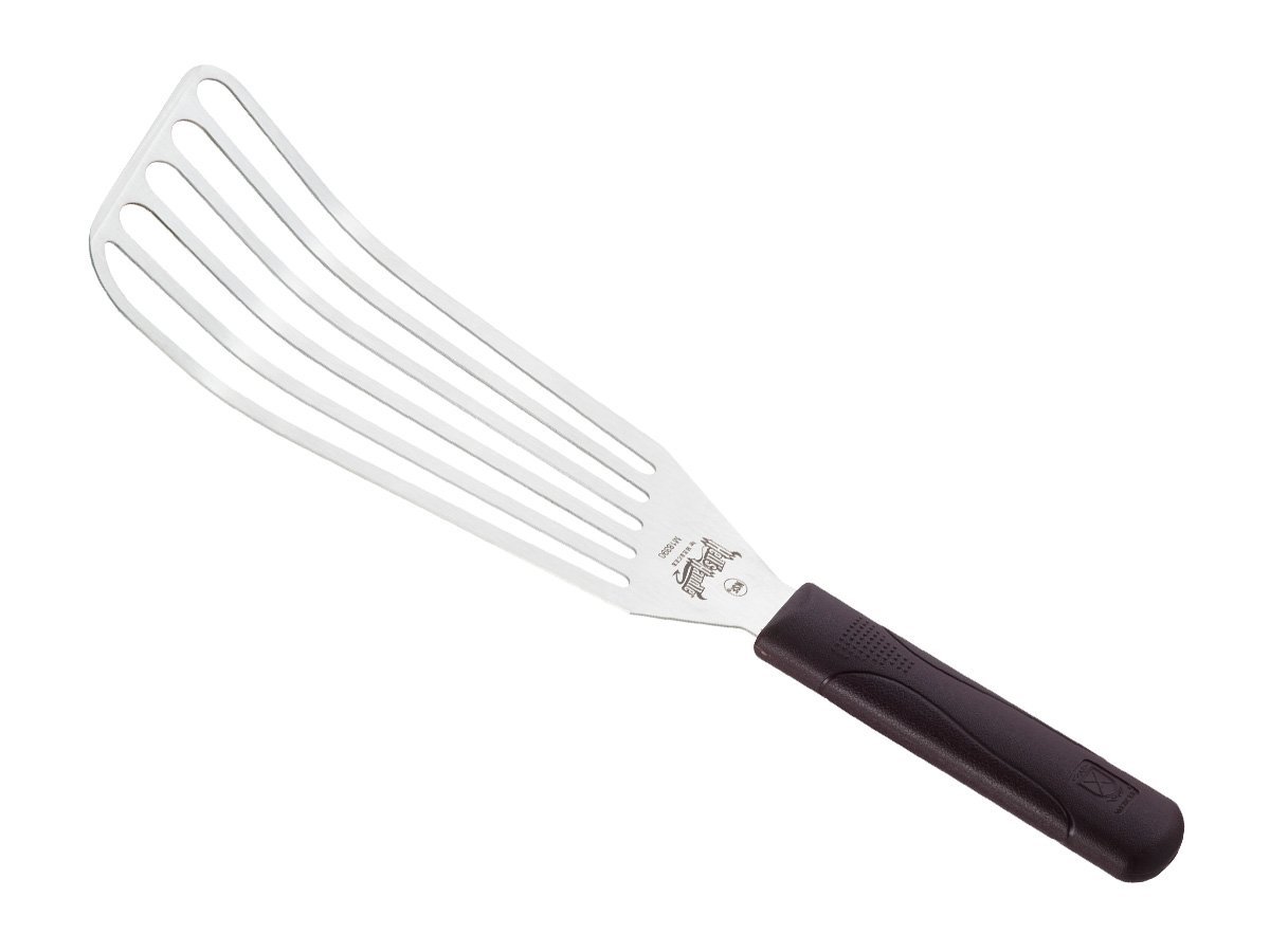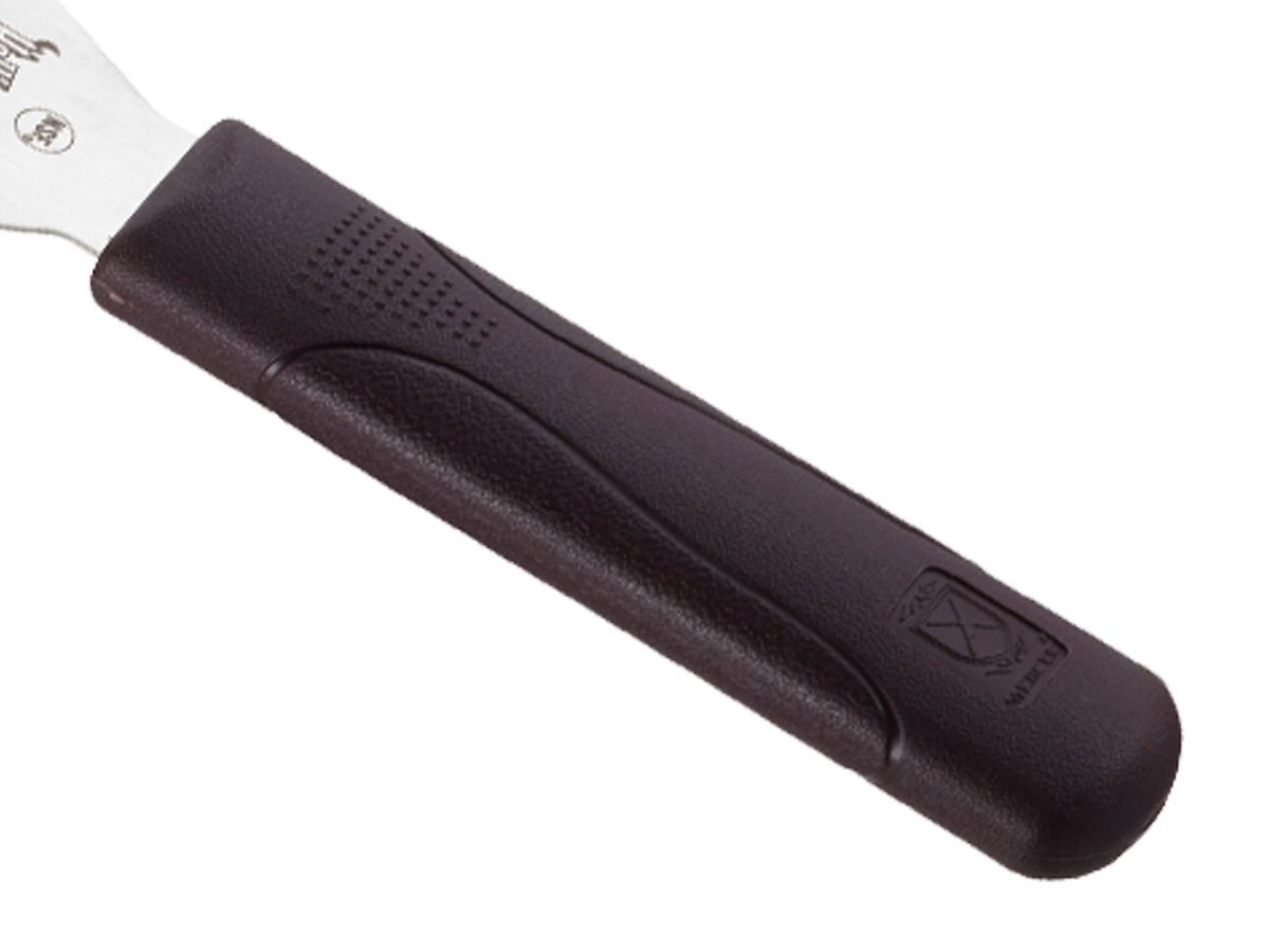 The unique formulation of these handles absorbs 50% less heat than standard polypropylene handles, remaining cooler to the touch longer. The handles also safely withstand temperatures up to 450°F (232°C). Precision ground stainless steel blades provide the perfect combination of flexibility and stiffness.