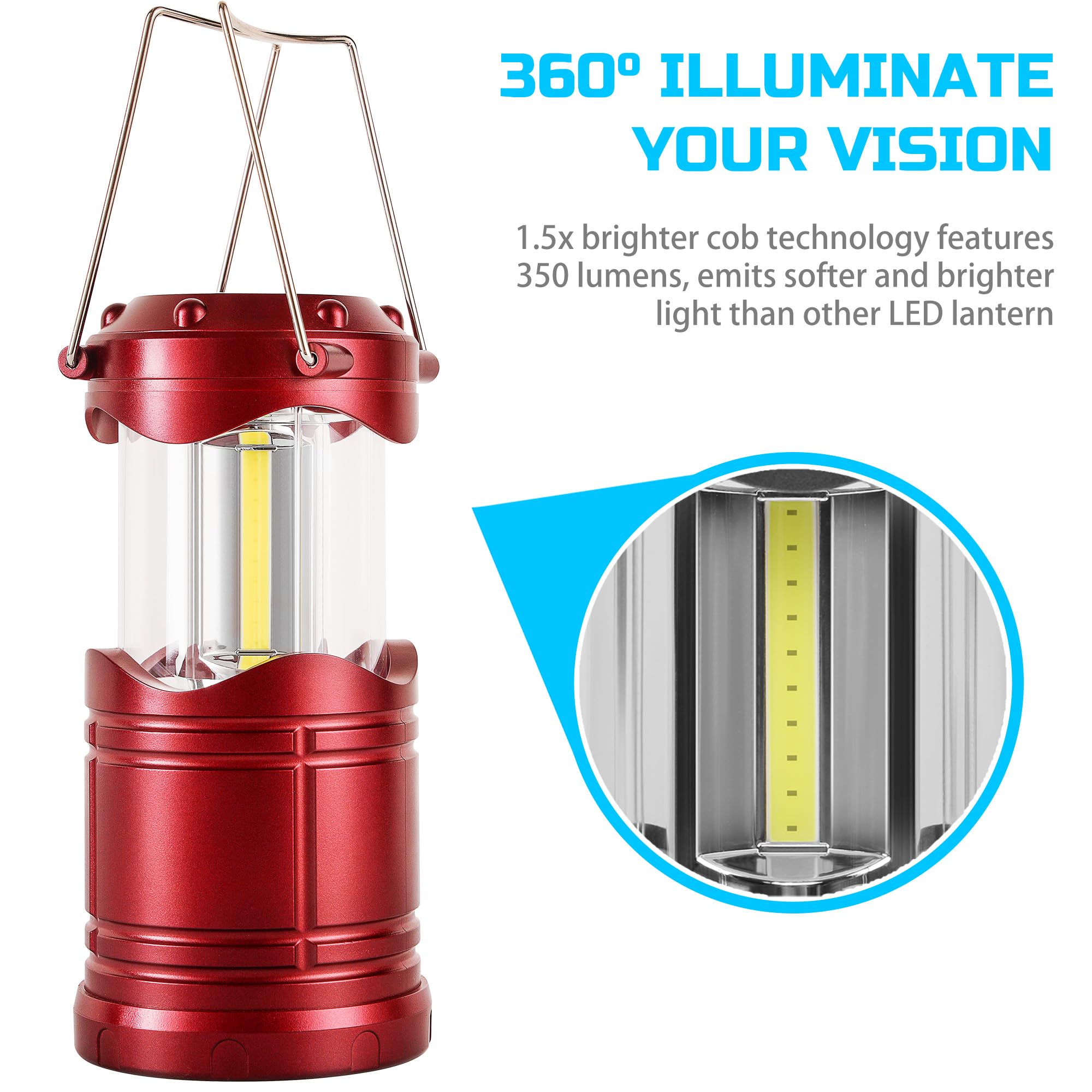 ULTRA BRIGHT & SAFE: Designed with 30 energy-efficient LED for 360 degree lighting (97 sq.ft coverage), the latest COB technology features 350 lumens, emits softer and brighter light than other LED lantern; Use 3 AA batteries (not included)