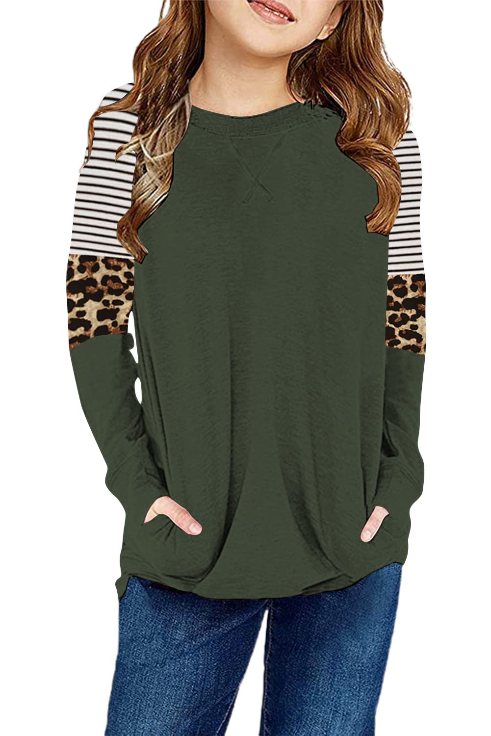 ♥[Features]:The contrast design on the sleeves of girls casual tee is very unique and fashionable.The girl's blouses with different sizes are suitable for girl of age 4 to 13.