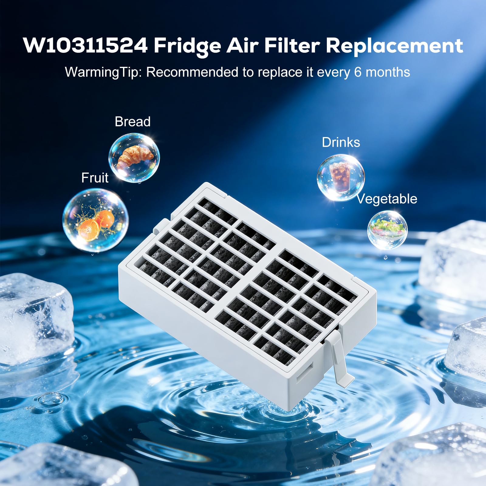 EXCELLENT PERFORMANCE - W10311524 freshflow refrigerator air filter replacement helps absorb odor, smoke, volatile organic compounds and remove impurity, 15 times more effective than baking soda to keep your refrigerator air fresh and odor-free. The right choice for you