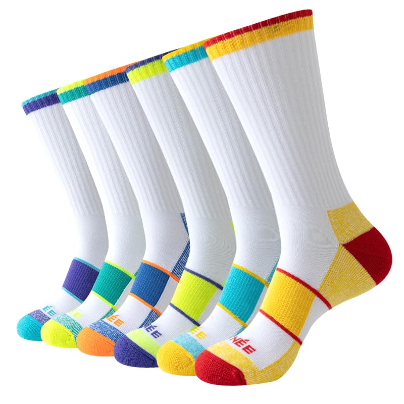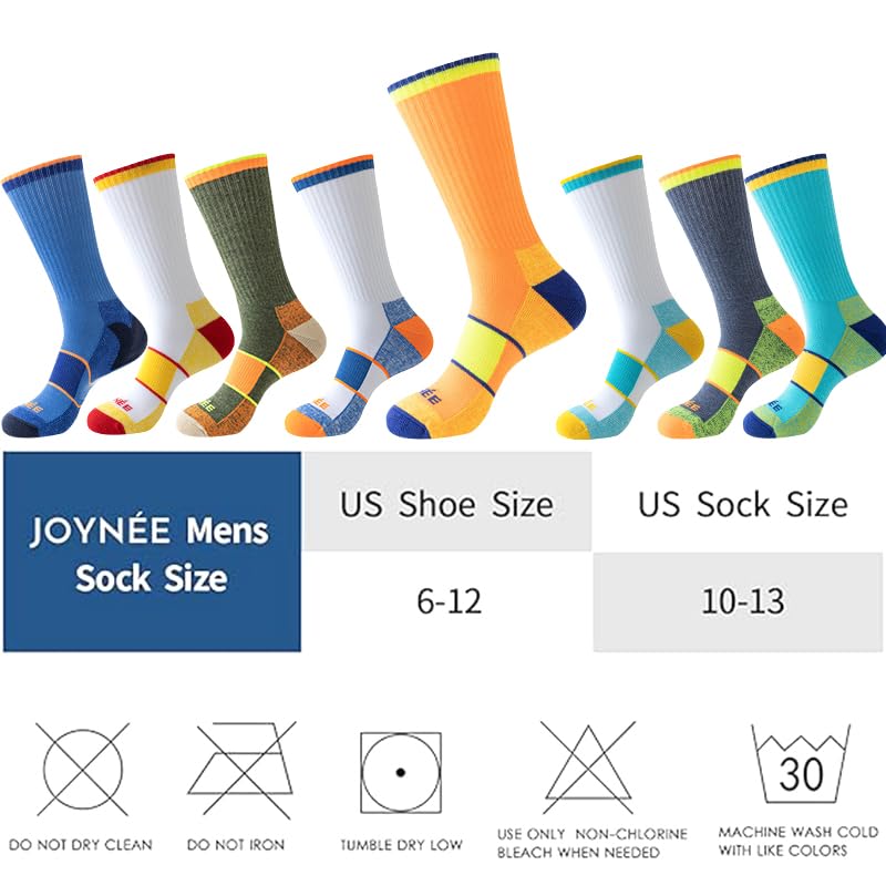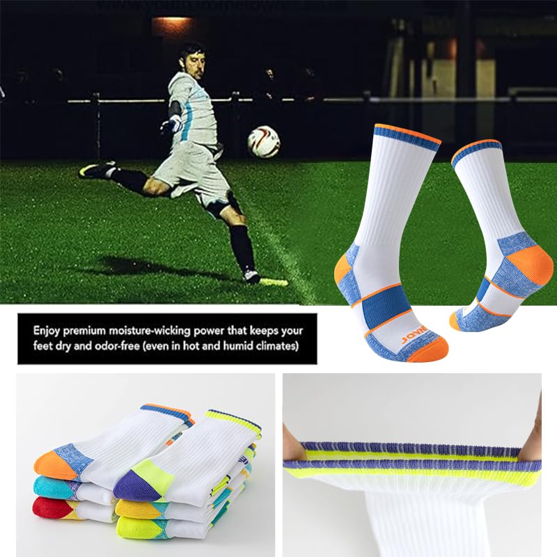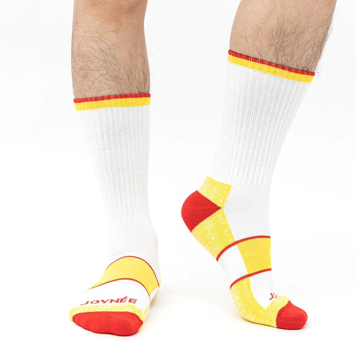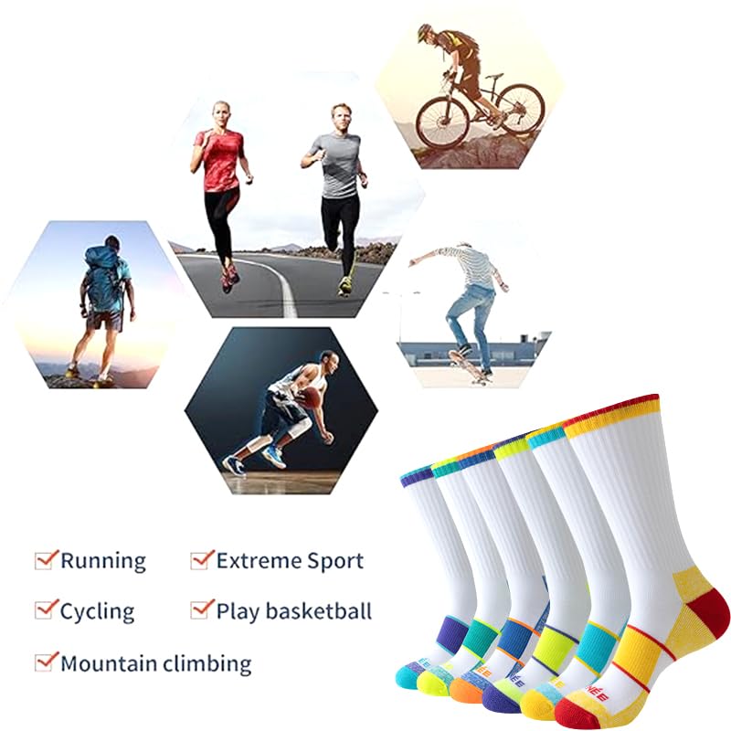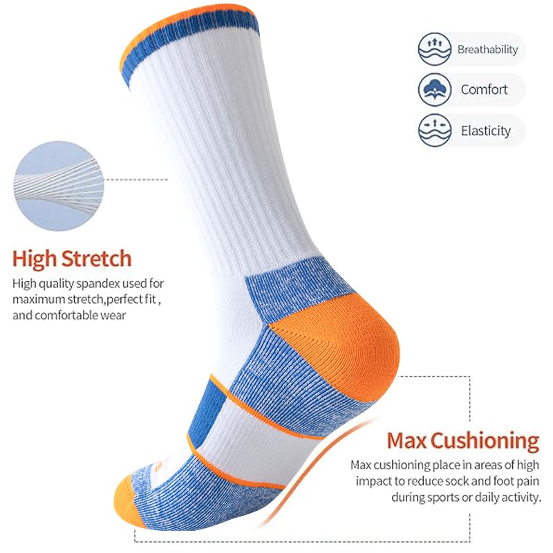 QUALITY MEN'S SOCKS: Made of 95% polyester,5% spandex. Our men's crew socks are strong, durable and breathable enough to keep your skin dry and comfort. We guarantee you will love our mens full cushioned sport socks, well for used as walking, cycling, jogging, running, work out, gym, training, home, casual, tennis, golf, daily wear etc.