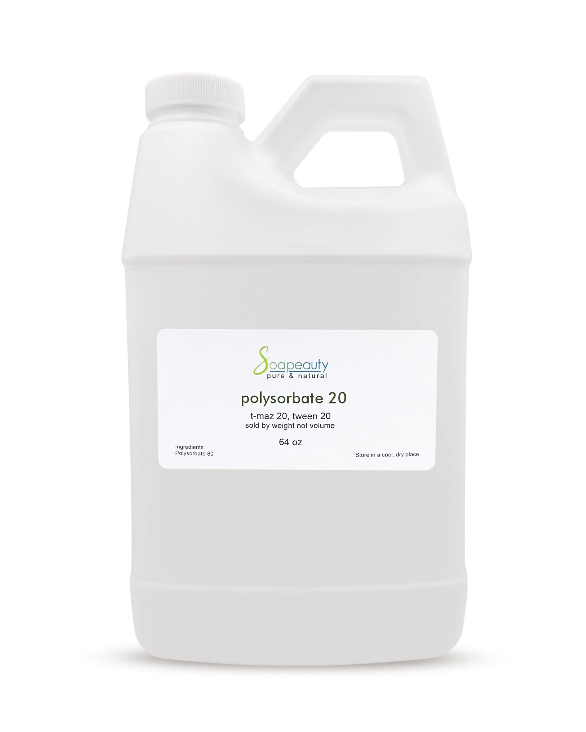 SOAPEAUTY PREMIUM POLYSORBATE 20, T-MAZ 20, TWEEN 20: Polysorbate 20 is a common fragrance and essential oil solubilizer as well as an emulsifying agent. It is soluble in water and alcohol and insoluble in oils. It is typically a co-emulsifier that is used both as a viscosity modifier and a dispersing agent.