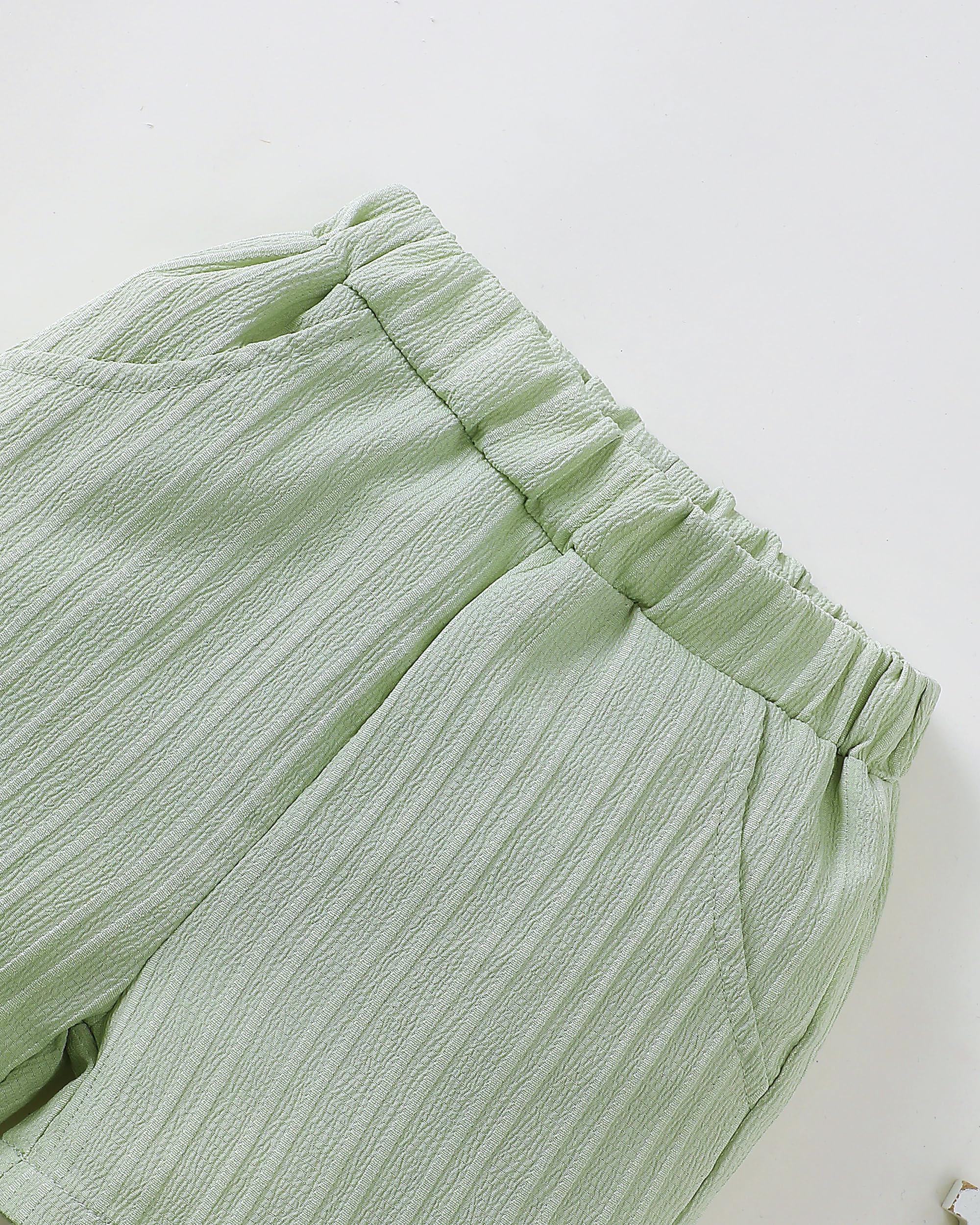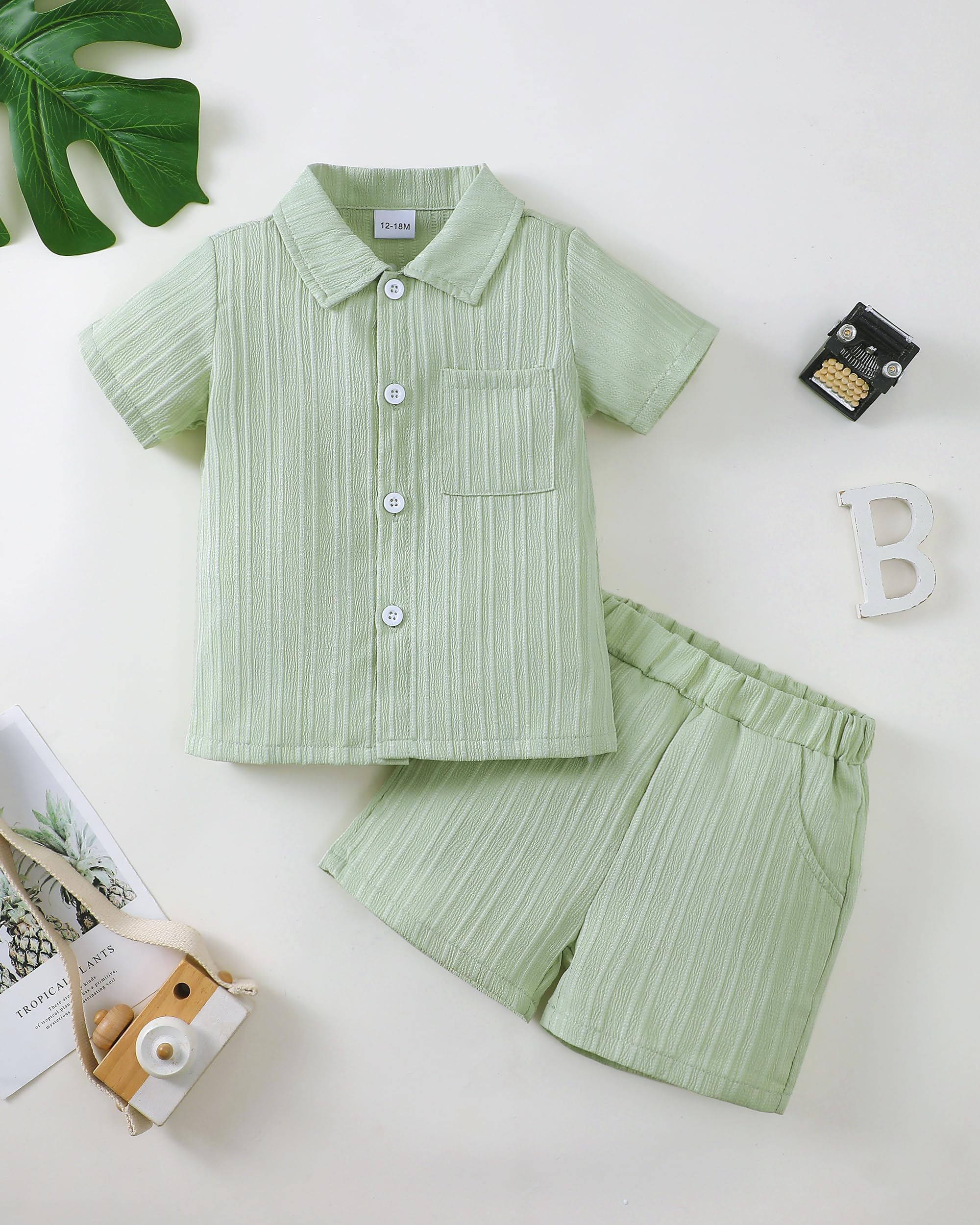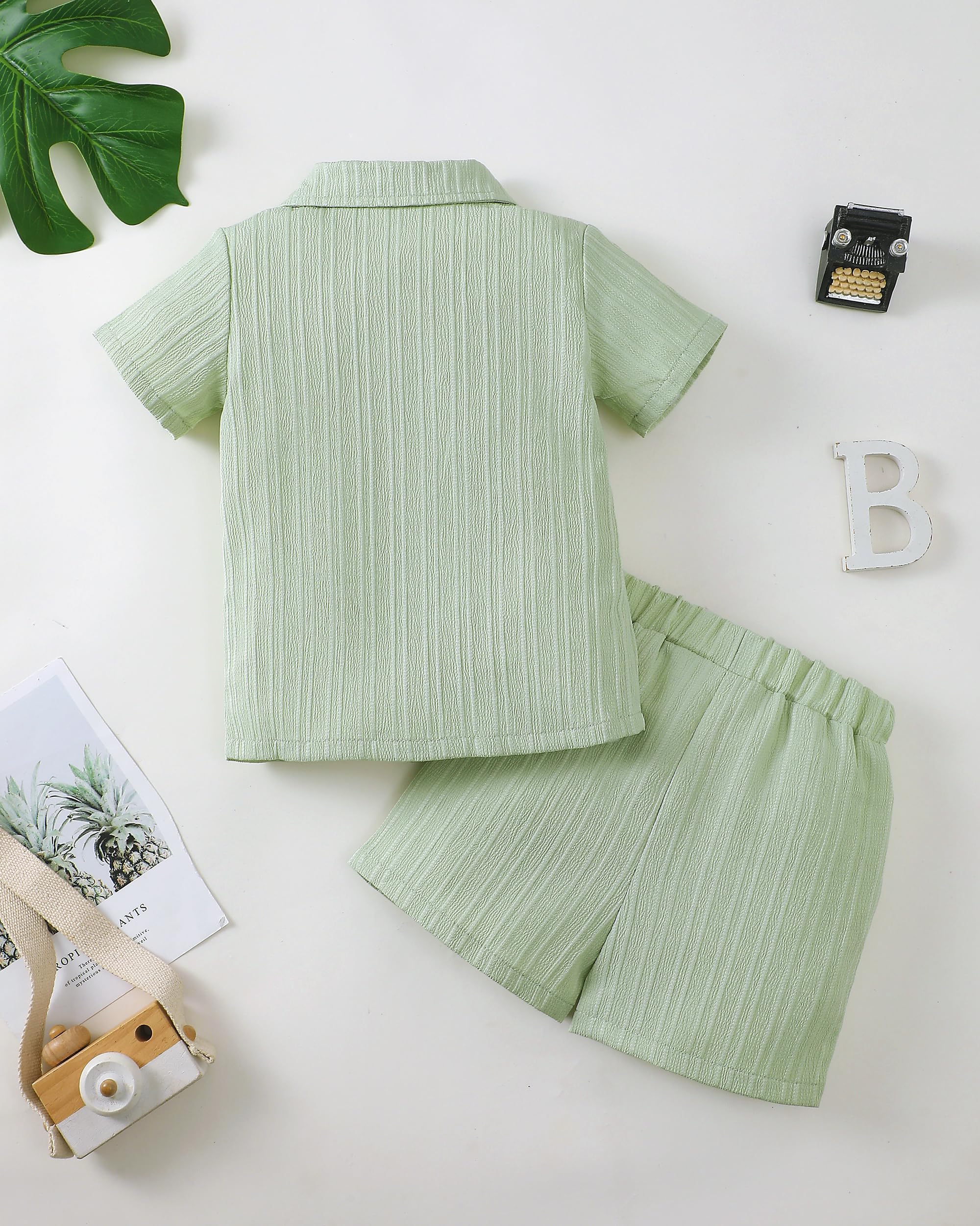 Classic 2-Piece Design: Includes a button-down short sleeve shirt with chest pocket and matching shorts, featuring a calm sage green tone that feels natural and stylish.
