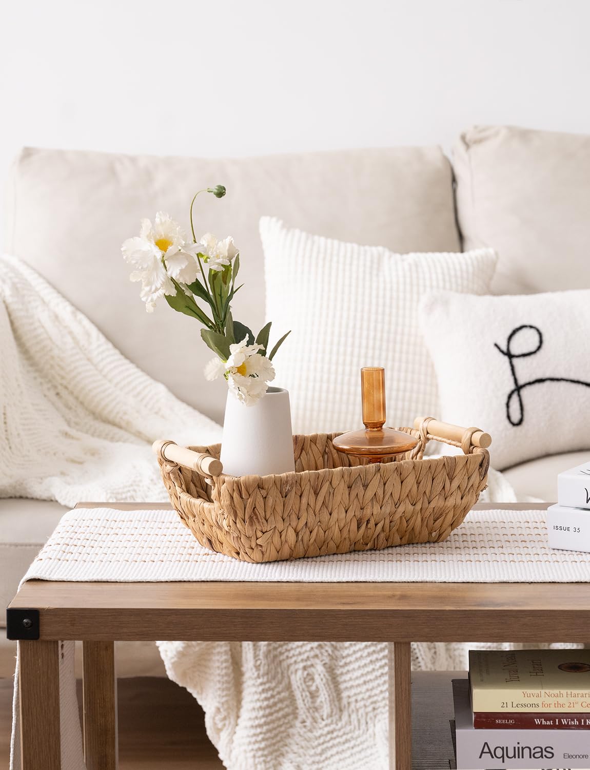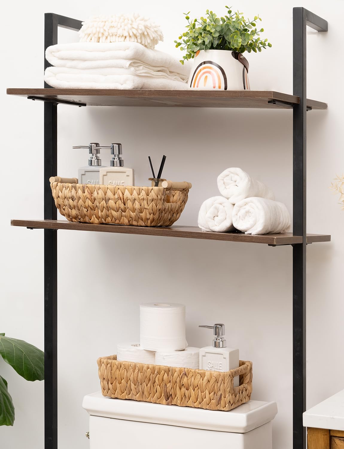 Versatile woven baskets for toilet paper, hand towels, toiletries in bath, or spices, canned foods in kitchen.