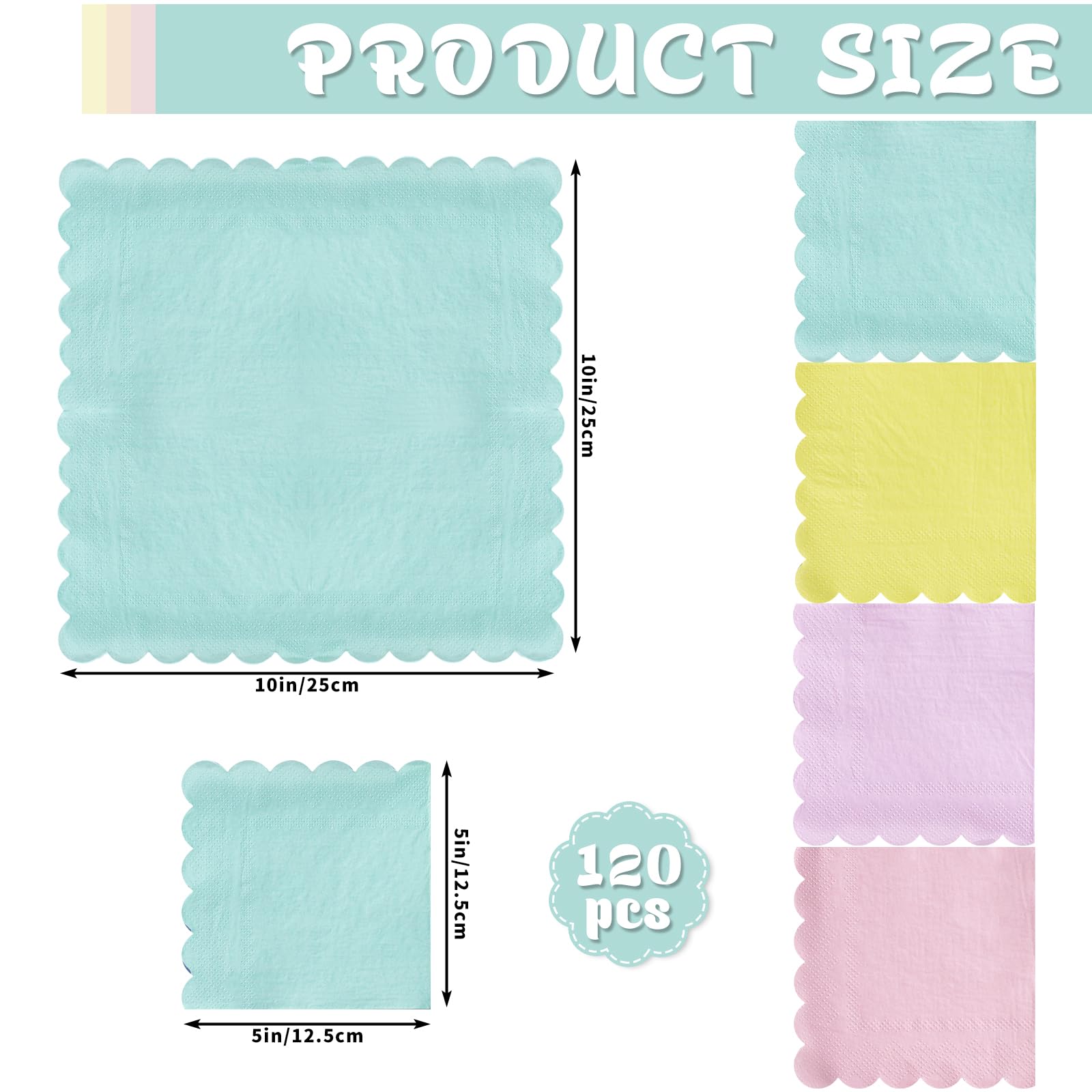 Scalloped Napkins Size:Pastel paper napkins measure approximately 12.5 x 12.5 cm/ 5 x 5 inches folded and approximately 25 x 25 cm/10 x 10 inches unfolded. Pastel party napkins are great for table decoration and daily cleaning
