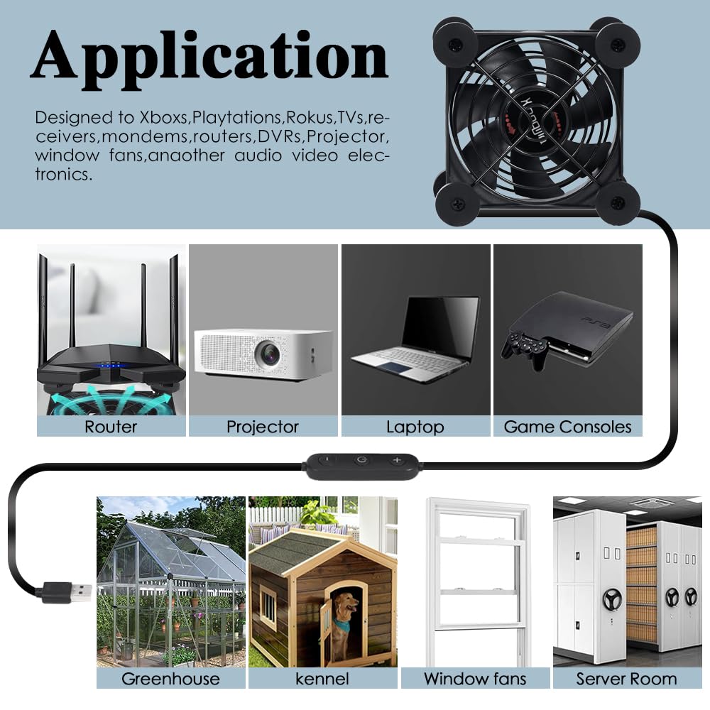 【Quiet 80mm Fan】: Enjoy a peaceful and noise-free cooling experience with our USB cooling fan. Designed to cool various electronics and components, this fan operates at an impressively low noise level of only 15dB (minimum speed), ensuring a tranquil environment while it keeps your devices cool.