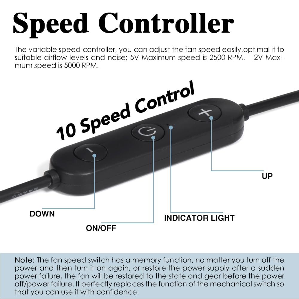 【10 Speed】: Take control of the airflow level with our specially designed speed controller. With 10 adjustable speeds, you can easily customize the cooling intensity to meet your specific needs. Whether you require a gentle breeze for a subtle cooling effect or a stronger airflow for more demanding applications, this fan has you covered.