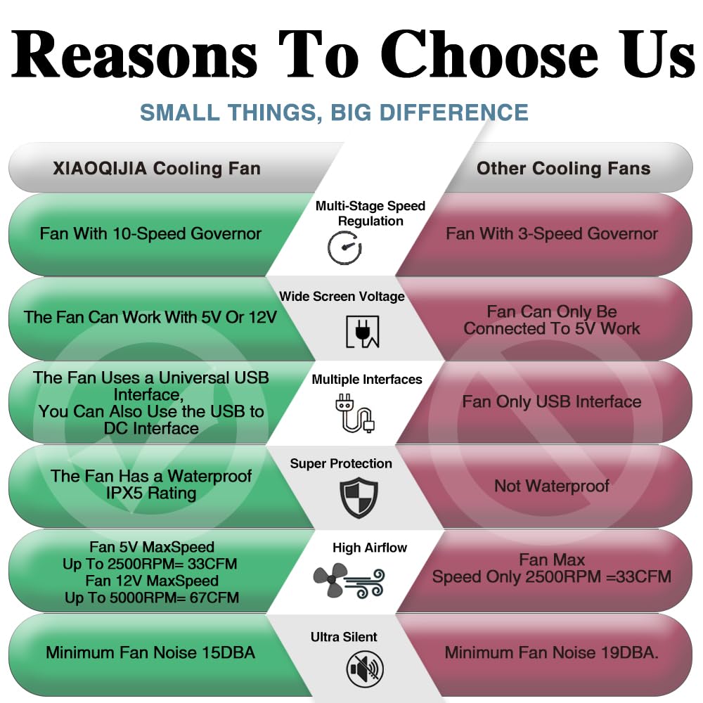 【Wide Voltage Compatibility】: Our fan offers exceptional versatility. It can operate directly with a USB connector at 5V or be connected to a 12V power source using the included USB connector to DC connector. By utilizing the speed switch under different voltages, you can effortlessly match different speeds to adapt to a variety of speed requirements. At 5V, the fan speed ranges from 300 to 2500 RPM, while at 12V, it ranges from 1000 to 5000 RPM.